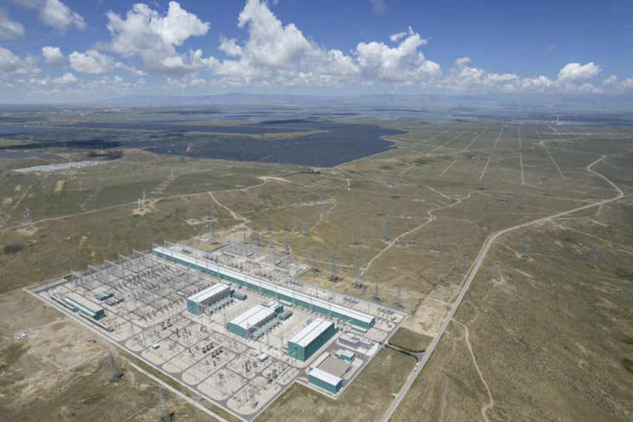 这是2025年7月25日在青海省海南藏族自治州共和县拍摄的±800千伏特高压青南换流站(无人机照片)。新华社记者 孙瑞博 摄