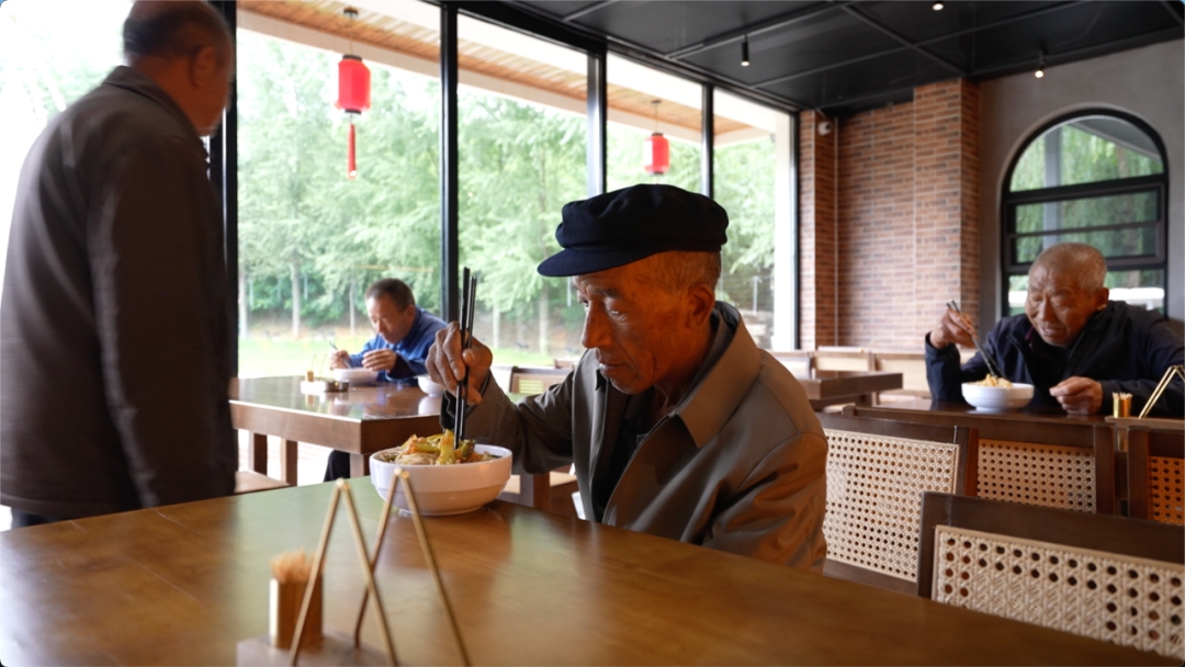 离别时分,夕阳为村子镀上一道金边,乡亲们正为周末的活动忙碌。“夜猫子”农家乐里灶火正红,郝改珍和姐妹们炖好了一锅牛肉,香气四溢。