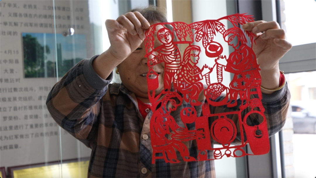 在这里,人人为村庄“添柴加火”。剪纸艺人李凤英,闲暇时就打开手机直播,向网友介绍国家级非遗“中阳剪纸”。“咱村常办文创活动,我也要出把力。”她说。