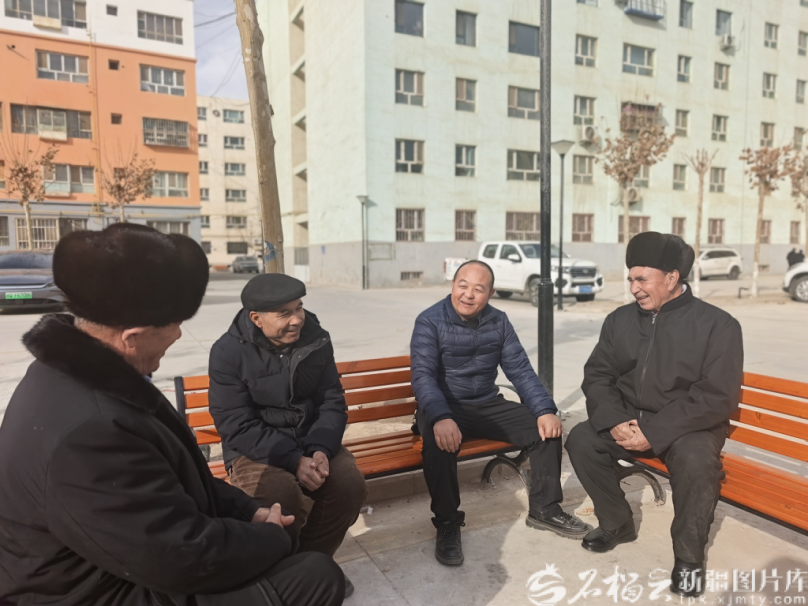 1月16日,阿克陶县阿克陶镇幸福路社区党委书记马福龙在凯城小区与群众唠家常、听民意。王潮 摄