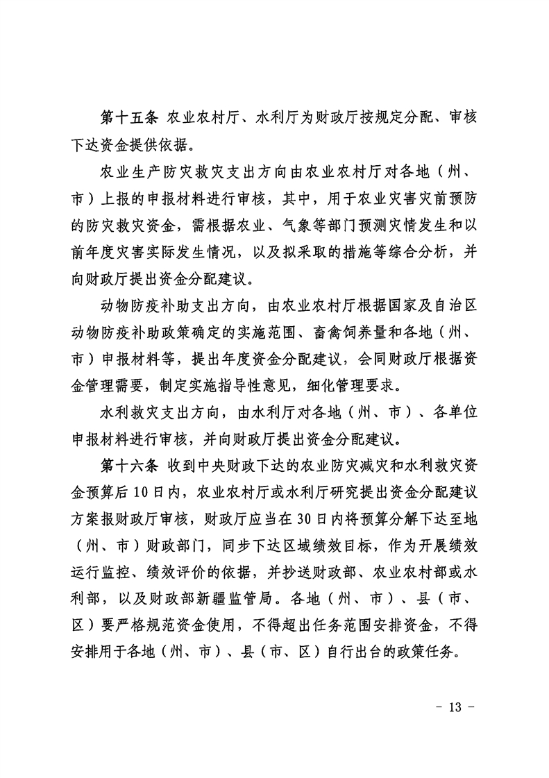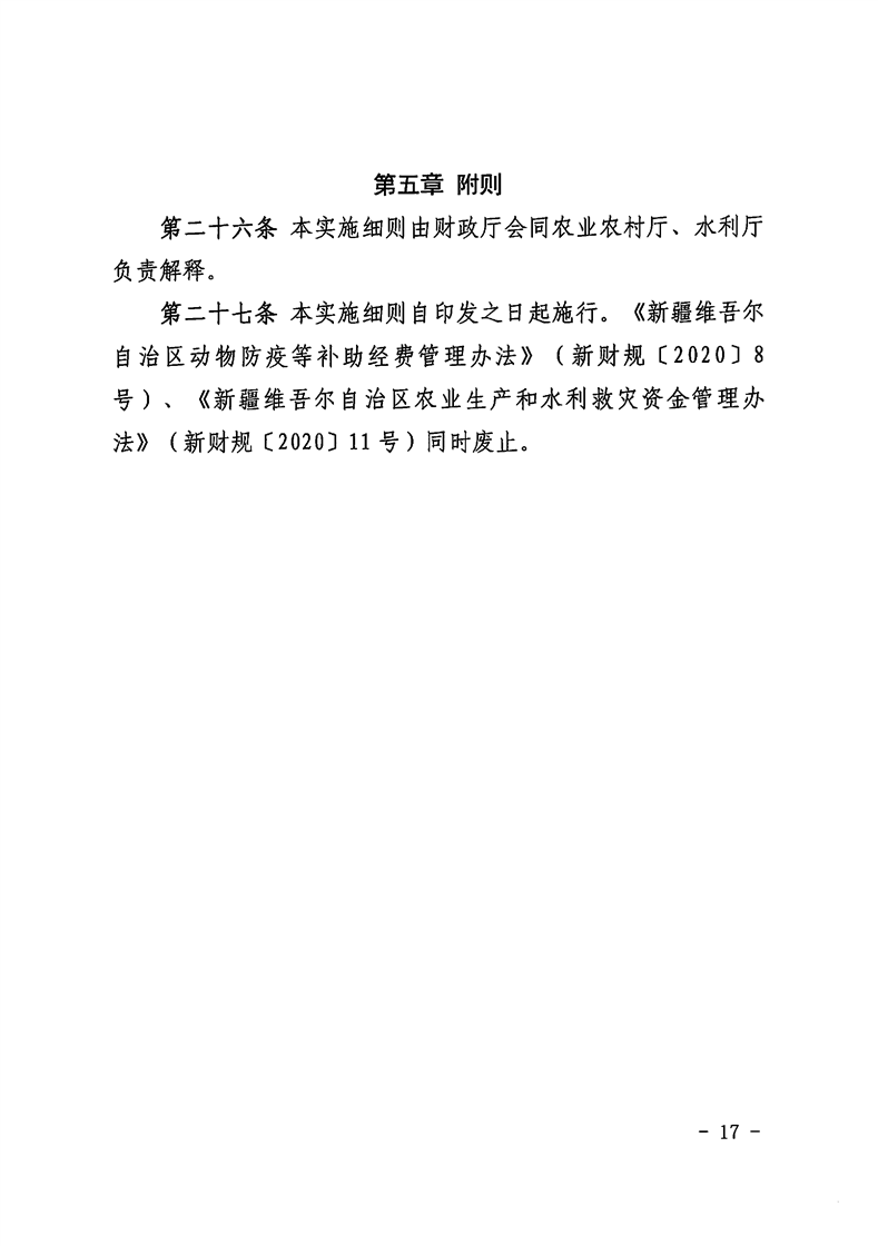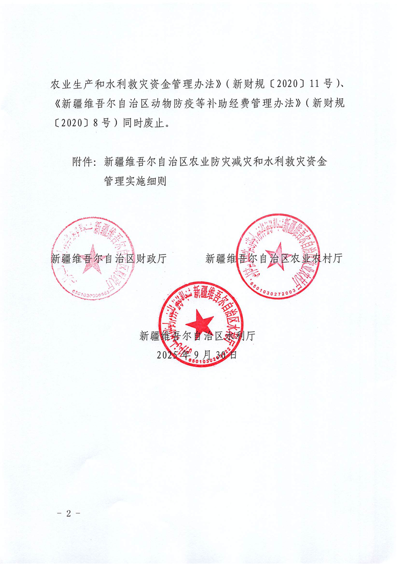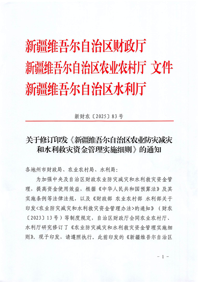 【本部门规范性文件】新财农[2025]83号-关于修订印发《新疆维吾尔自治区农业防灾减灾和水利救灾资金管理实施细则》的通知