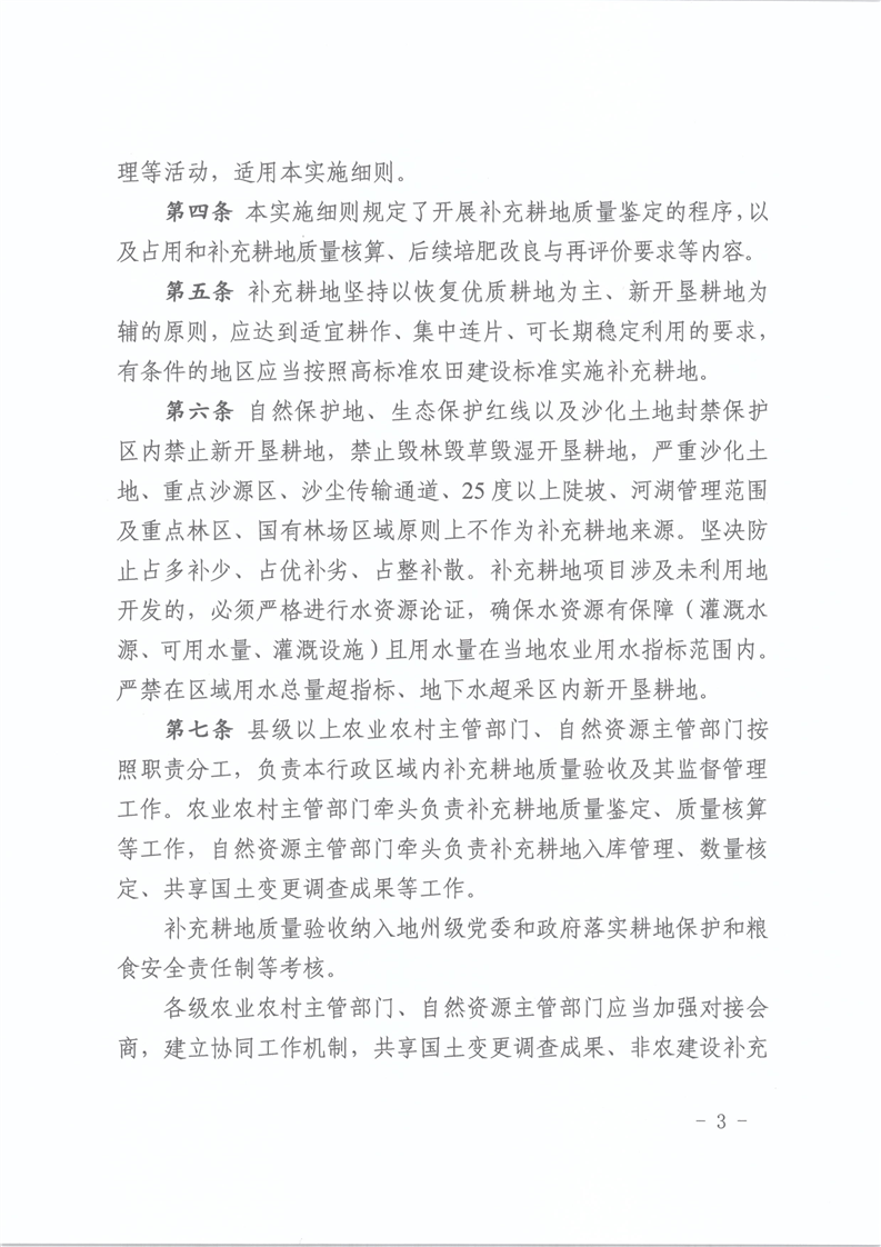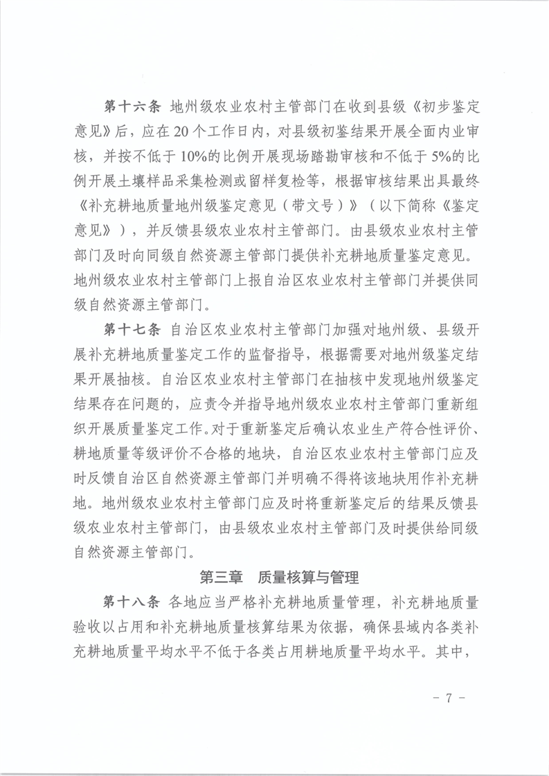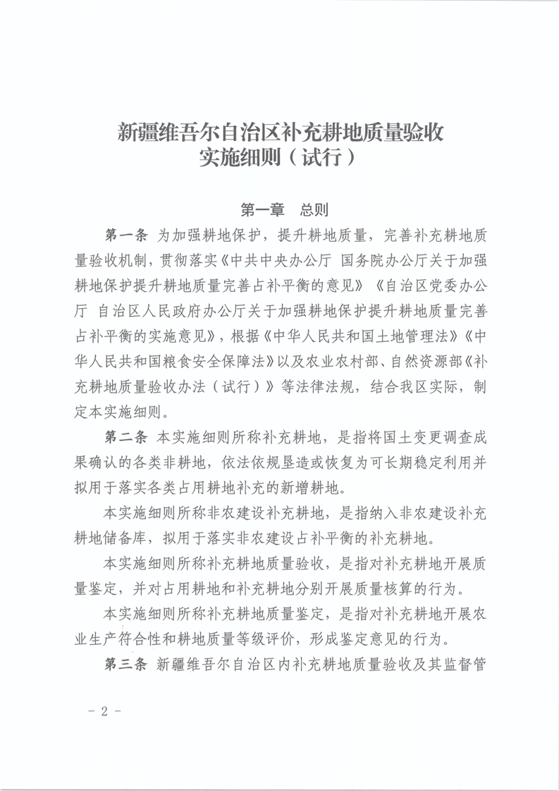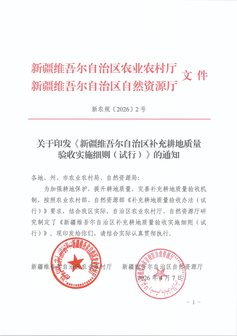 【本部门规范性文件】关于印发《新疆维吾尔自治区补充耕地质量验收实施细则(试行)》的通知