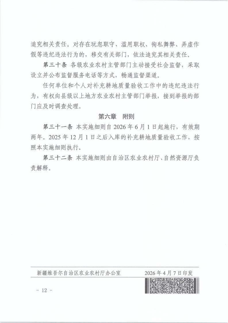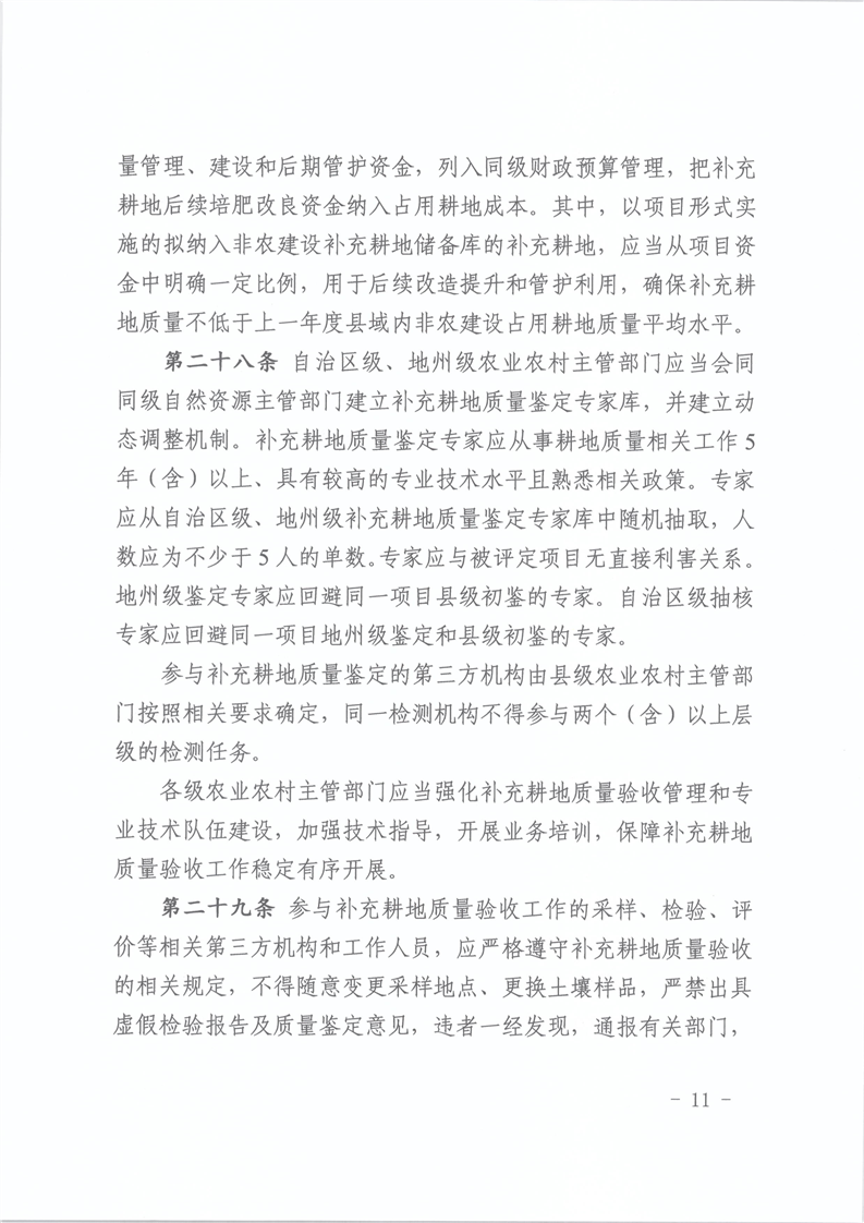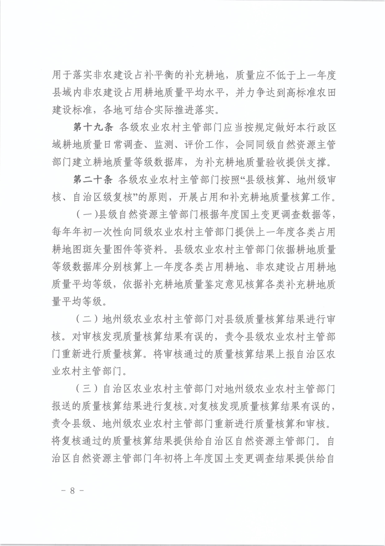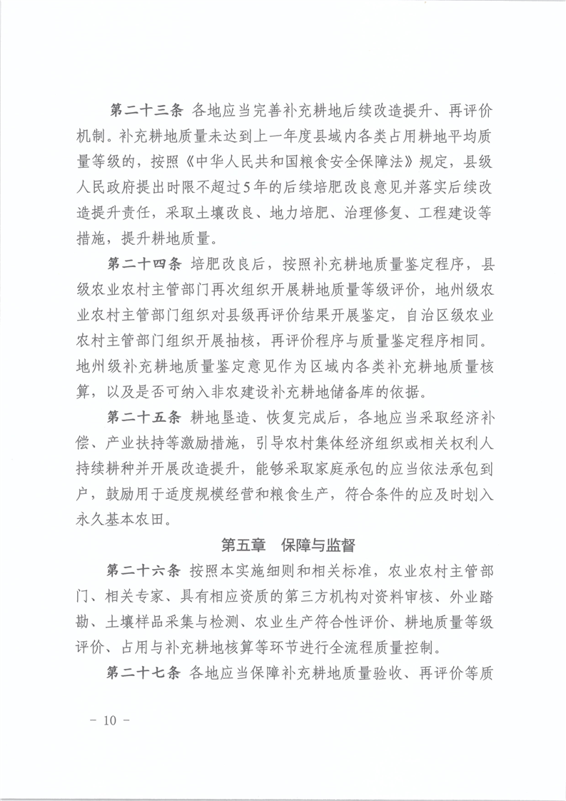 【本部门规范性文件】关于印发《新疆维吾尔自治区补充耕地质量验收实施细则(试行)》的通知