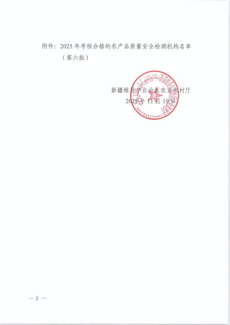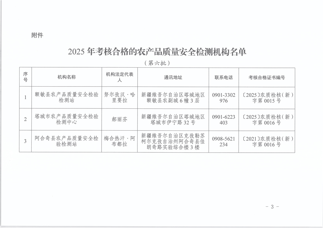 关于颁发2025年第六批农产品质量安全检测机构考核合格的公告