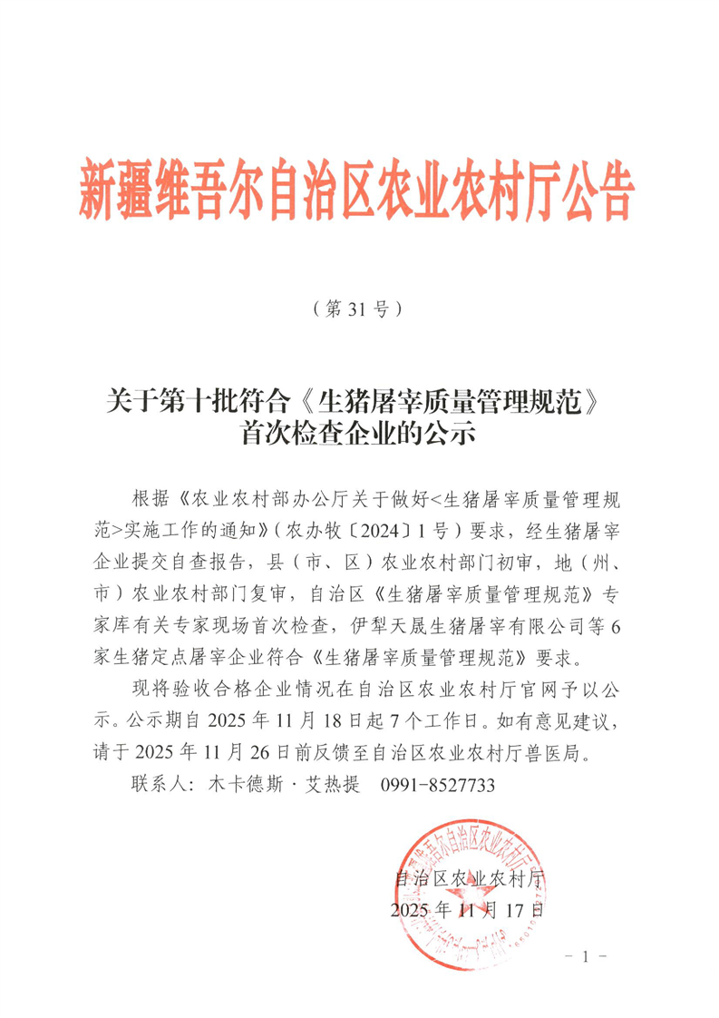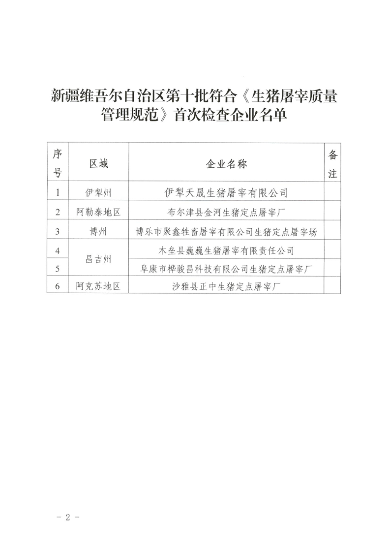 关于第十批符合《生猪屠宰质量管理规范》首次检查企业的公示