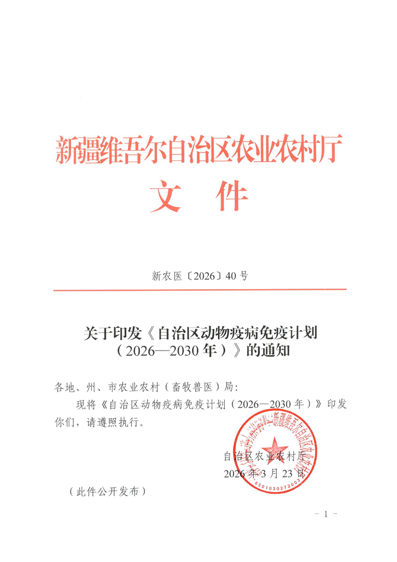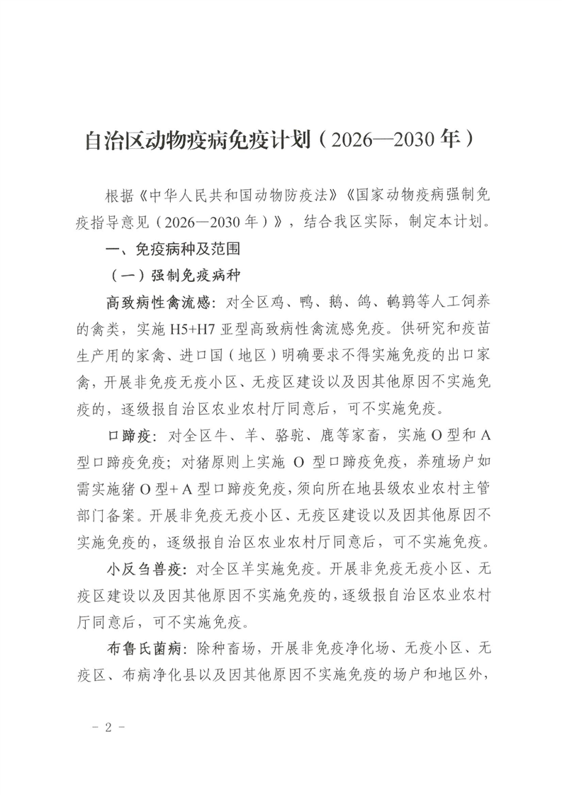 关于印发《自治区动物疫病免疫计划(2026—2030年)》的通知