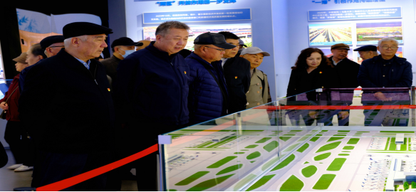 在讲解员的引导下,老同志们依次参观了“砥砺奋进铸辉煌”“繁荣富裕促发展”“民族团结一家亲”等展区,特别是农业现代化、乡村建设、特色产业发展等相关板块引起了老同志的极大关注。从裸眼3D呈现的深地塔科1井钻探场景,到三维立体投影展示的喀什古城变迁,再到反映农业科技进步的实物展品,“声光电”等多媒体技术让老同志们沉浸式感受了新疆维吾尔自治区成立70年来从边疆末梢到亚欧枢纽发展的巨变。老同志们不时驻足交流,在记录农业发展的老照片前追忆奋斗岁月,在展示现代农机与智慧农业的展台前感慨技术革新。作为长期奋战在农业农村战线的退休干部,尤为关注新疆农业与农村发展的历史性跨越,为能够亲历并参与这段波澜壮阔的发展历程感到无比骄傲,纷纷结合自身工作经历分享感悟。从传统农业向现代化、智能化农业的转型,从全面打赢脱贫攻坚战到扎实推进乡村振兴的伟大实践,新疆农业农村面貌发生了翻天覆地的变化。新疆特色农业提质增效、乡村人居环境的显著改善、农业科技的持续突破,无一不印证着党的坚强领导和各族干部群众的团结奋斗。
