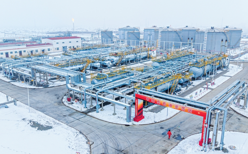 在吉木萨尔国家级陆相页岩油示范区页岩油联合站,示范区开采出来的页岩油集输至此处理(摄于12月8日)。张睿 摄
