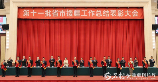 自治区党委副书记、自治区主席艾尔肯·吐尼亚孜主持。自治区人大常委会主任祖木热提·吾布力,自治区政协主席努尔兰·阿不都满金,自治区党委副书记、兵团政委何忠友,自治区党委副书记陈明国出席。自治区党委常委、组织部部长王琳宣读了自治区党委和政府关于表扬第十一批省市援疆工作先进集体的通报和关于表彰第十一批省市优秀援疆干部人才的决定。