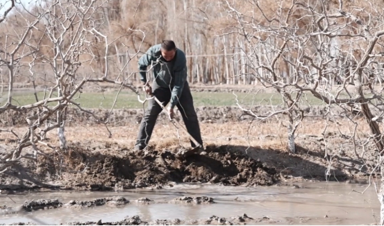 2月24日,麦盖提县央塔克乡阿恰墩村,村民正进行春灌。卡合热曼·吐拉丁 摄