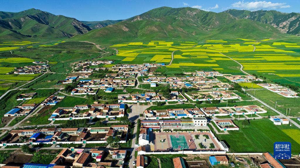 这是青海省海北藏族自治州海晏县金滩乡东达村夏日景色(无人机照片,资料照片)。新华社发(李勇摄)