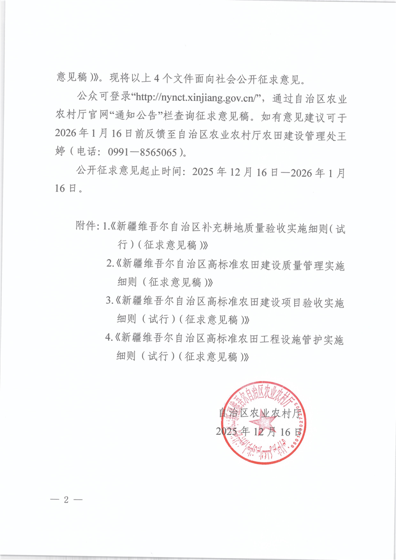 关于征求《新疆维吾尔自治区补充耕地质量验收实施细则(试行)(征求意见稿)》等四个文件意见建议的公告