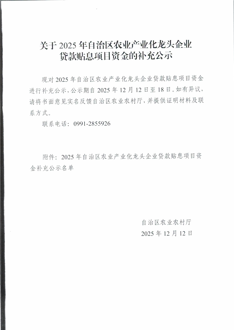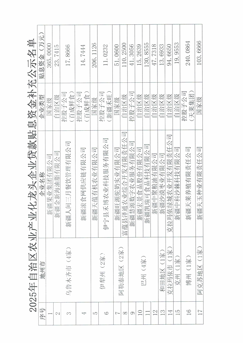 关于2025年自治区农业产业化龙头企业贷款贴息项目资金的补充公式