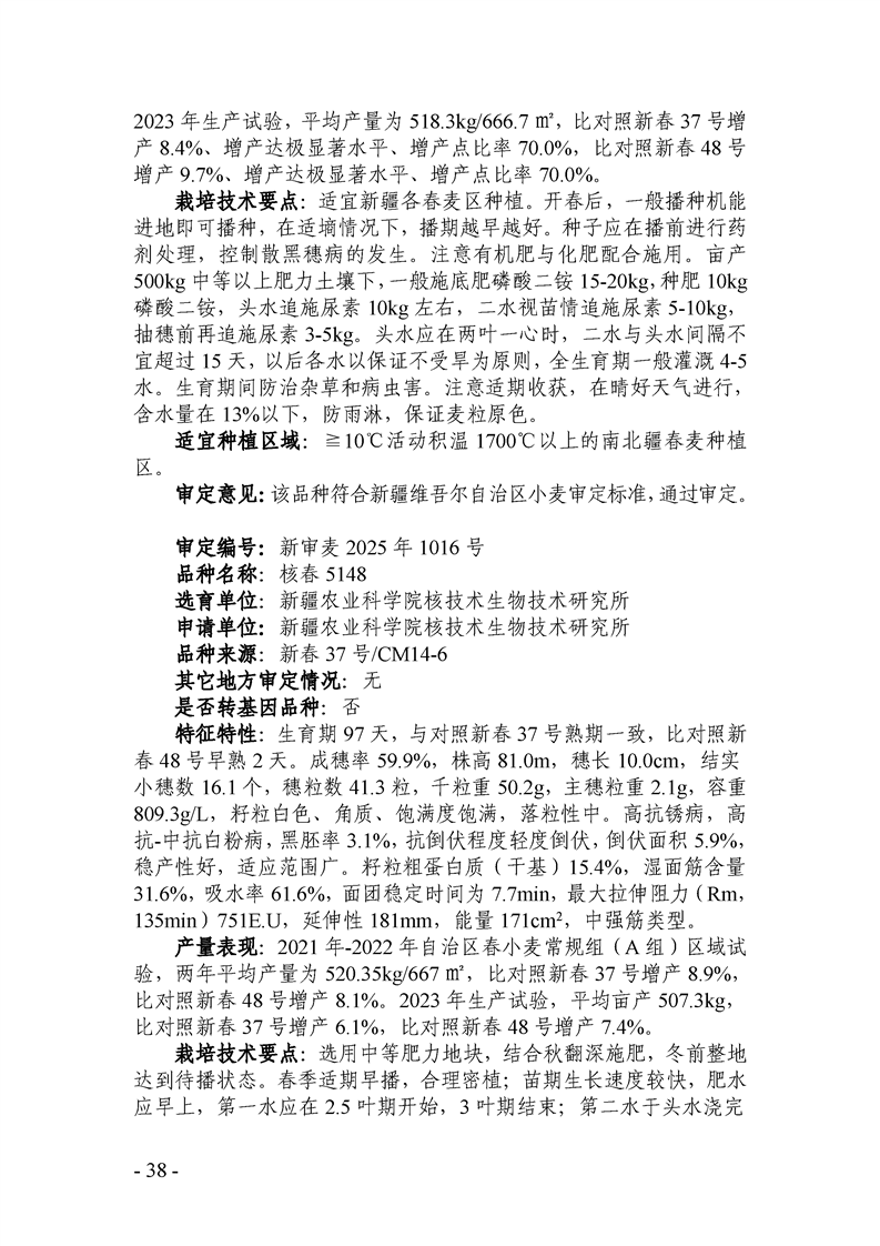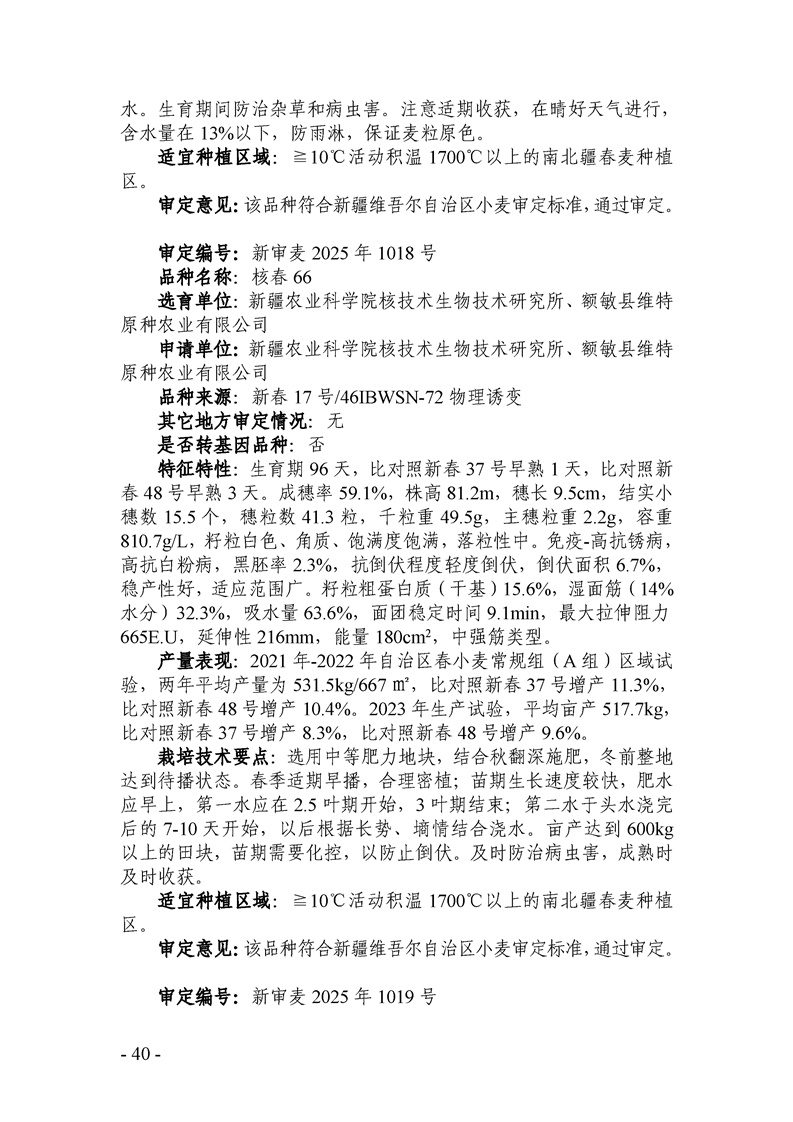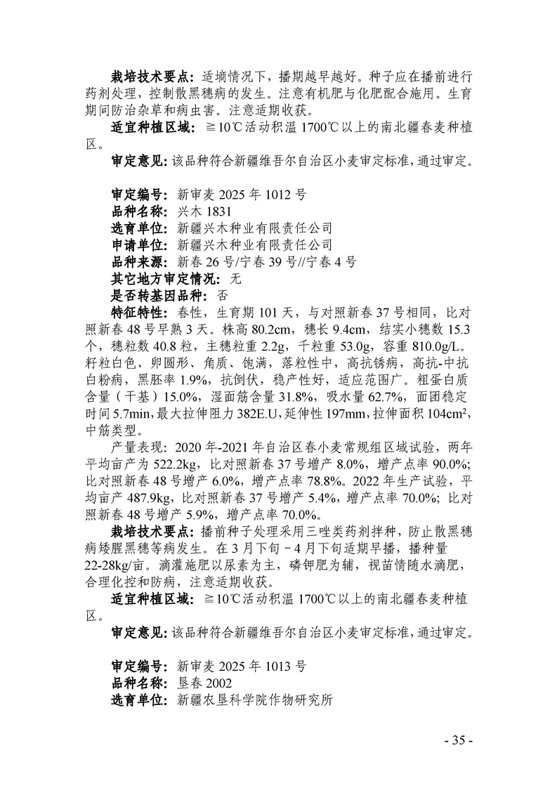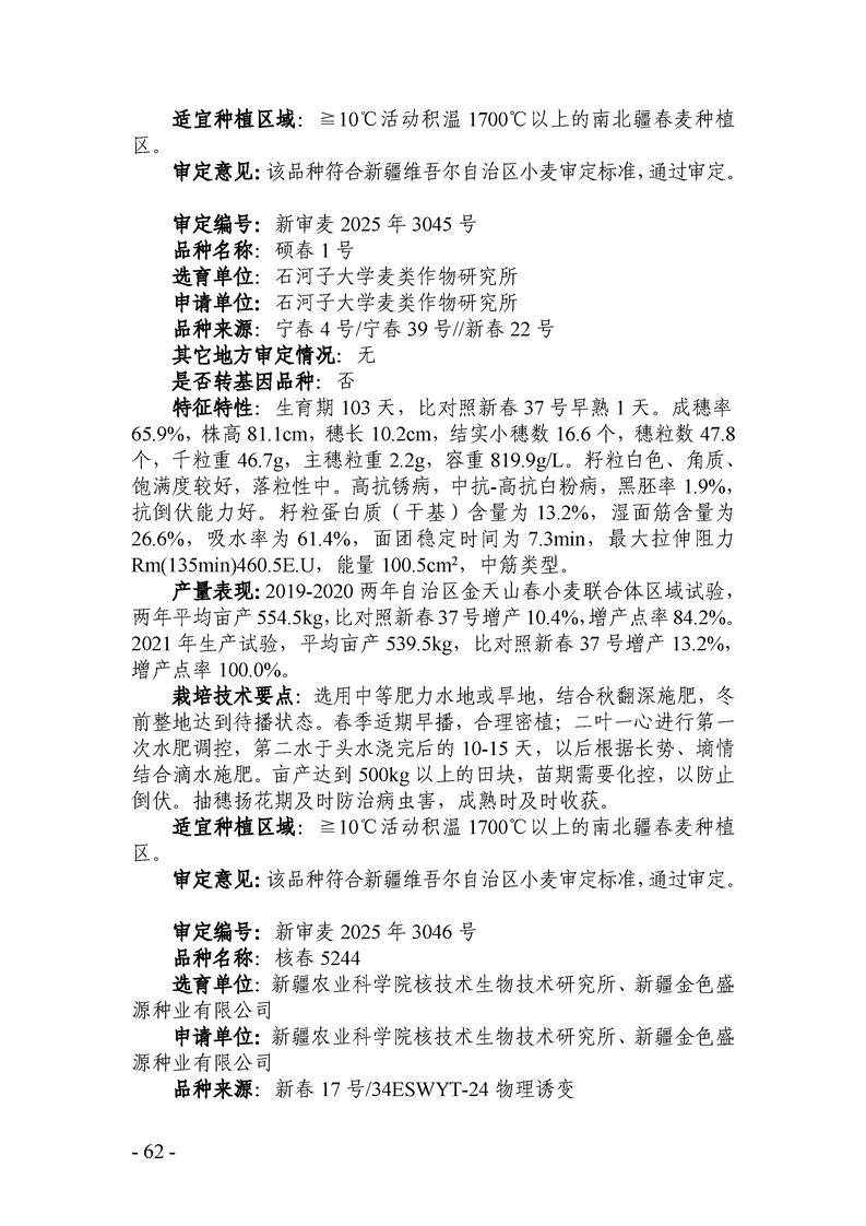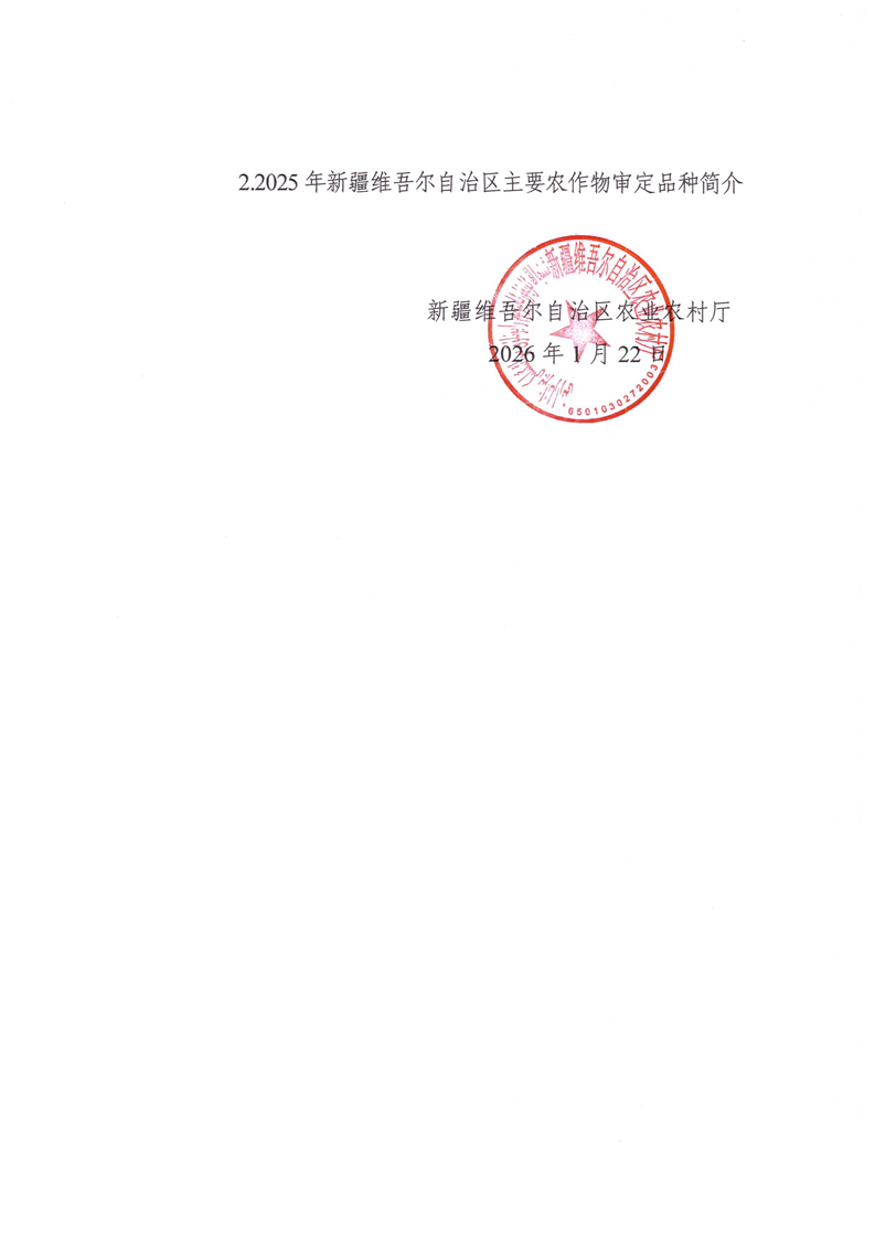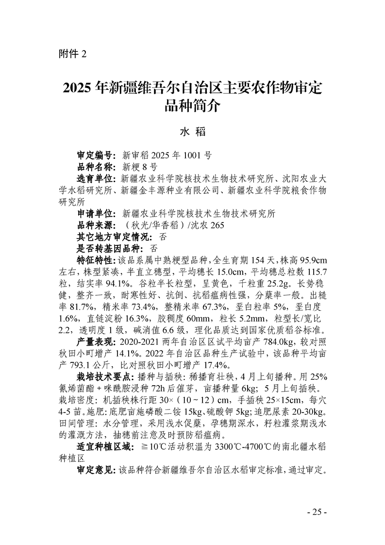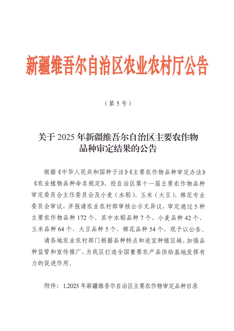 关于2025年新疆维吾尔自治区主要农作物品种审定结果的公告