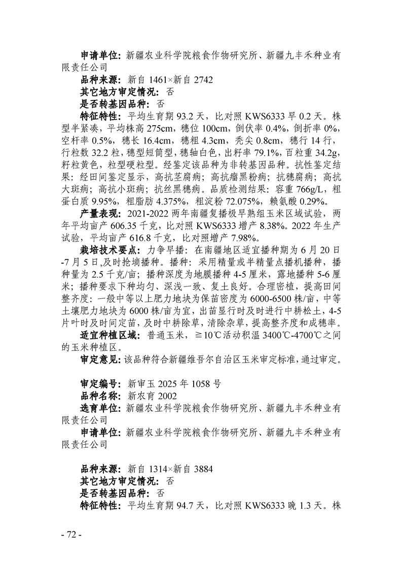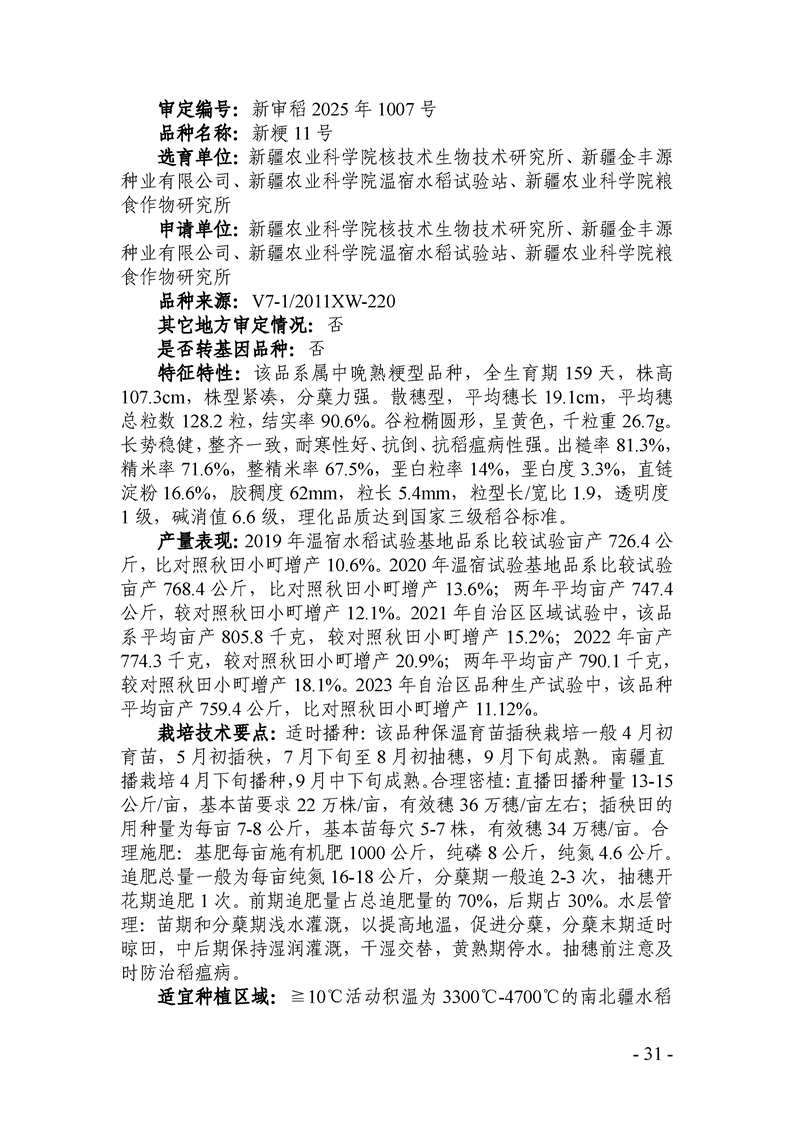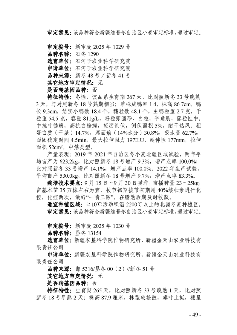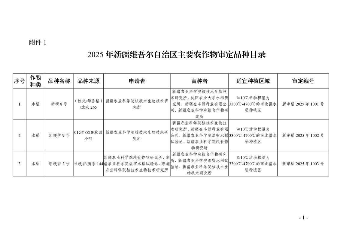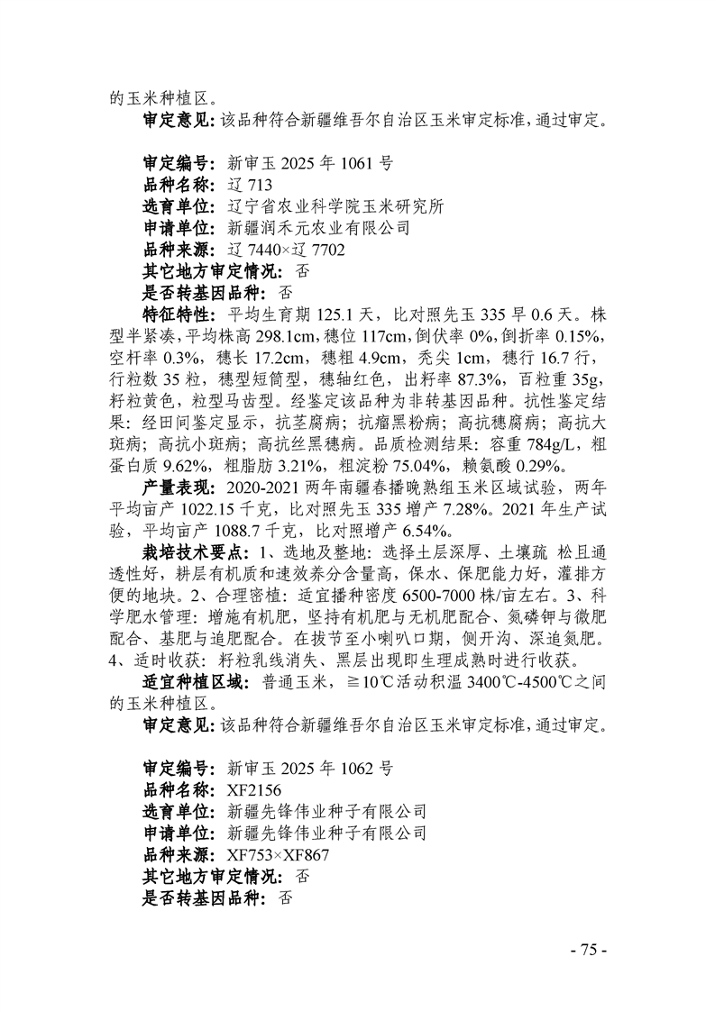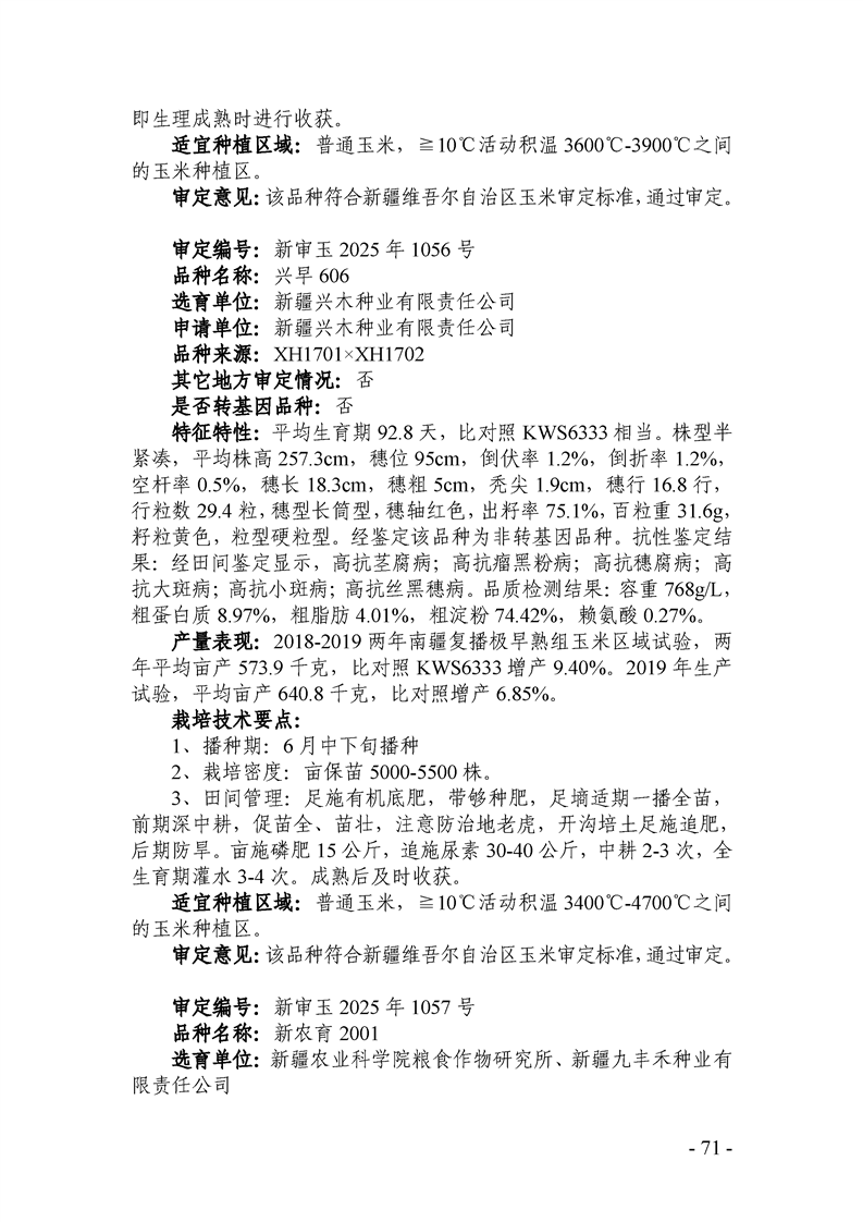 关于2025年新疆维吾尔自治区主要农作物品种审定结果的公告