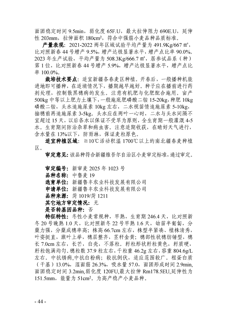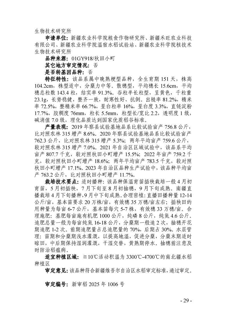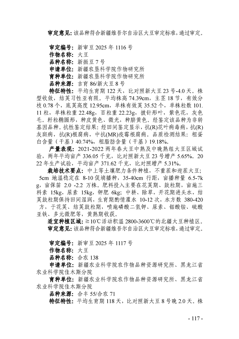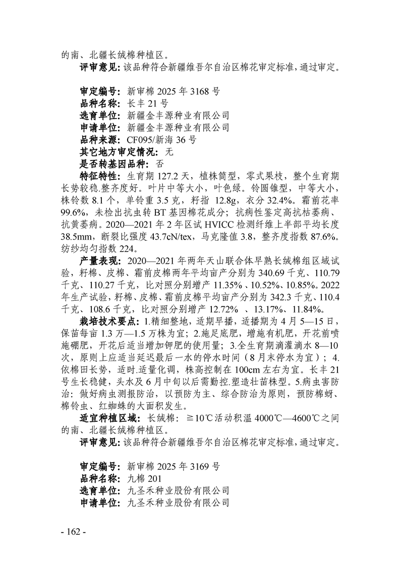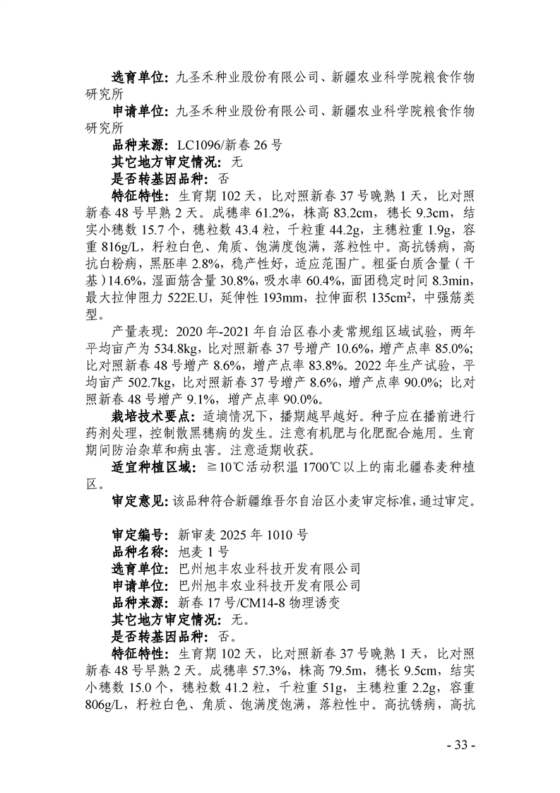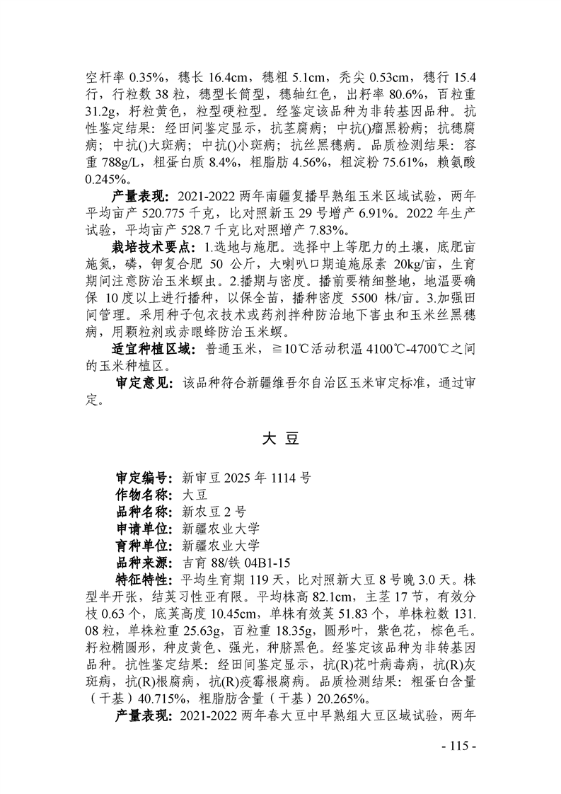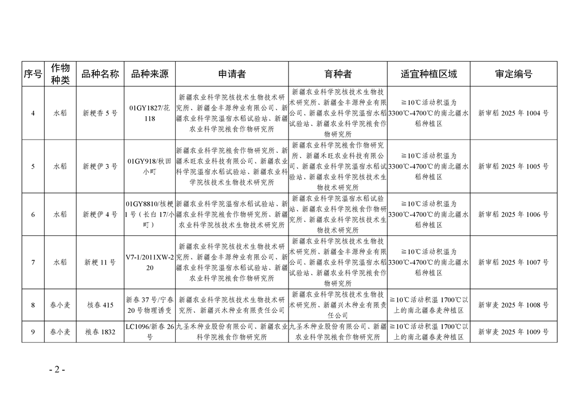 关于2025年新疆维吾尔自治区主要农作物品种审定结果的公告