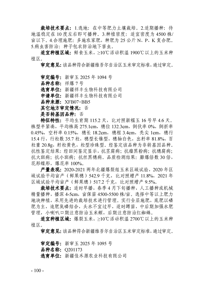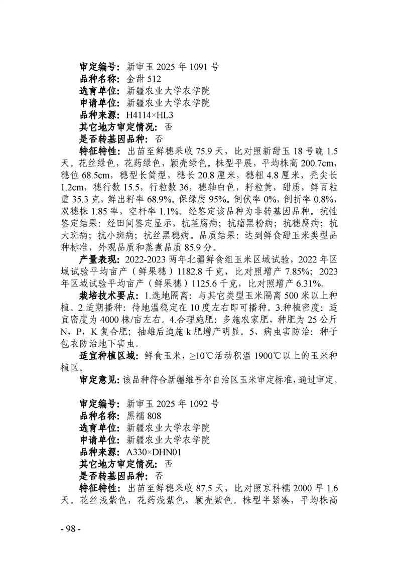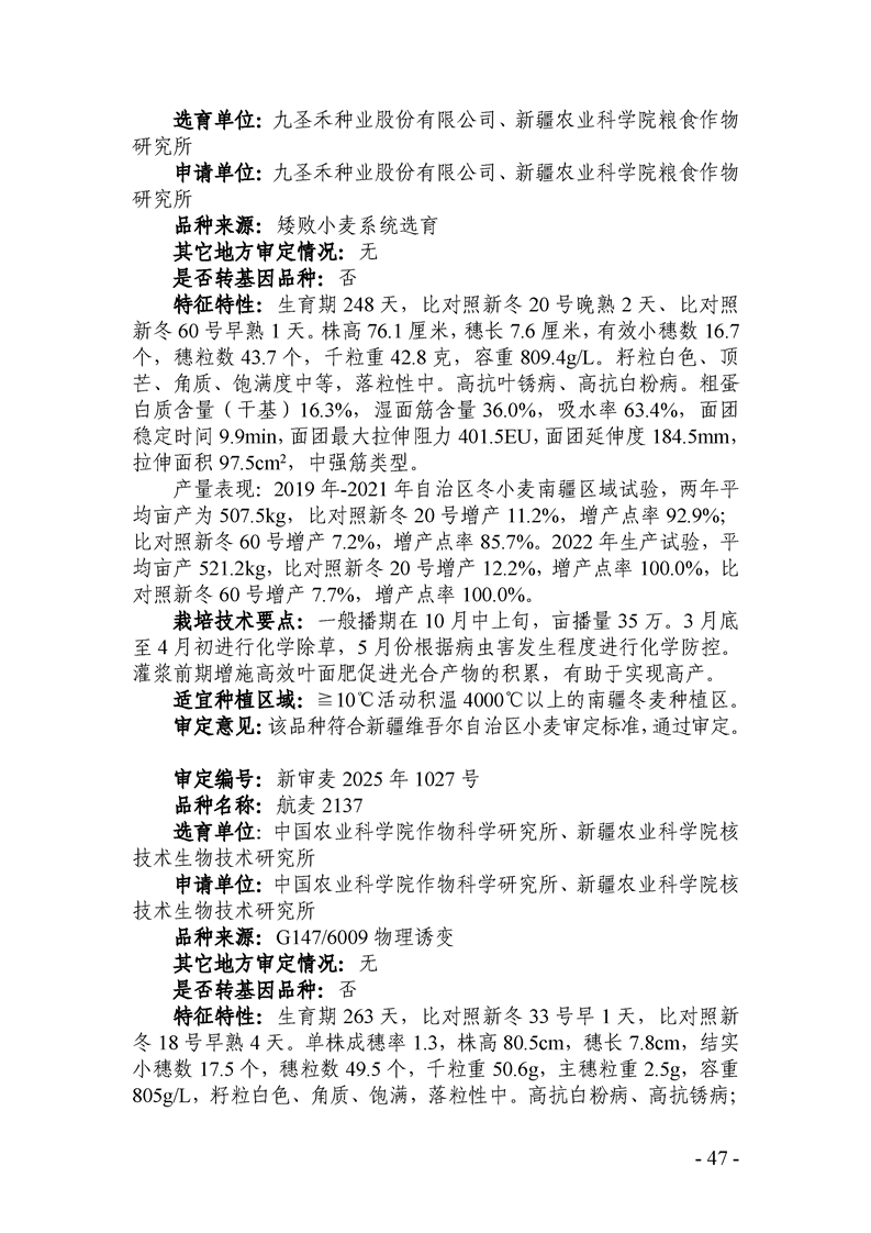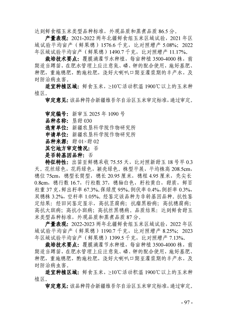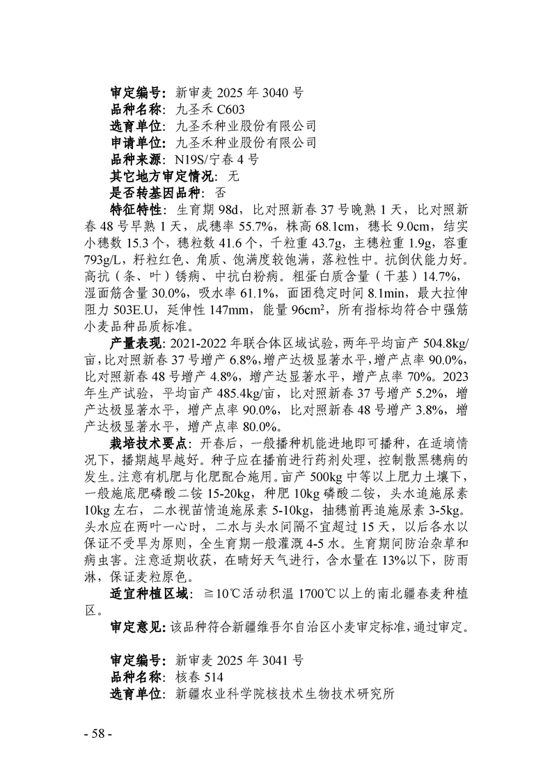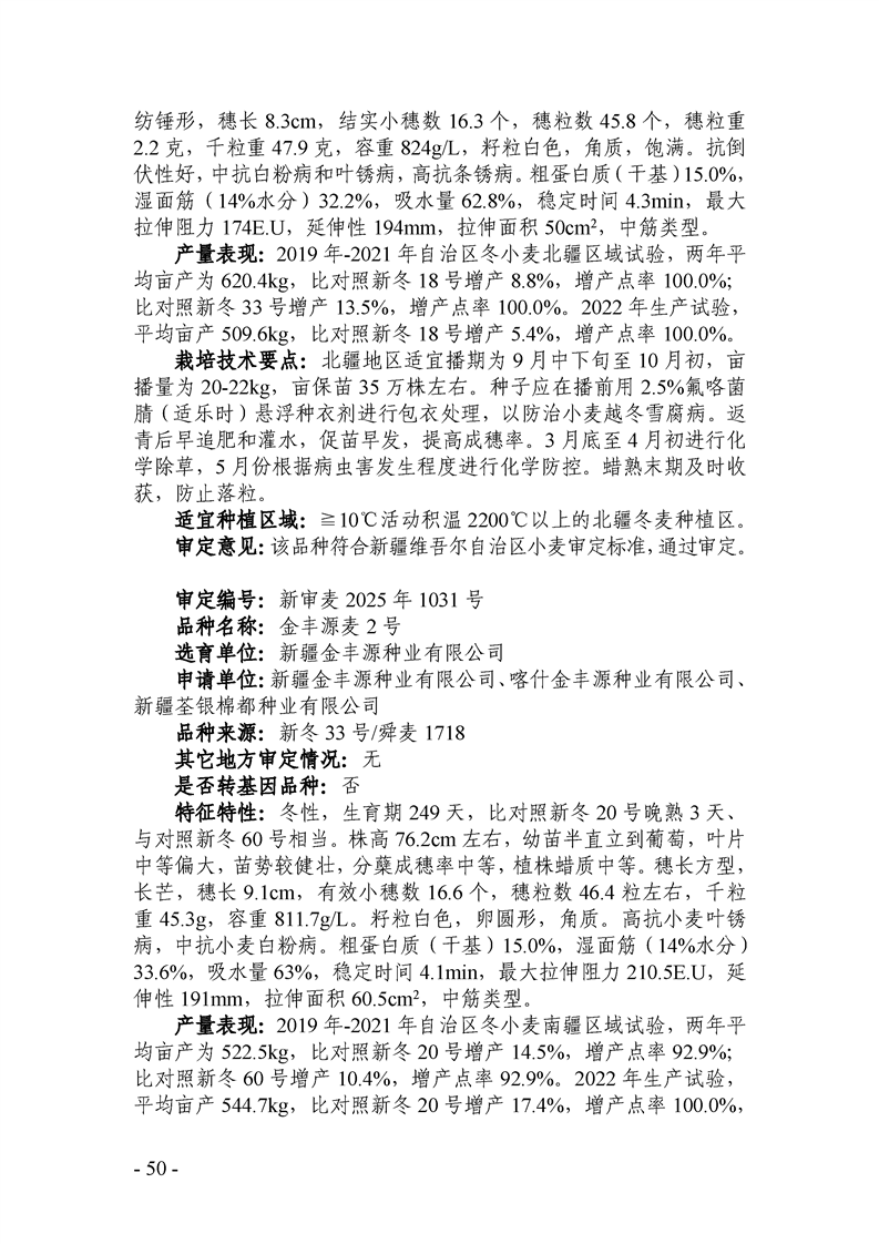 关于2025年新疆维吾尔自治区主要农作物品种审定结果的公告