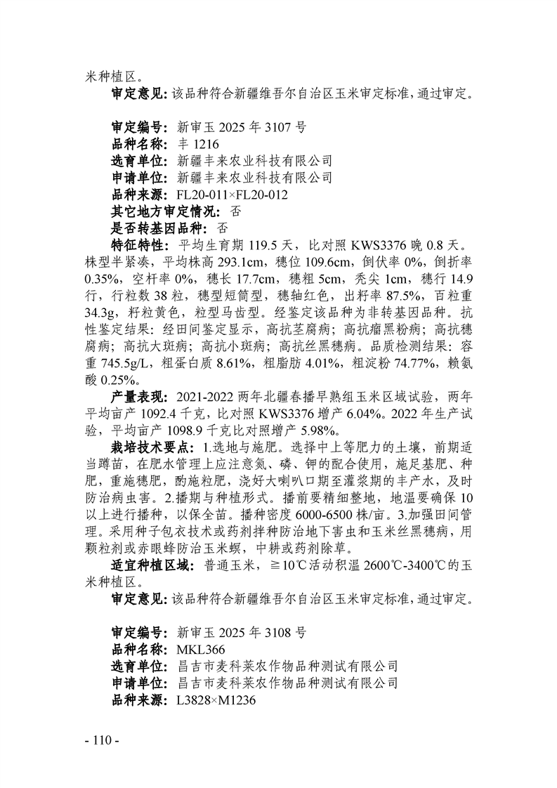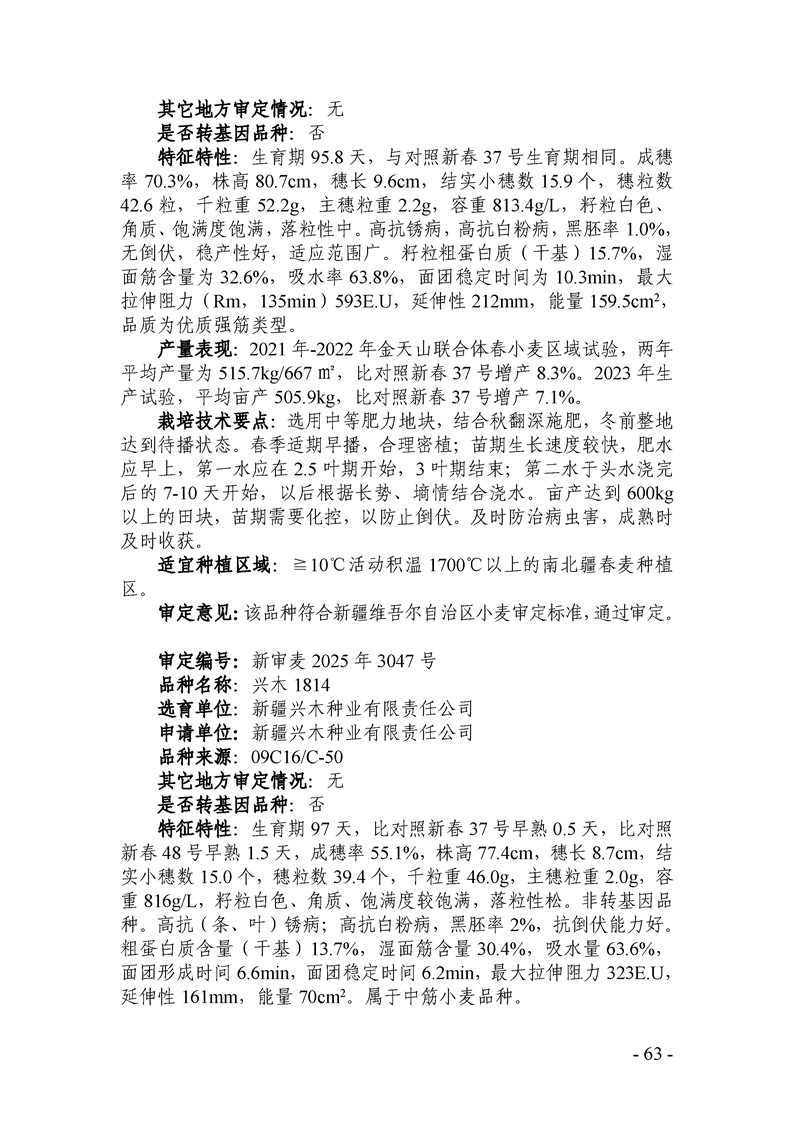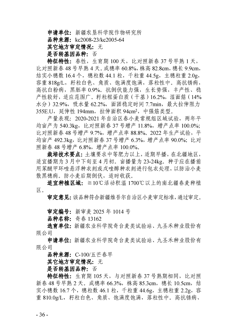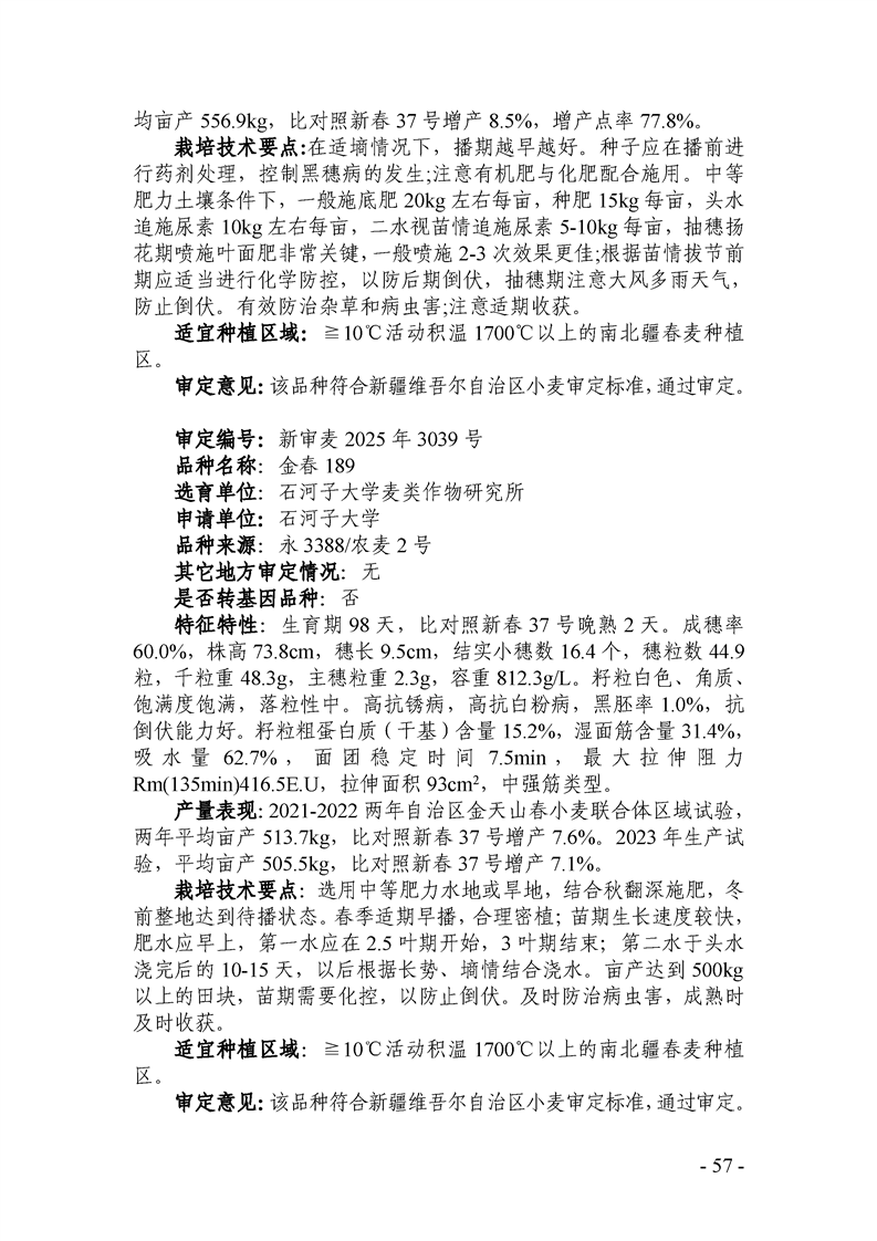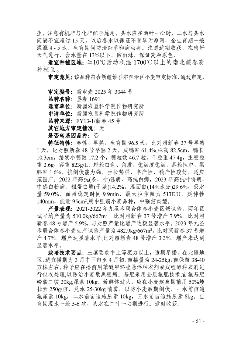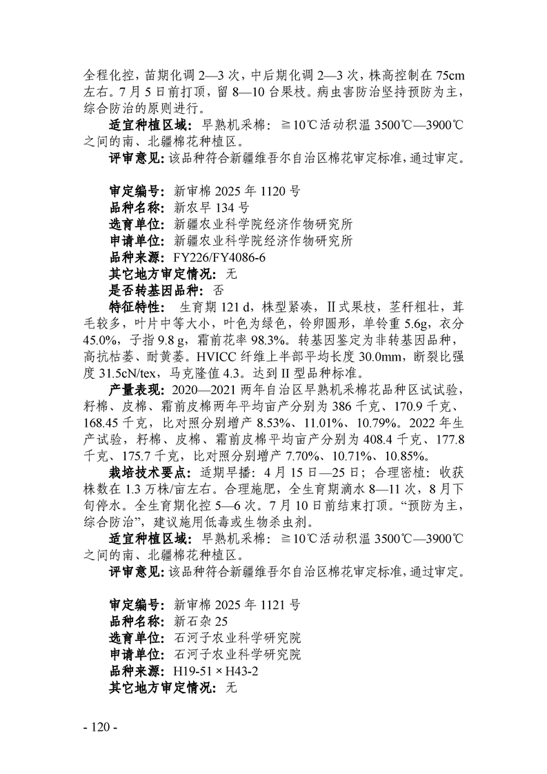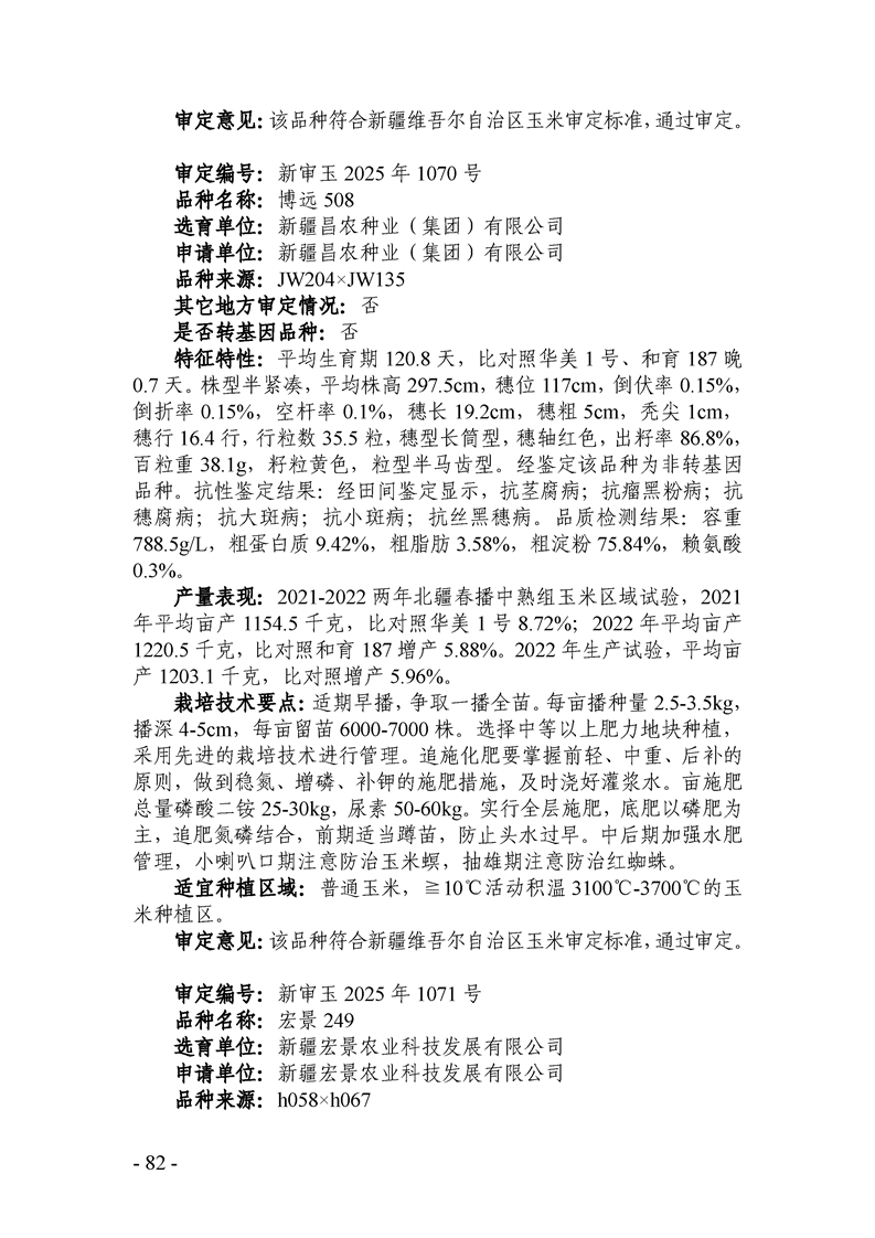 关于2025年新疆维吾尔自治区主要农作物品种审定结果的公告