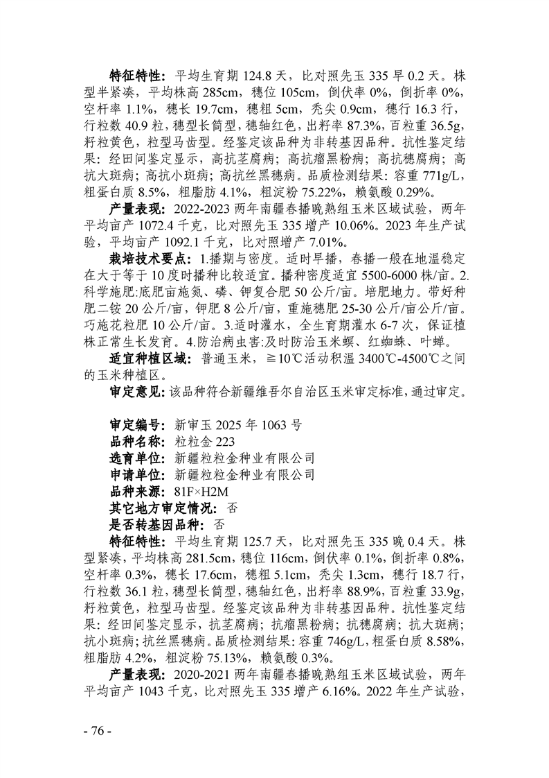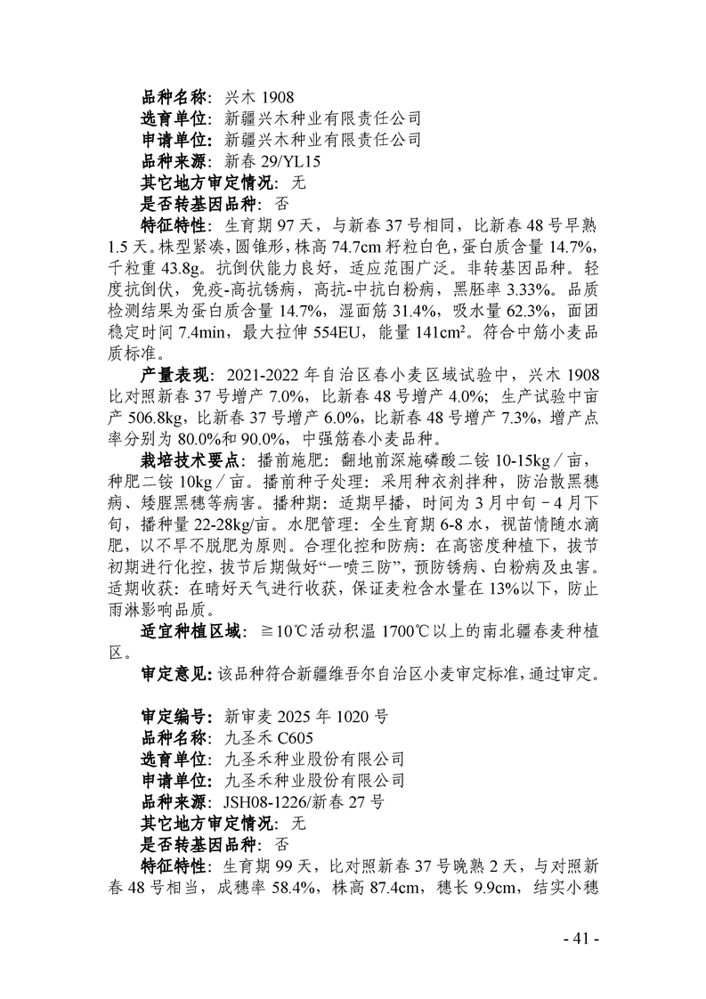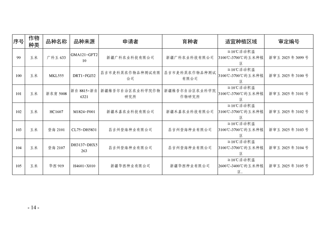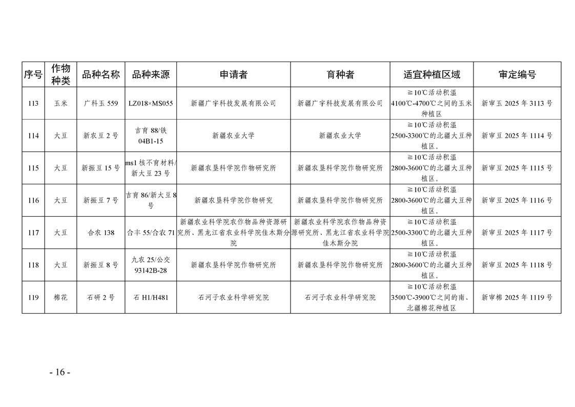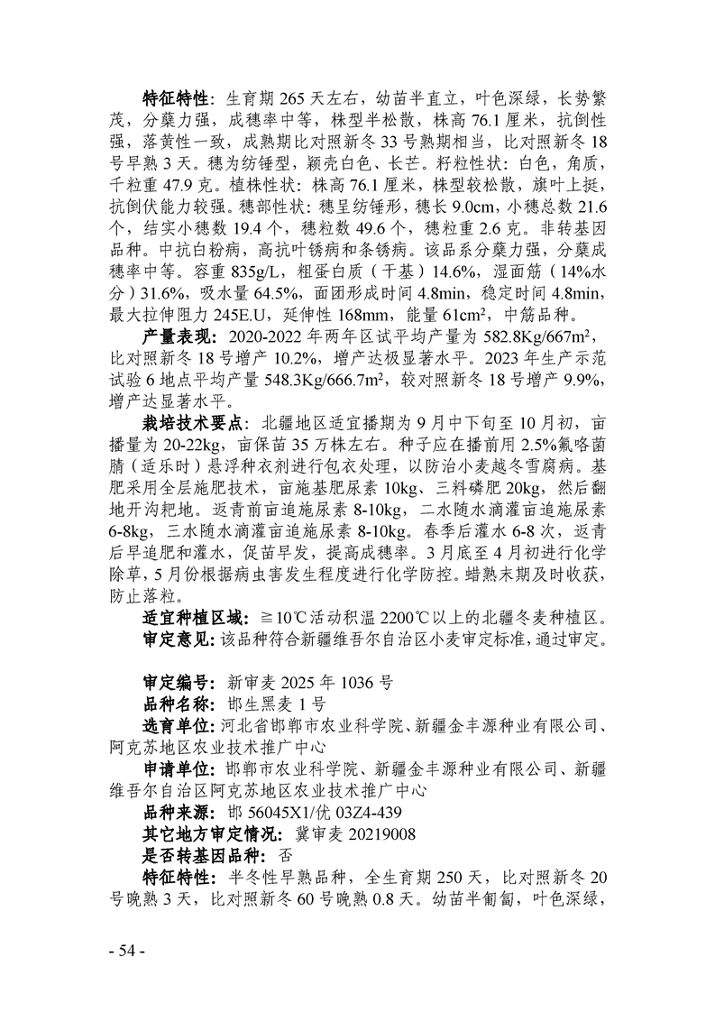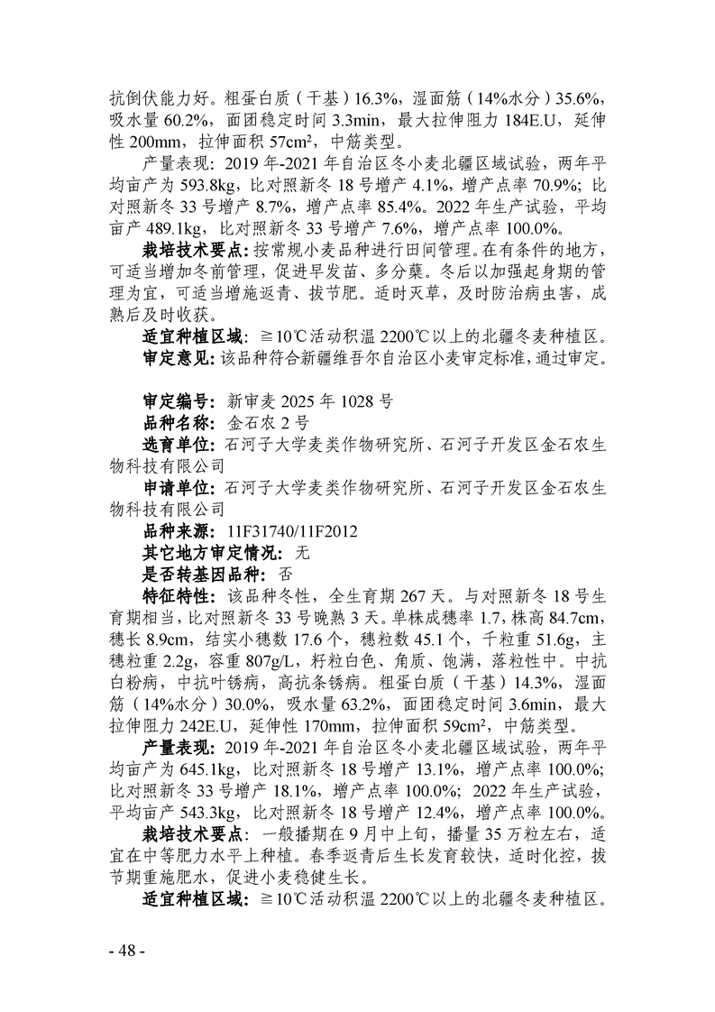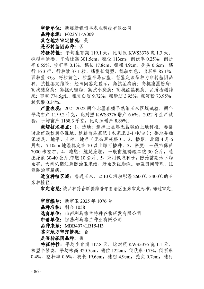关于2025年新疆维吾尔自治区主要农作物品种审定结果的公告
