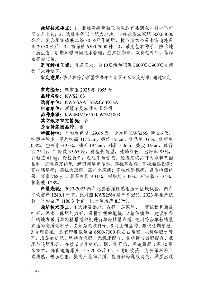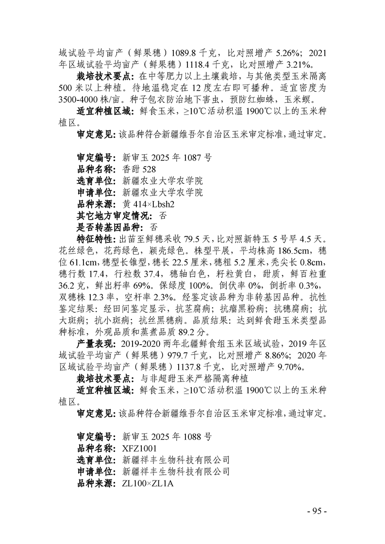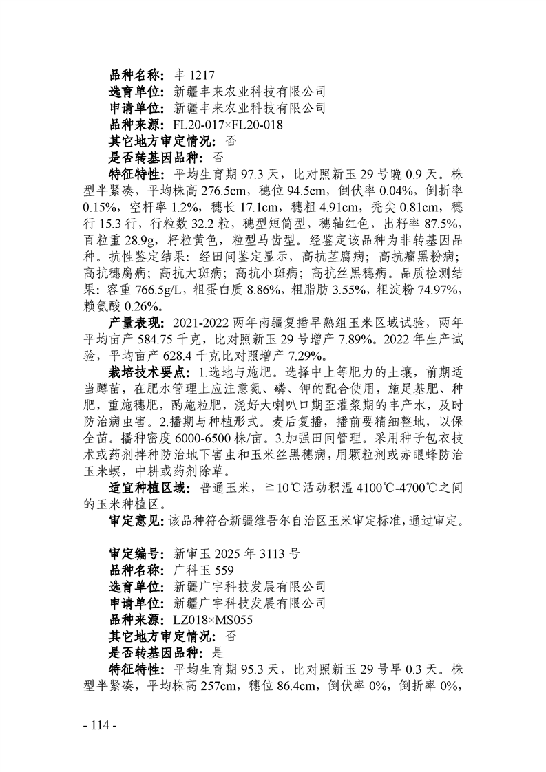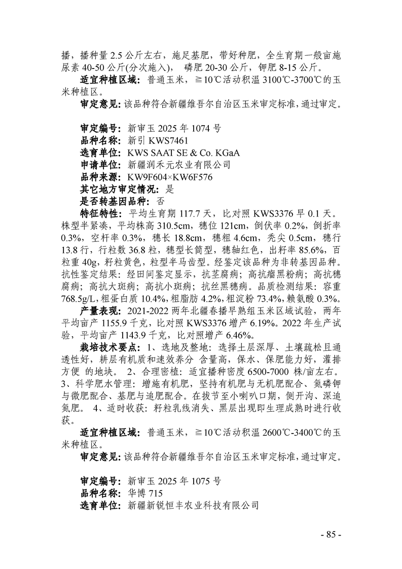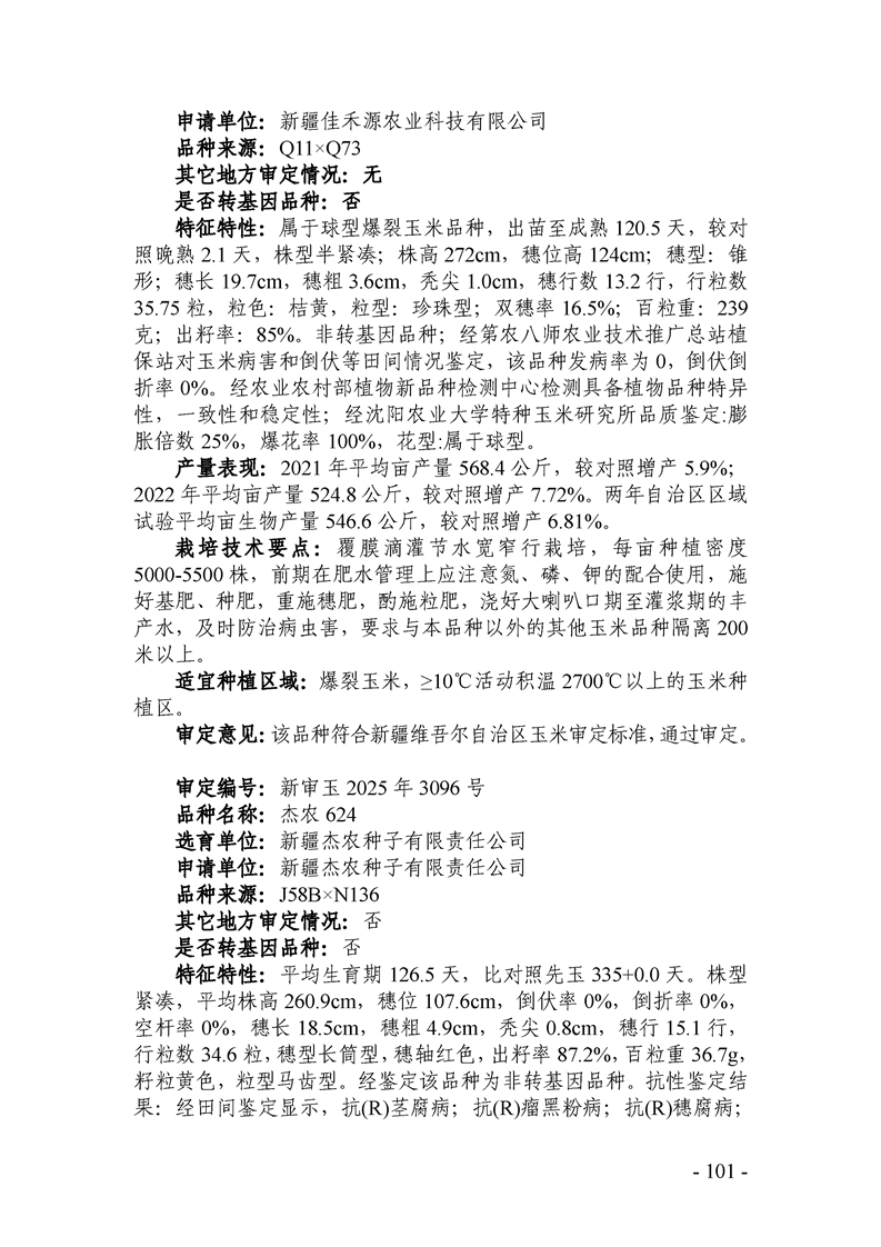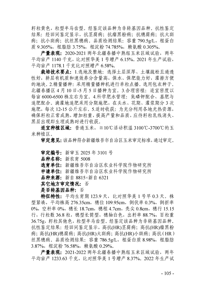 关于2025年新疆维吾尔自治区主要农作物品种审定结果的公告