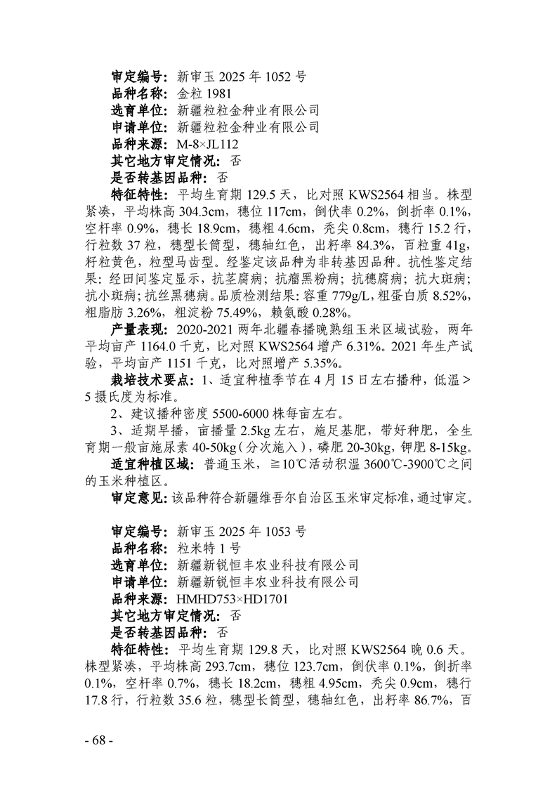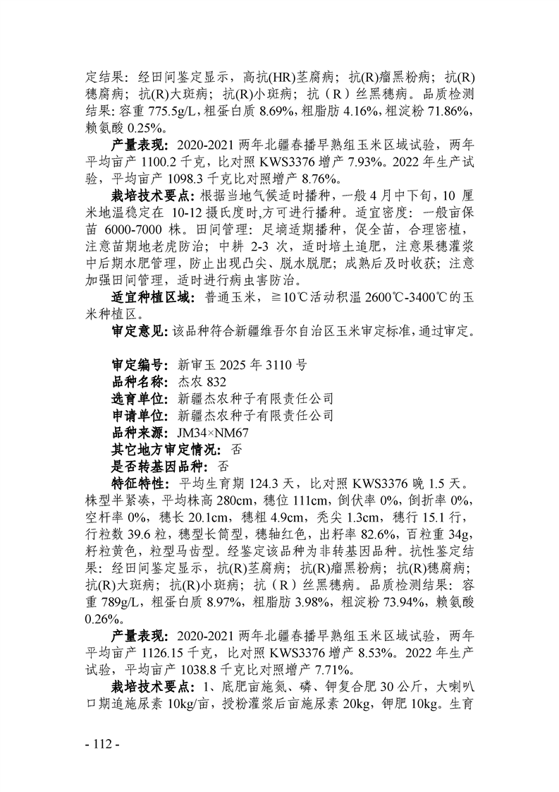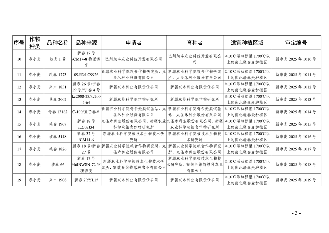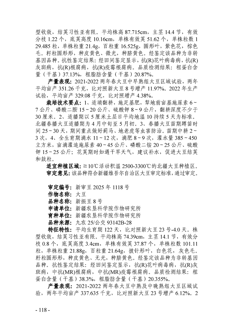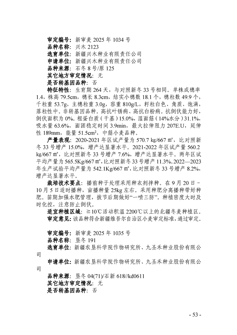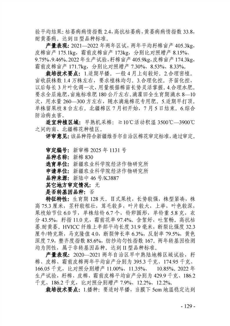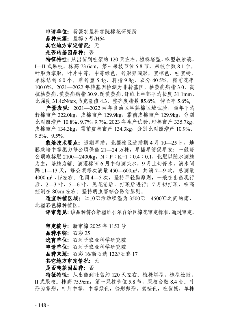 关于2025年新疆维吾尔自治区主要农作物品种审定结果的公告
