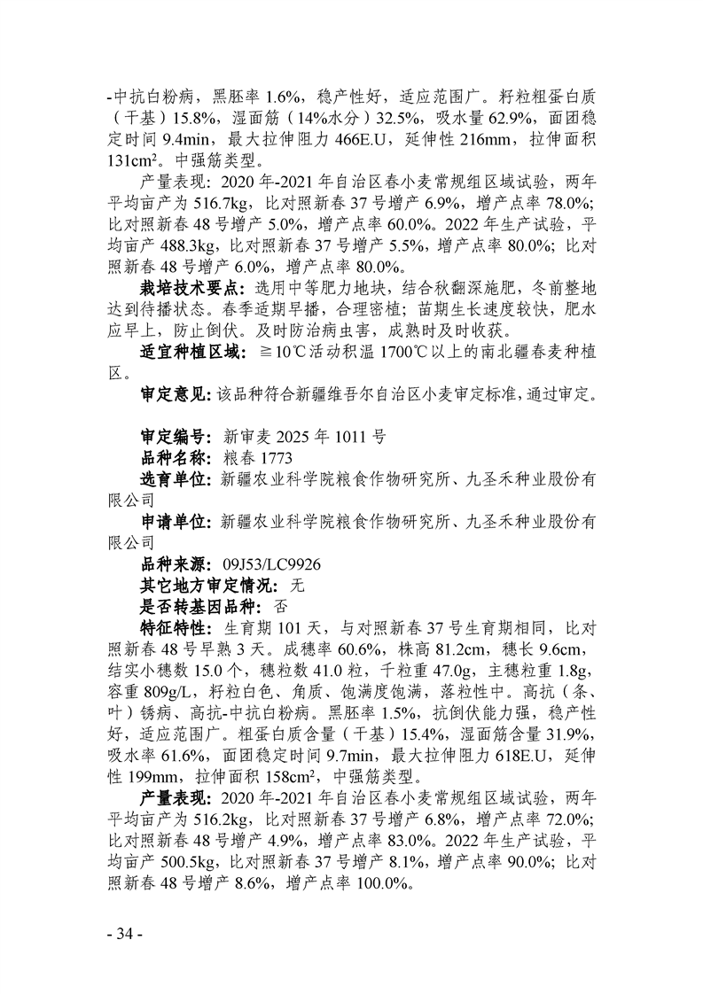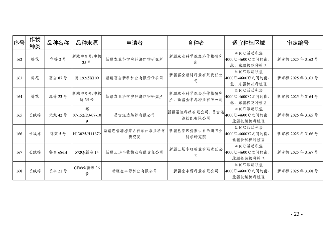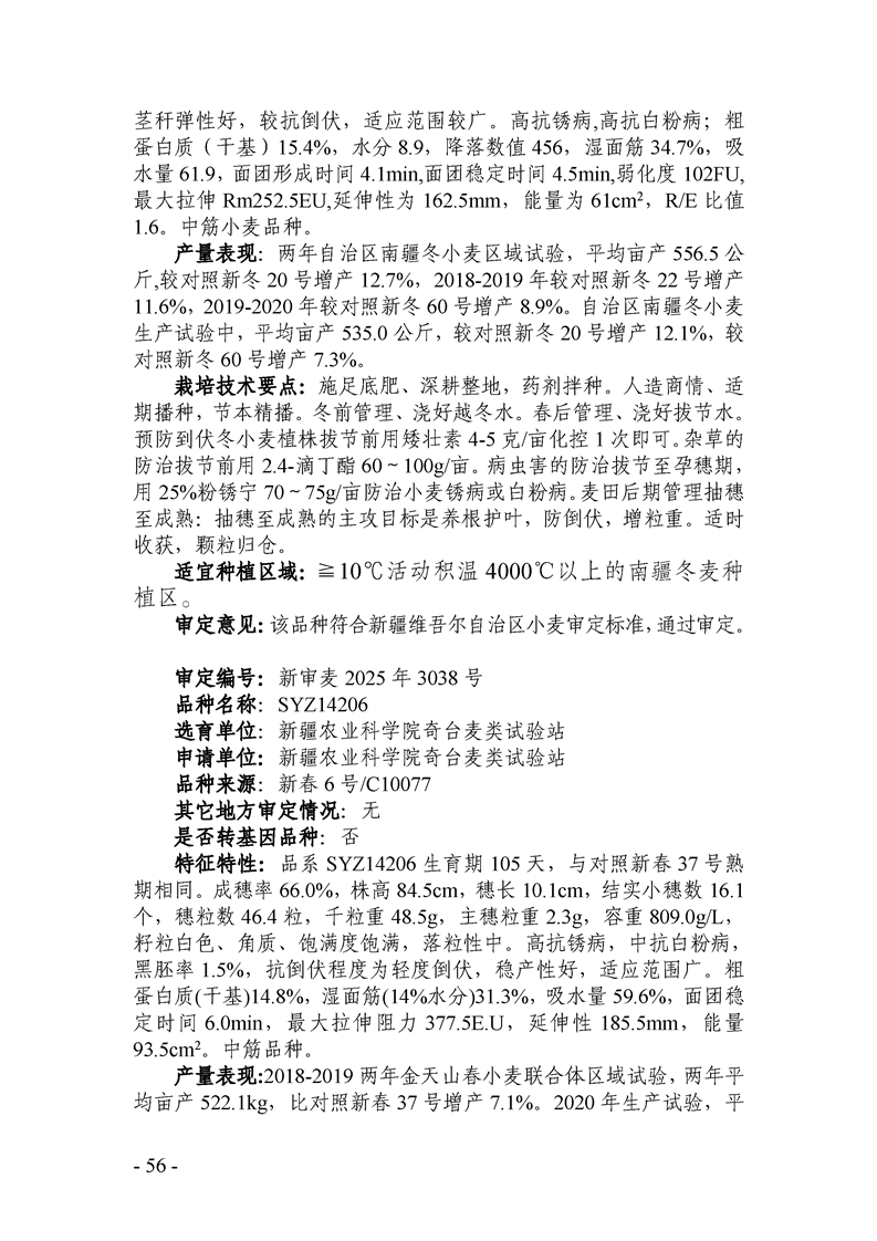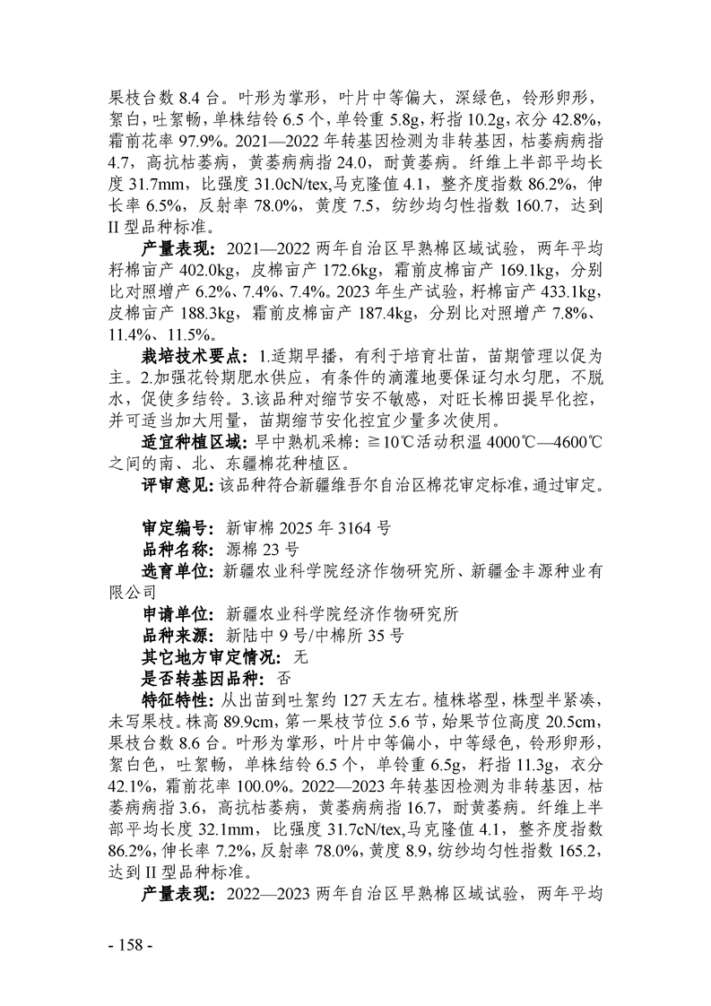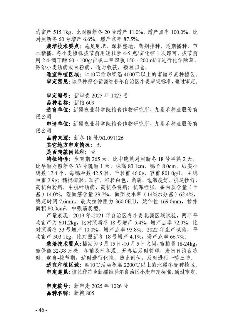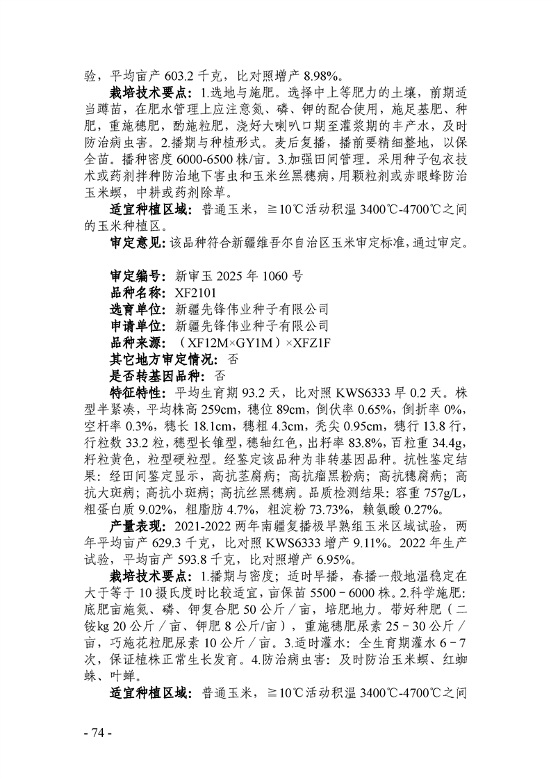关于2025年新疆维吾尔自治区主要农作物品种审定结果的公告