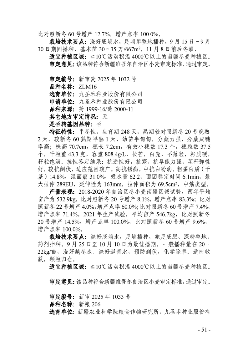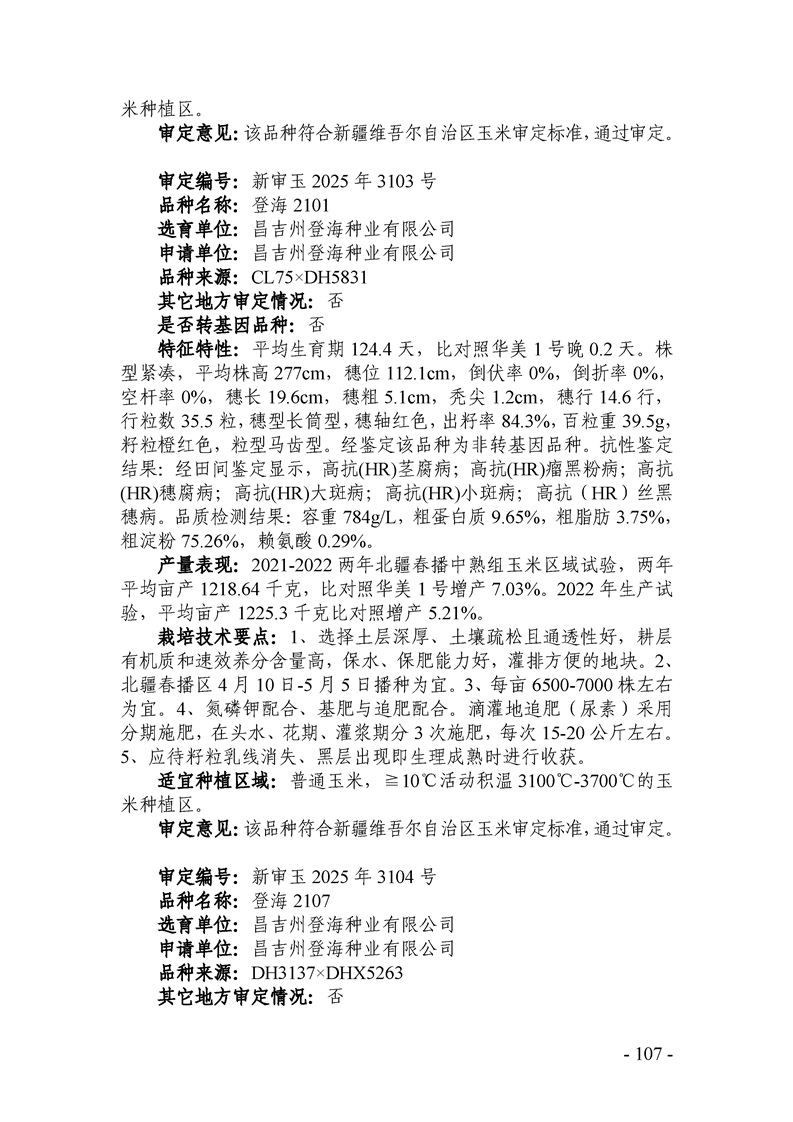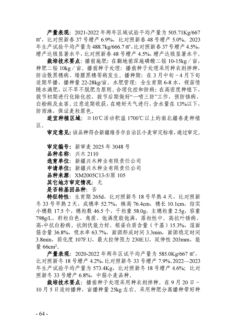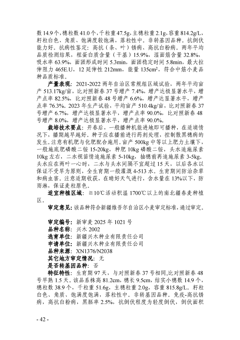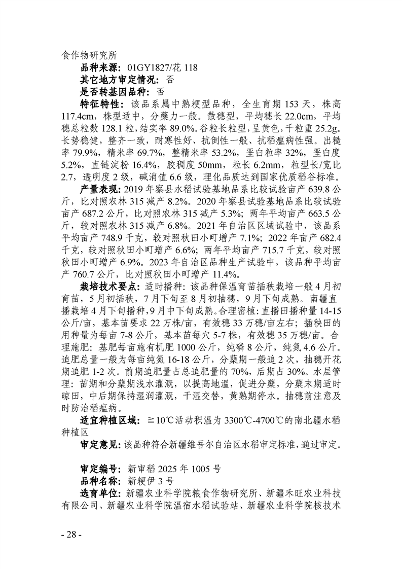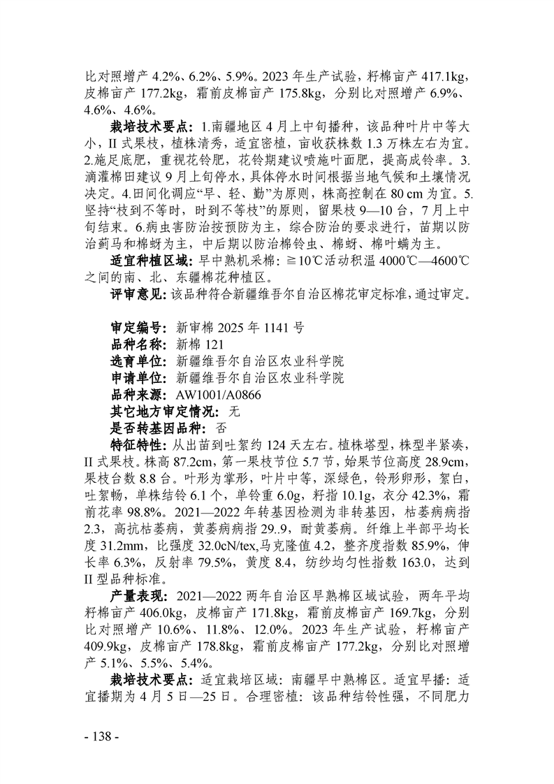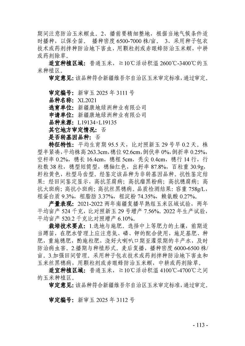 关于2025年新疆维吾尔自治区主要农作物品种审定结果的公告