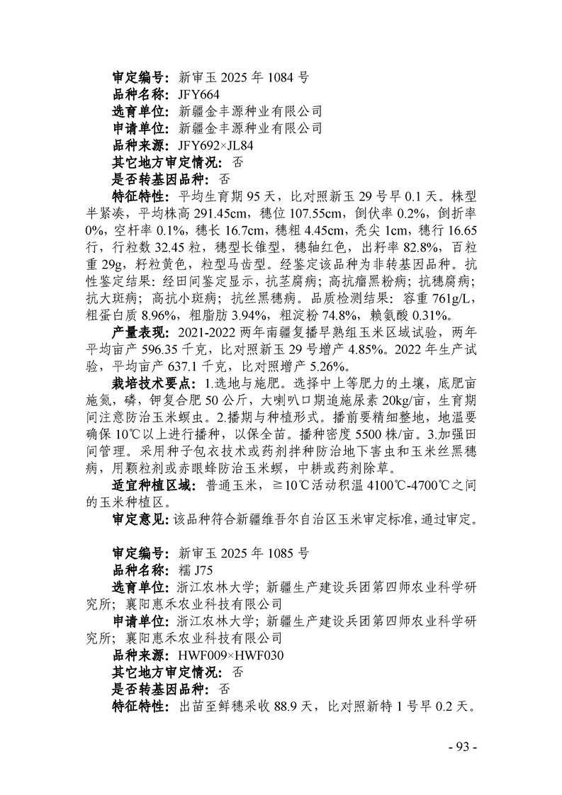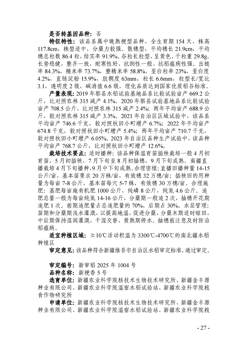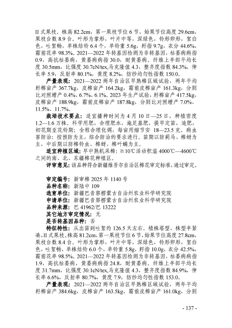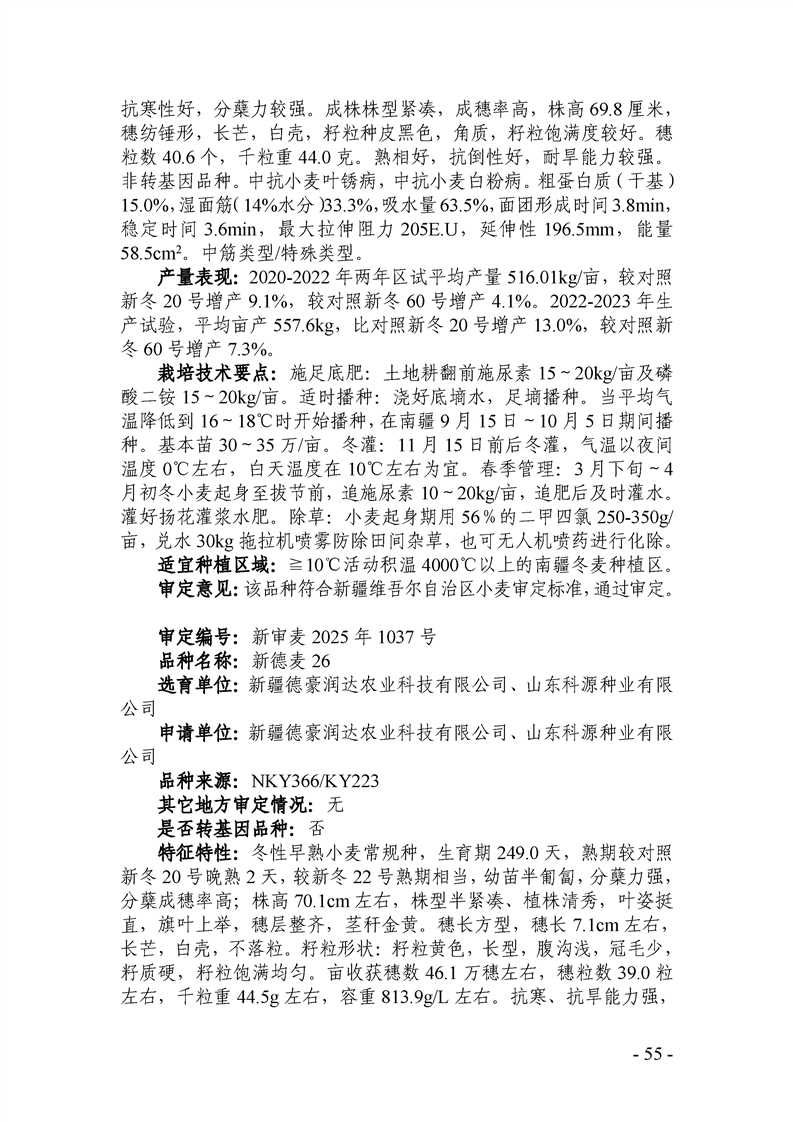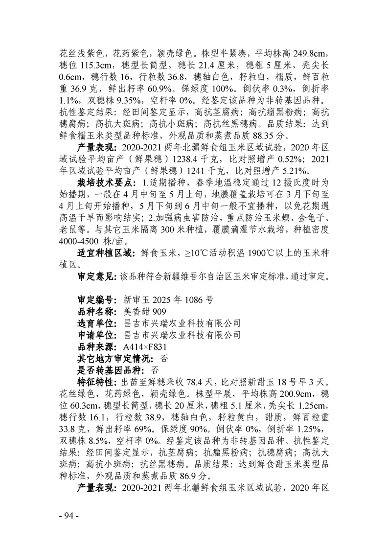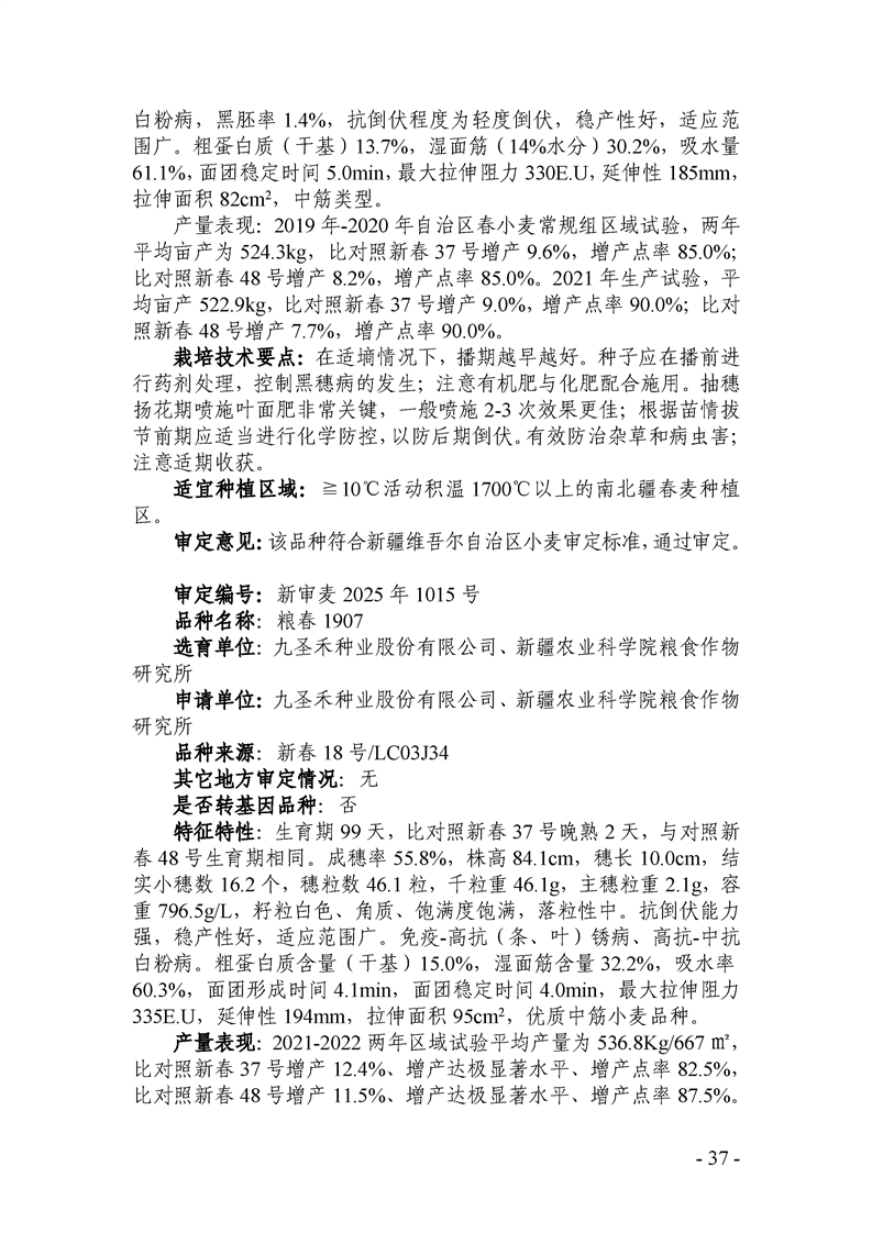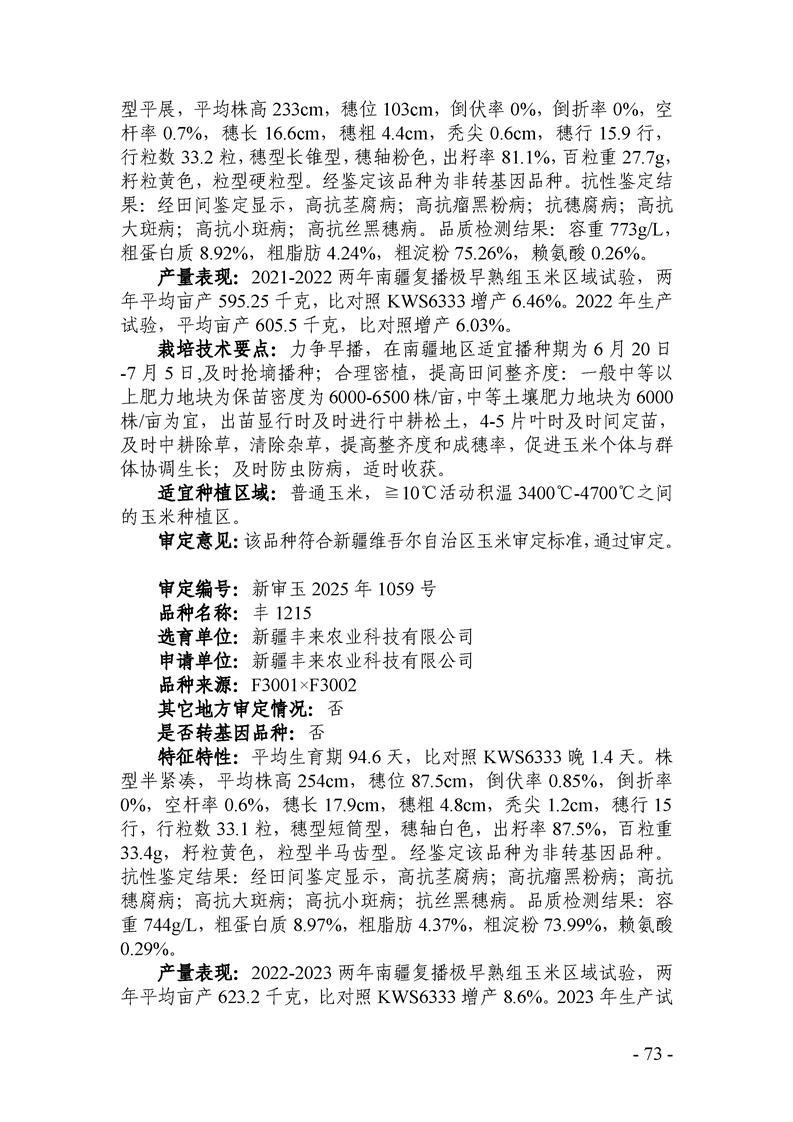关于2025年新疆维吾尔自治区主要农作物品种审定结果的公告