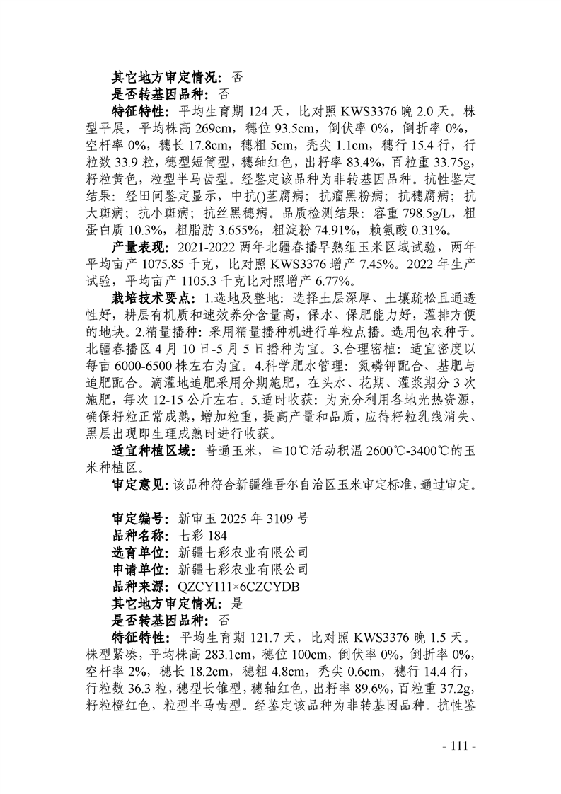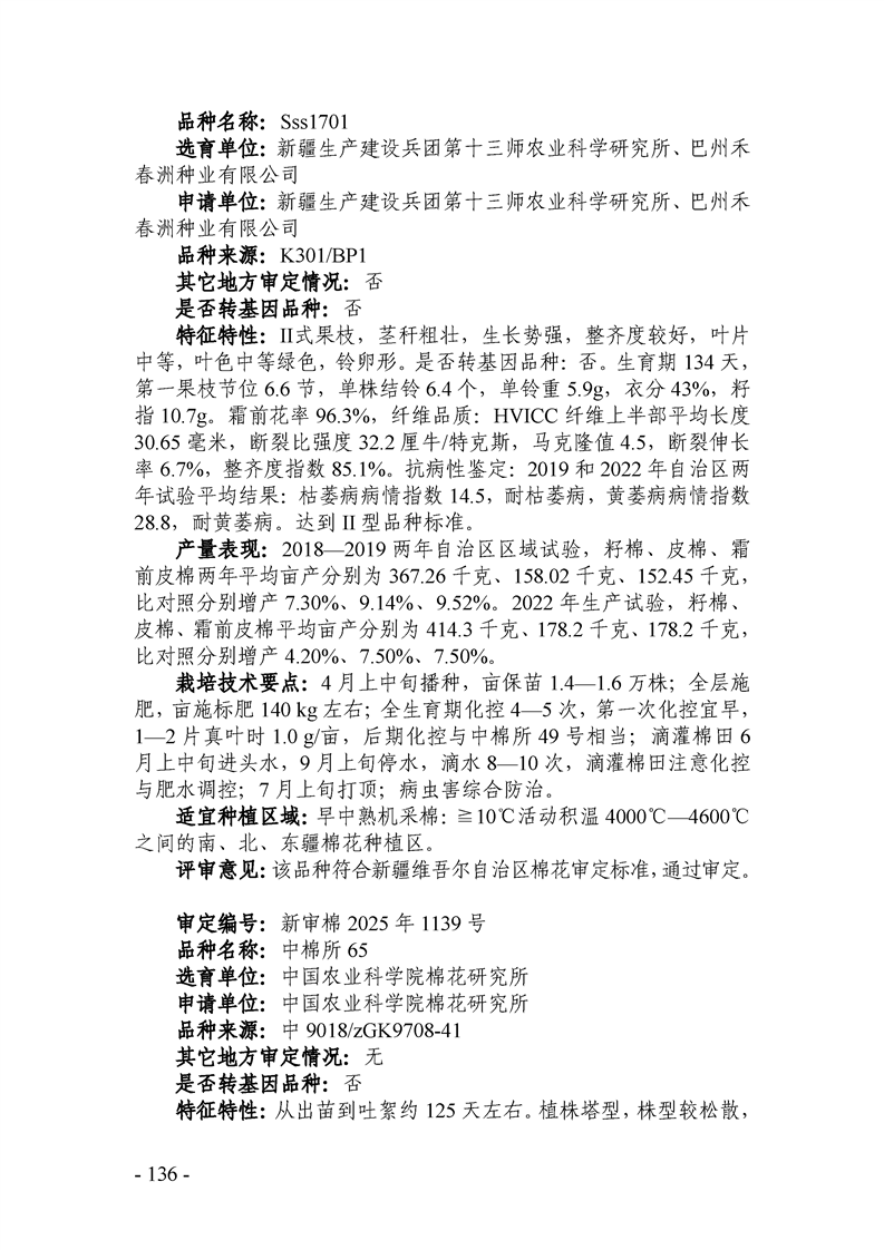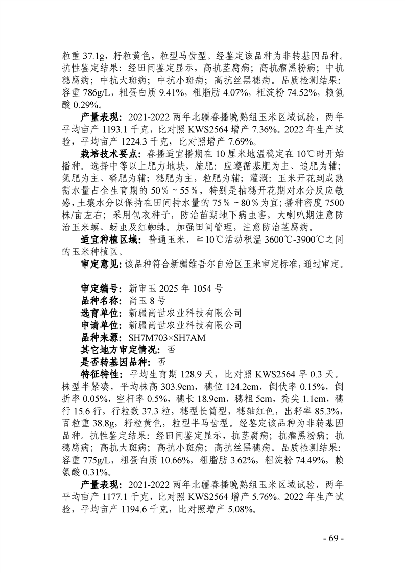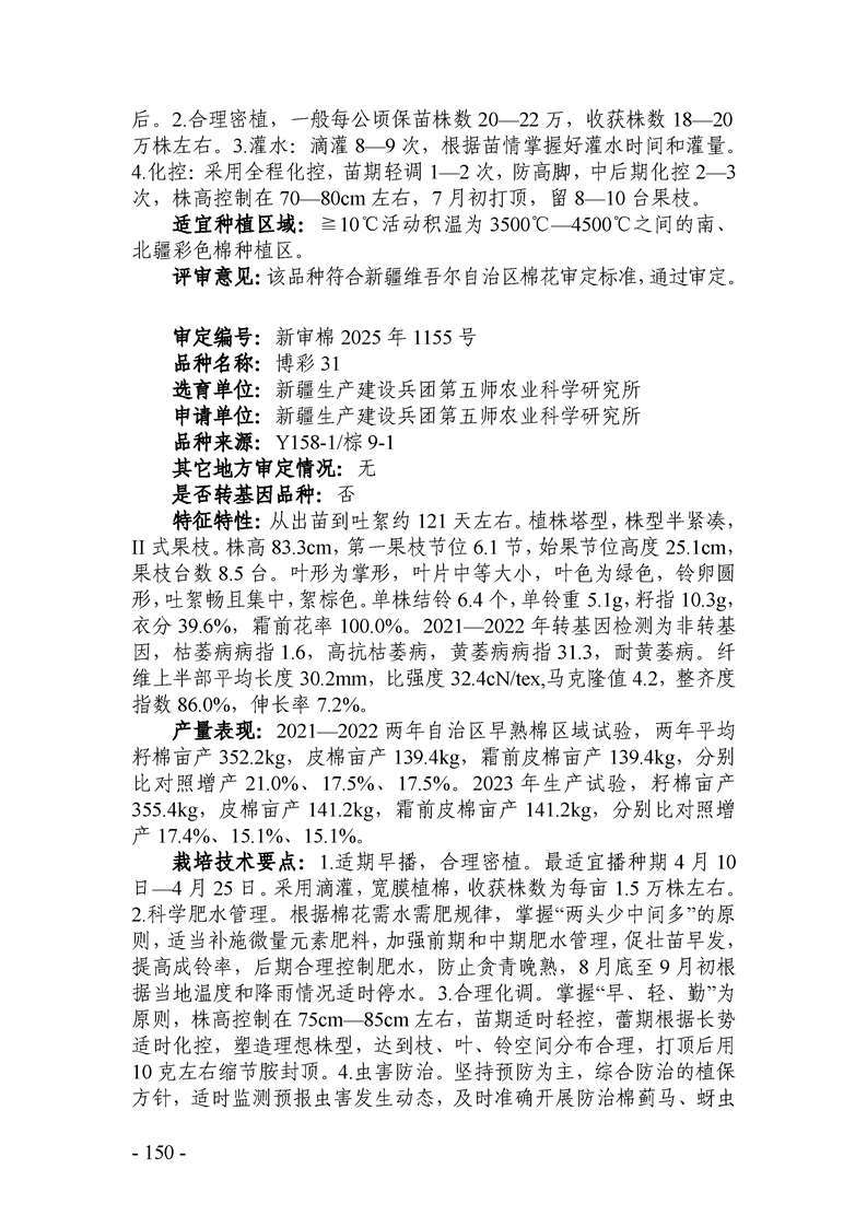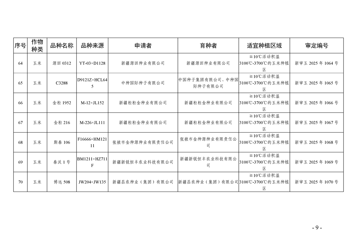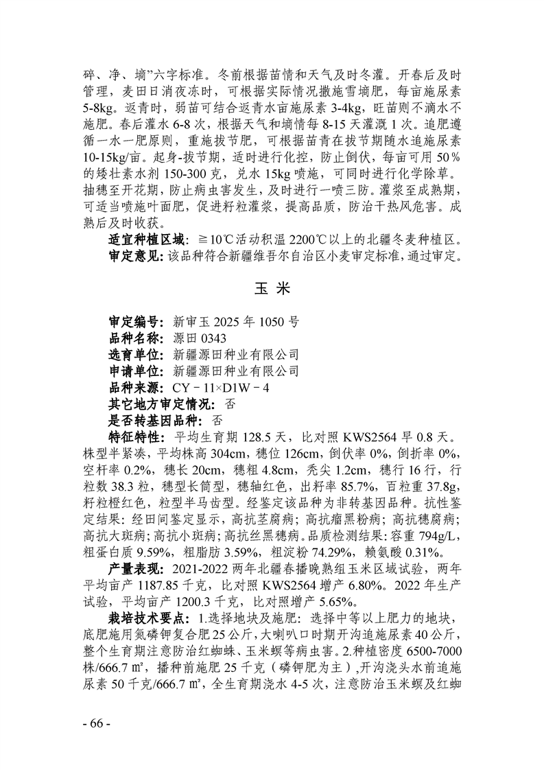 关于2025年新疆维吾尔自治区主要农作物品种审定结果的公告