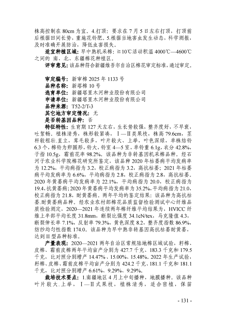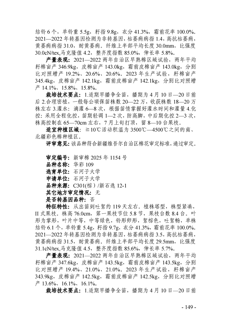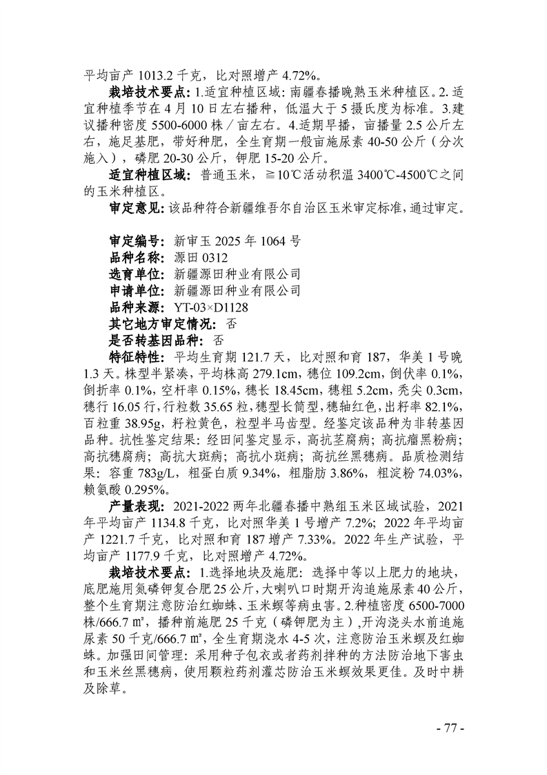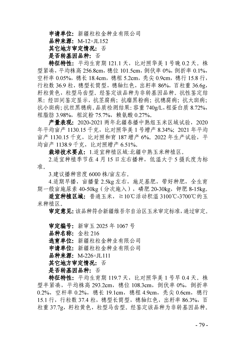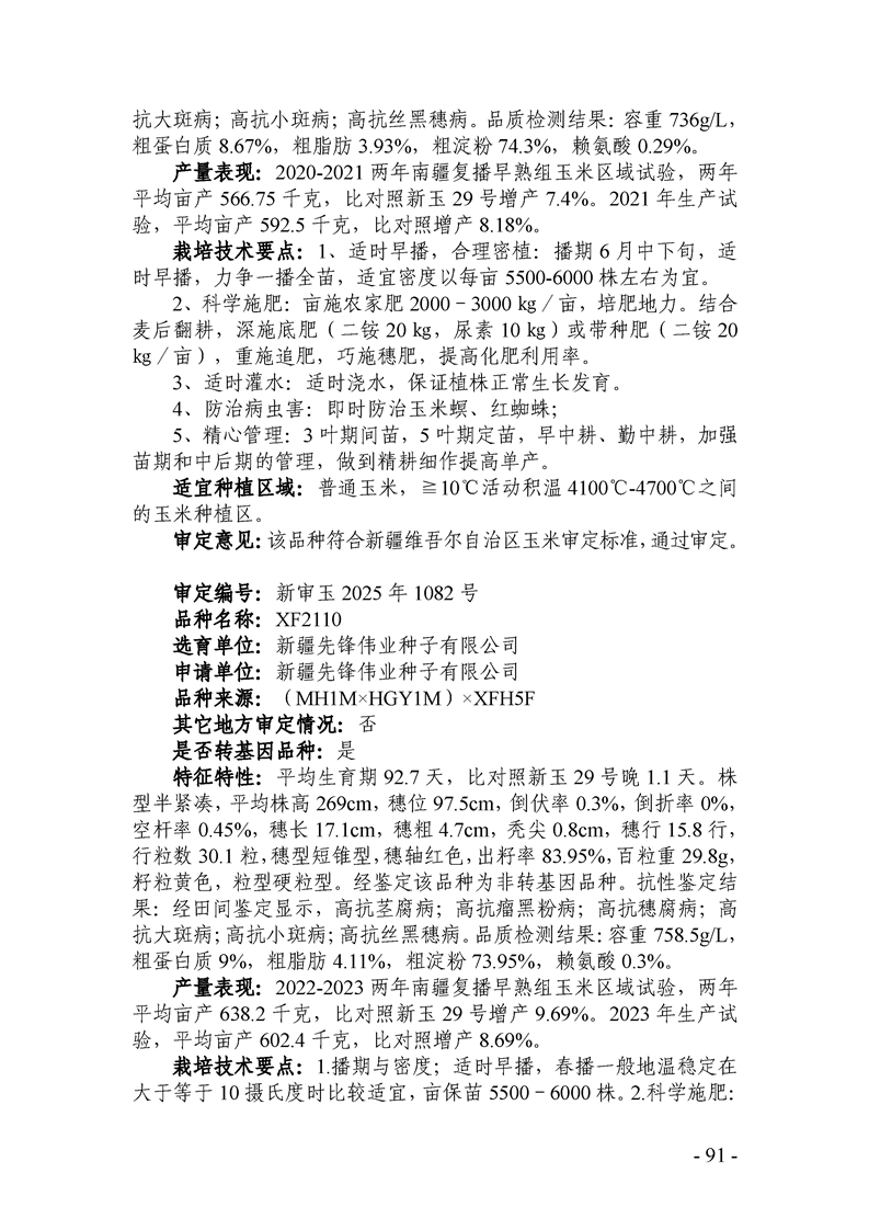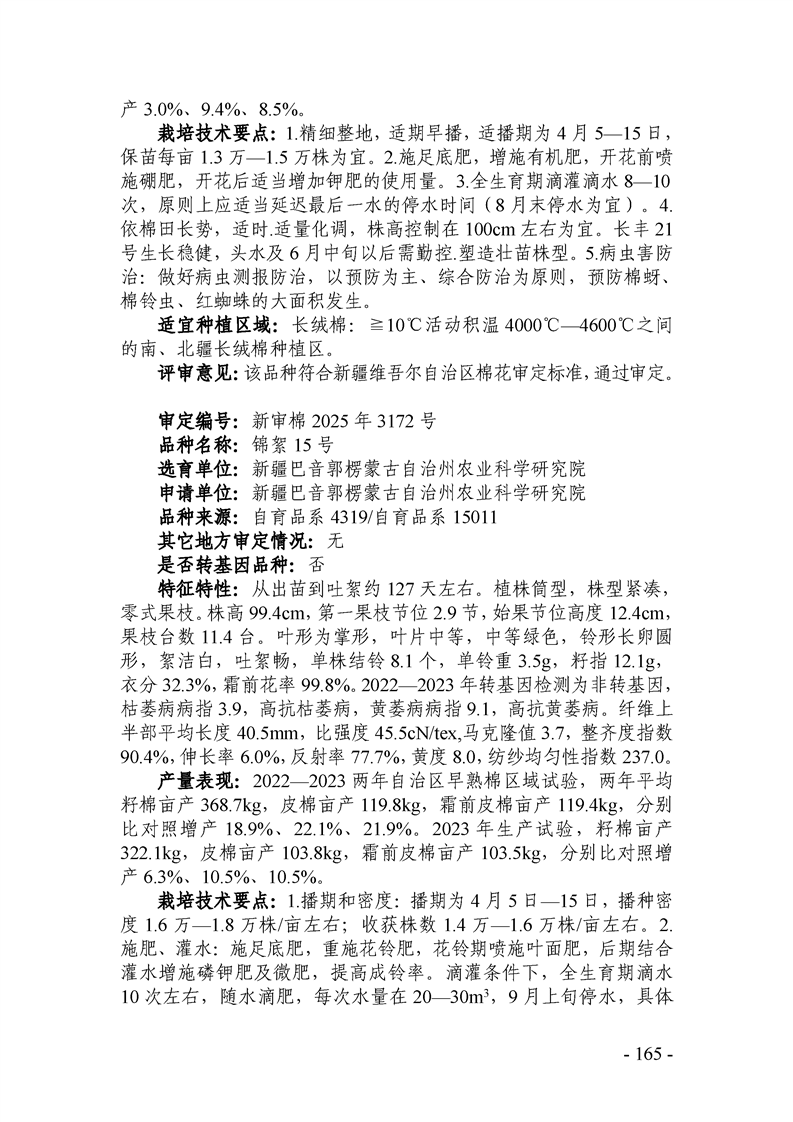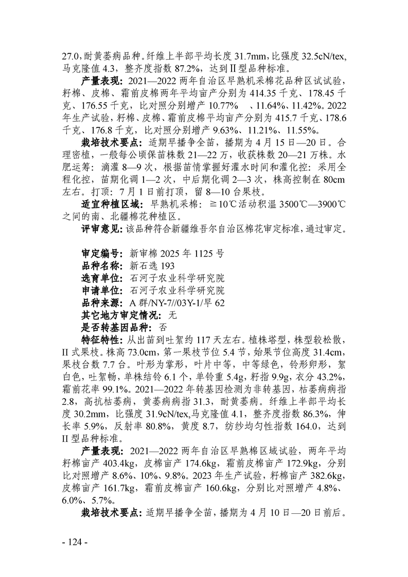 关于2025年新疆维吾尔自治区主要农作物品种审定结果的公告