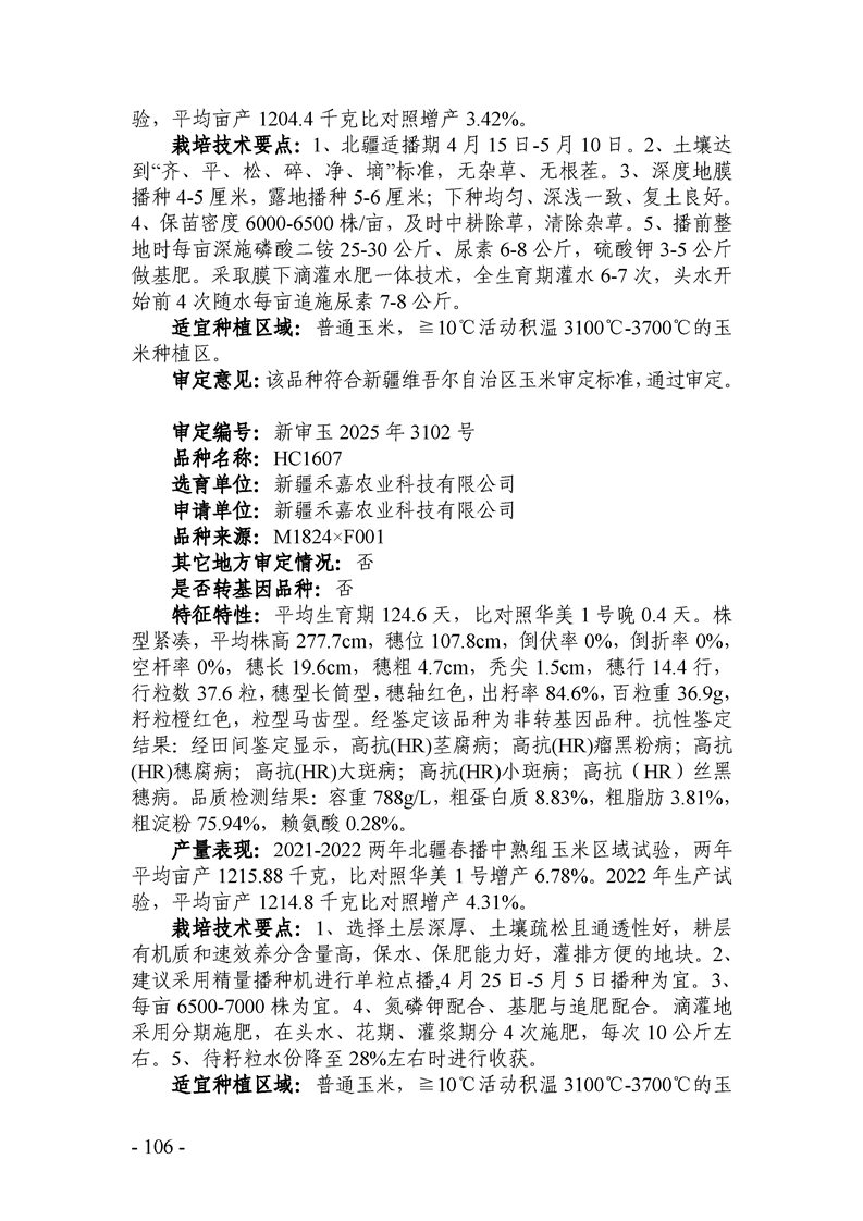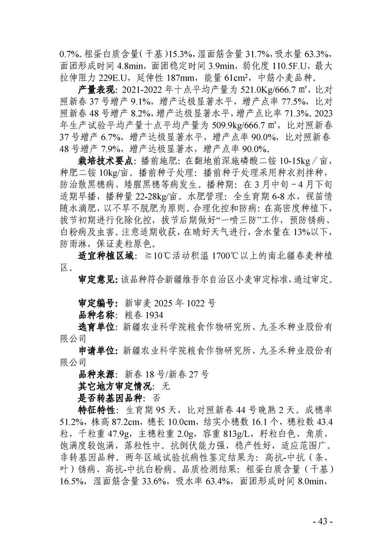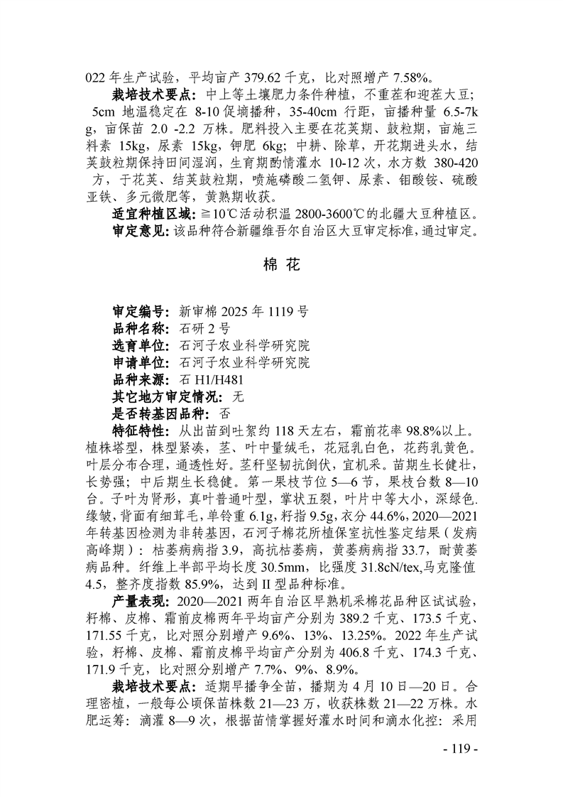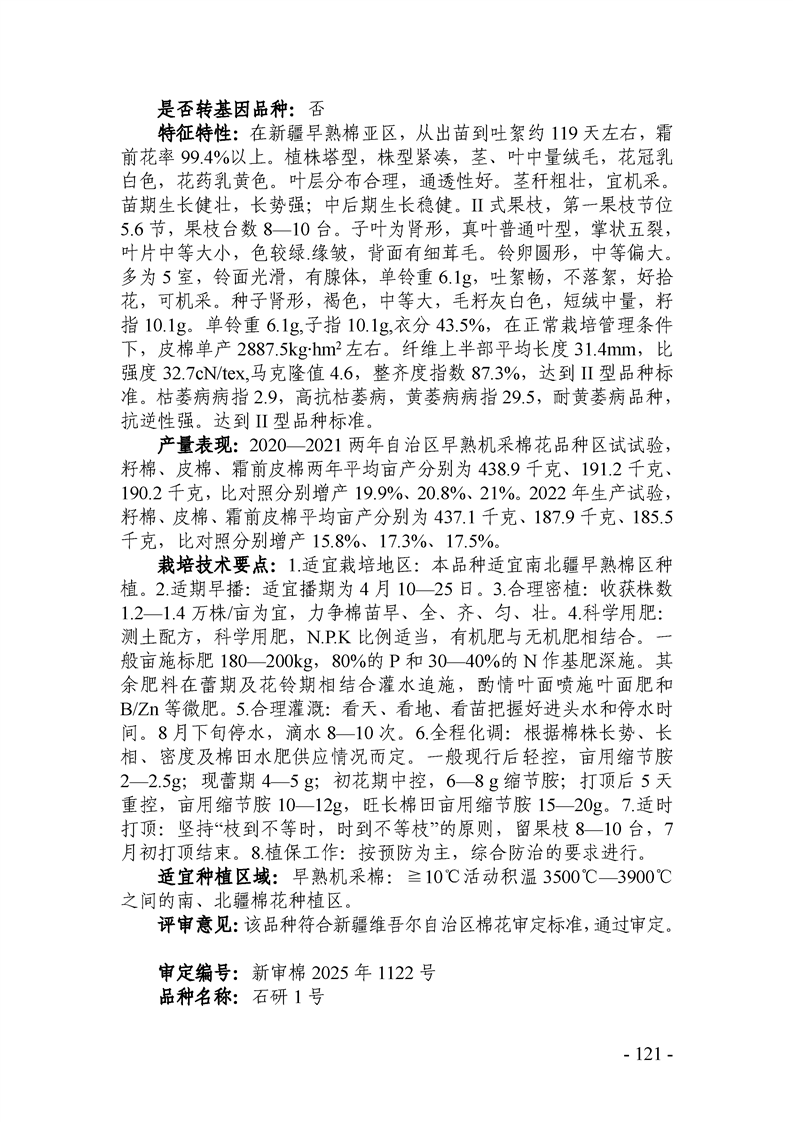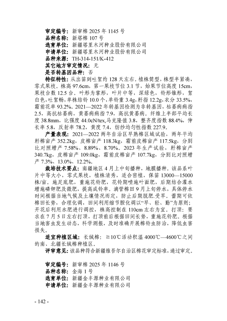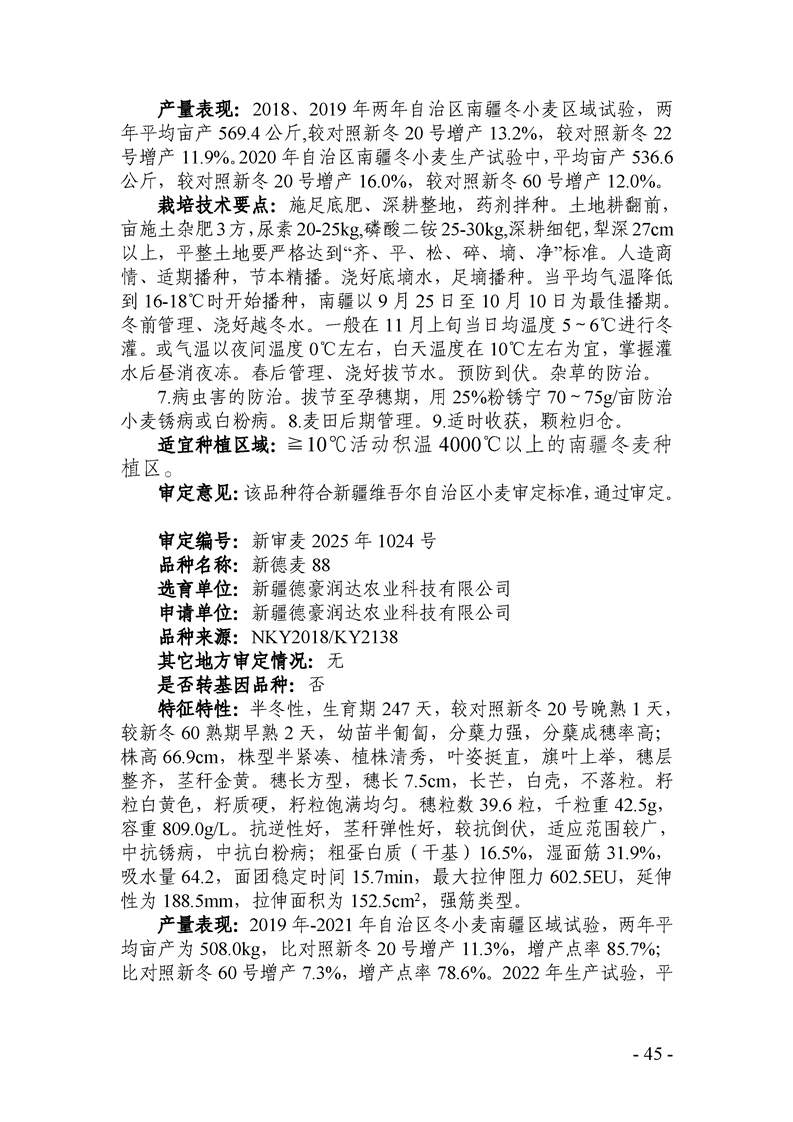 关于2025年新疆维吾尔自治区主要农作物品种审定结果的公告