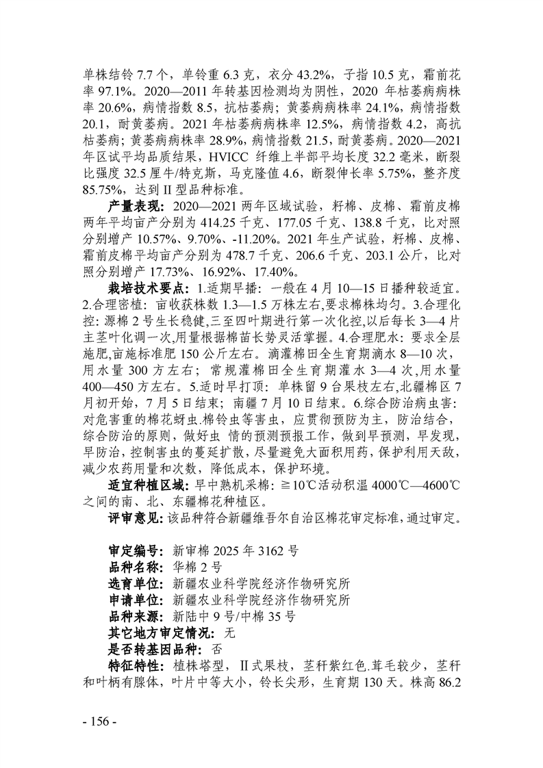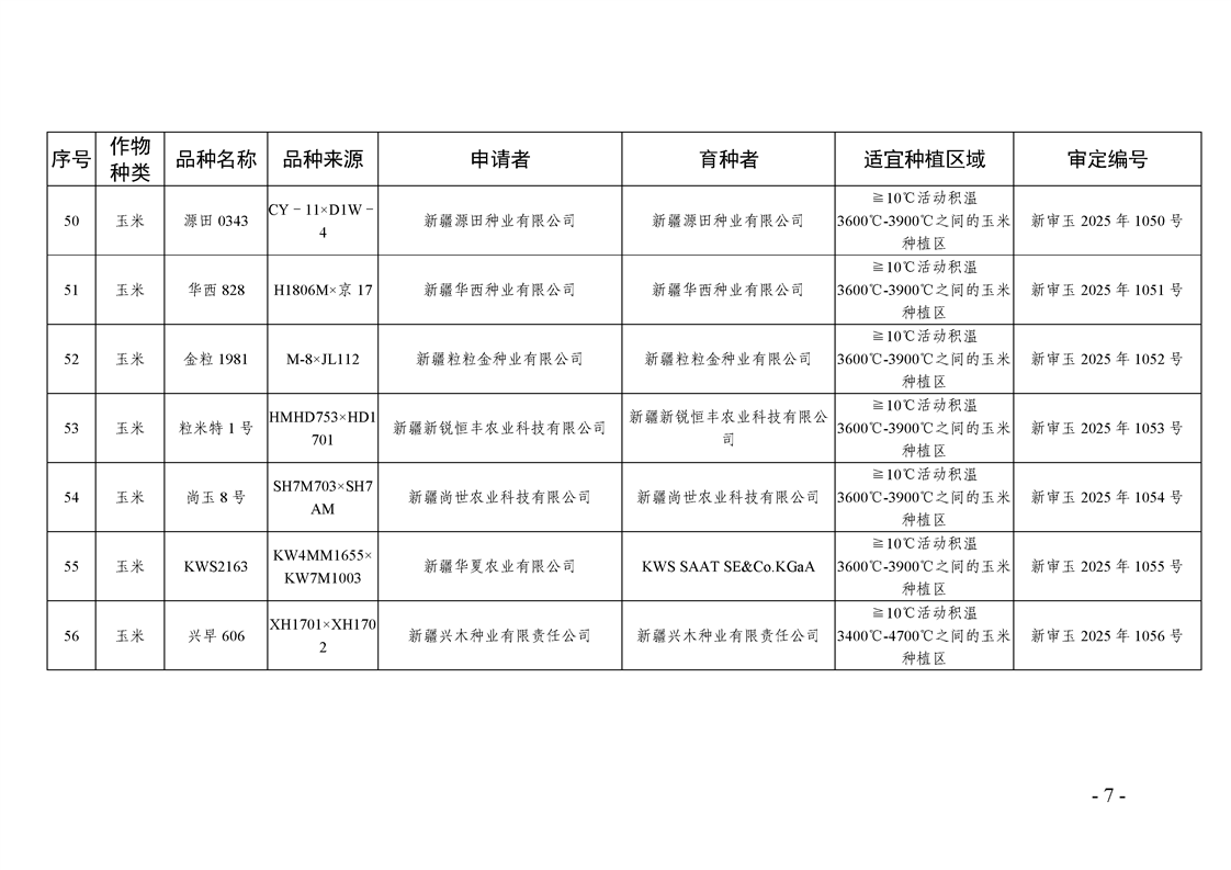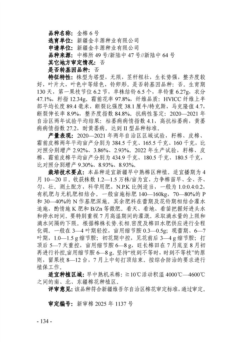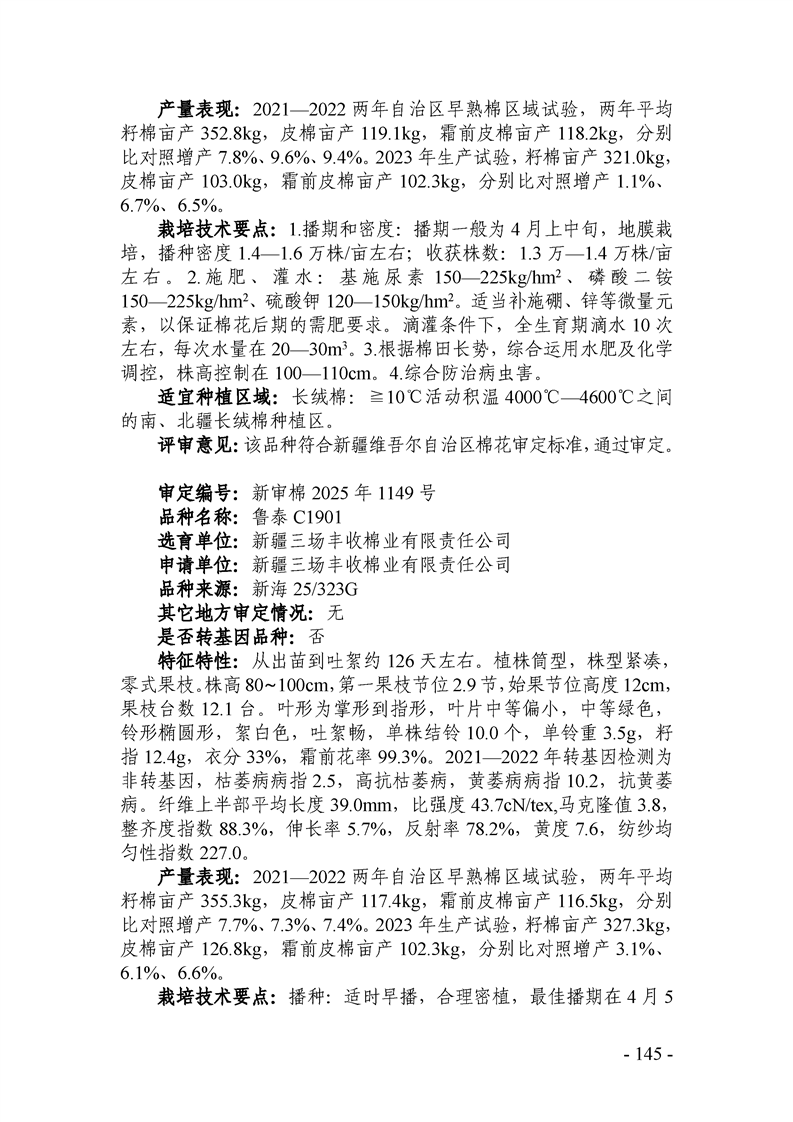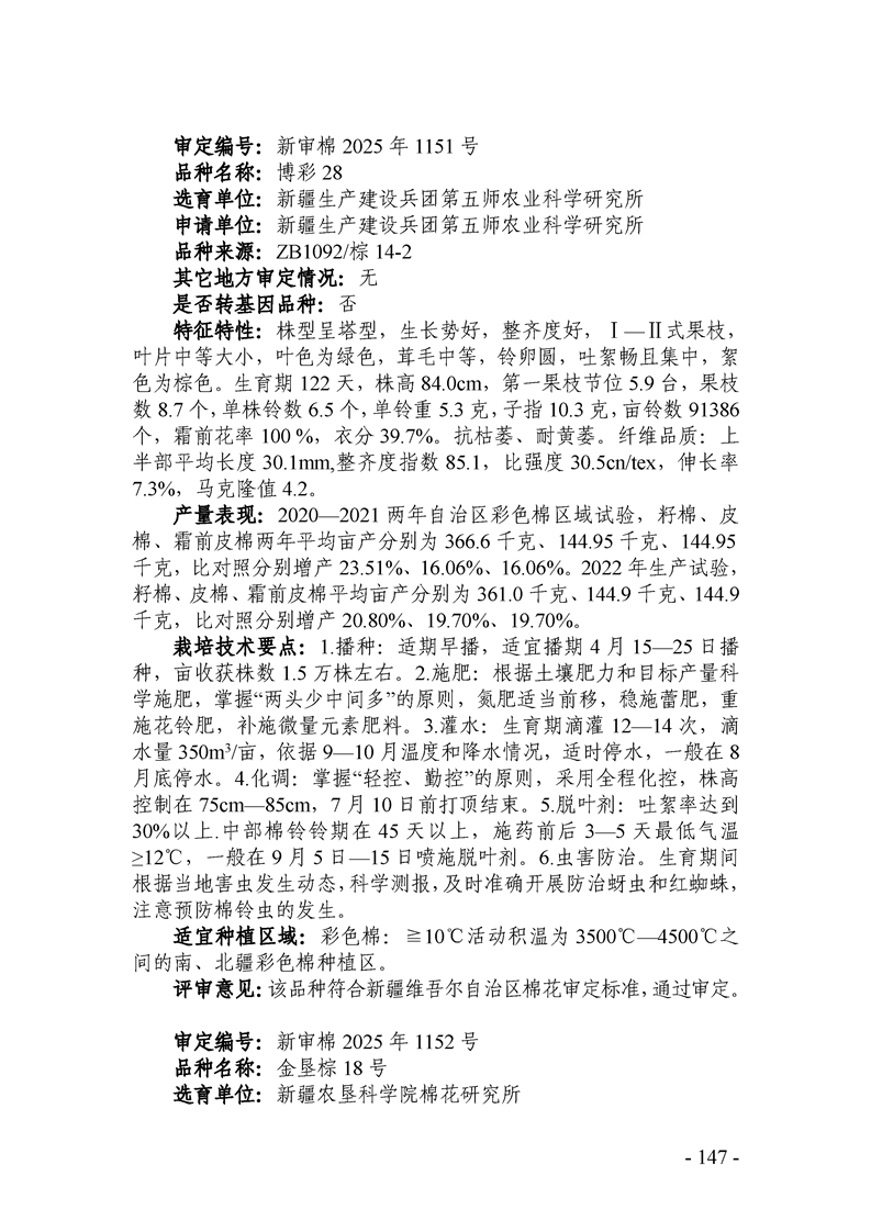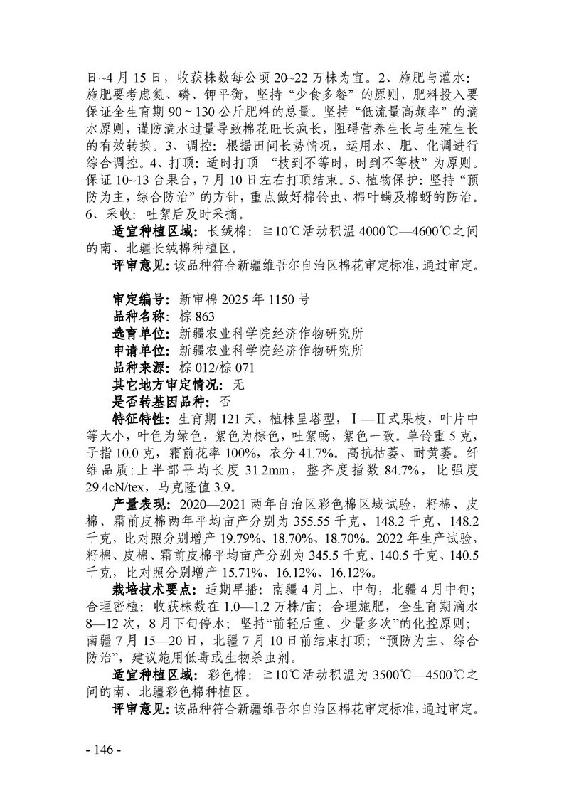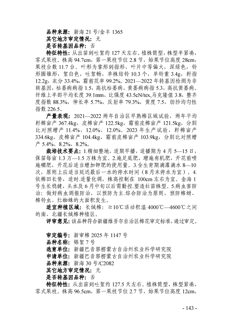 关于2025年新疆维吾尔自治区主要农作物品种审定结果的公告