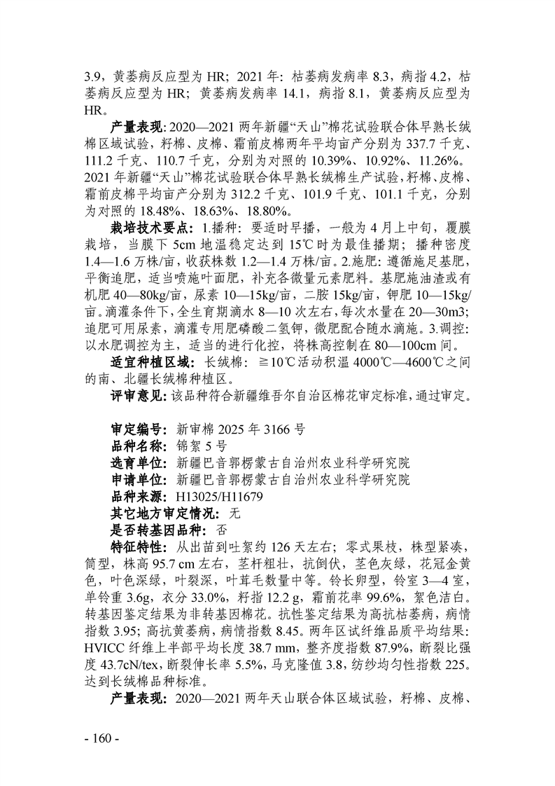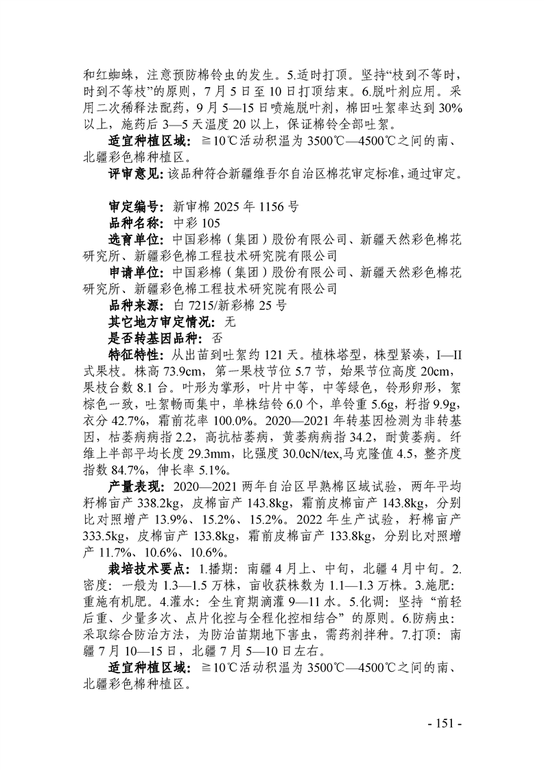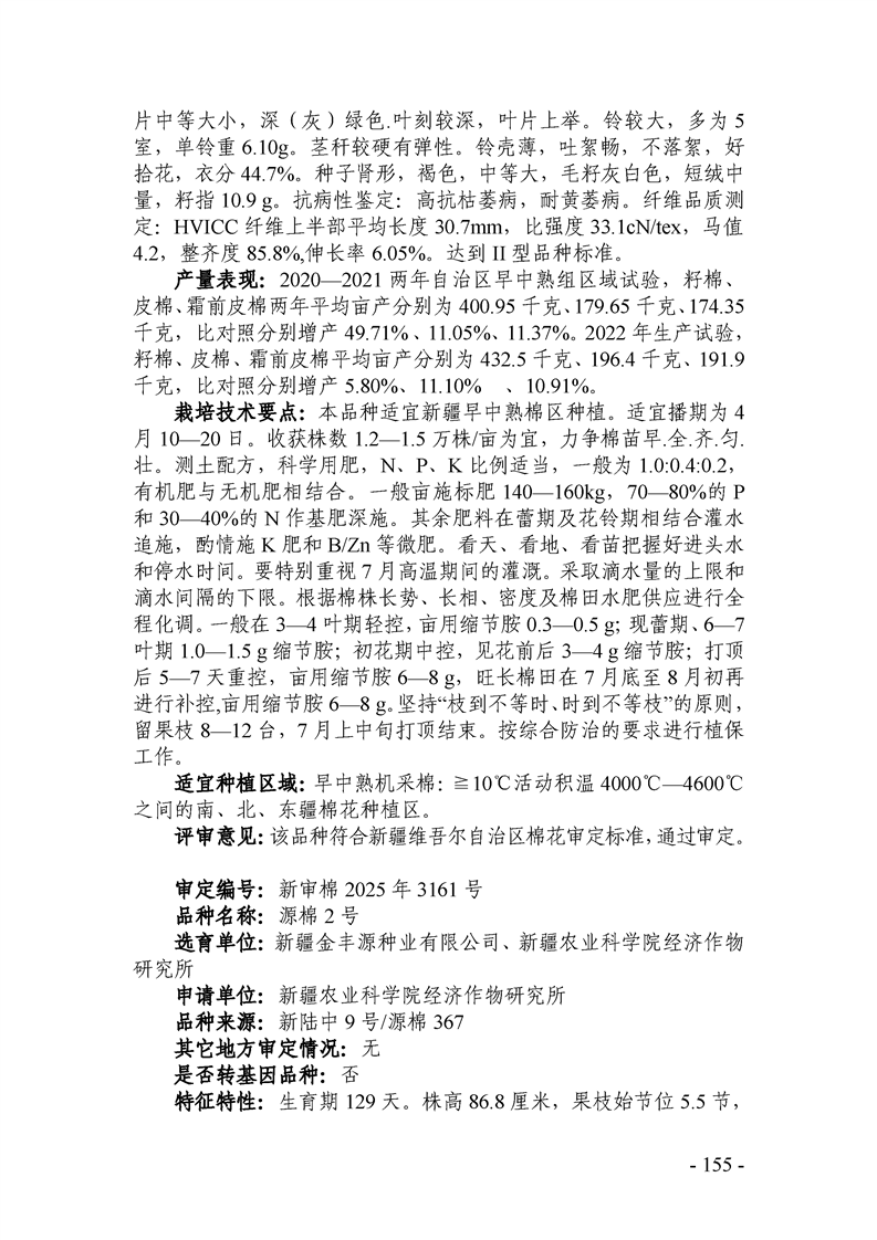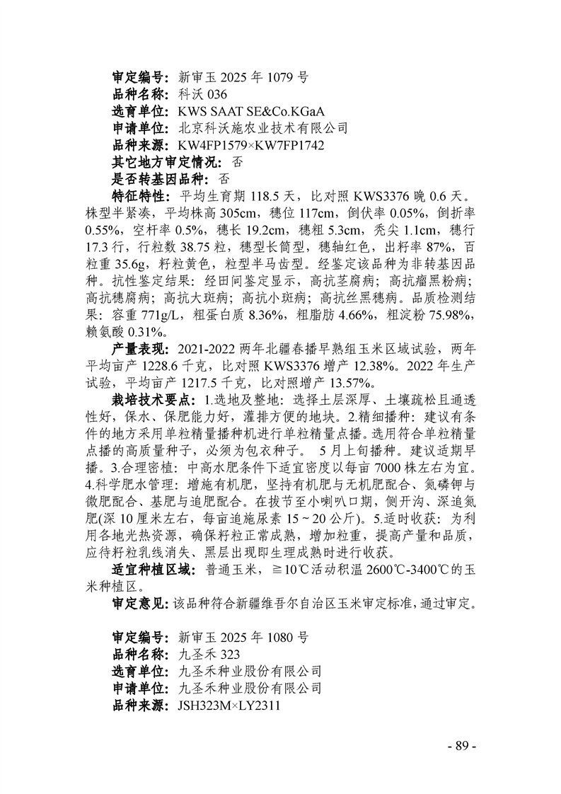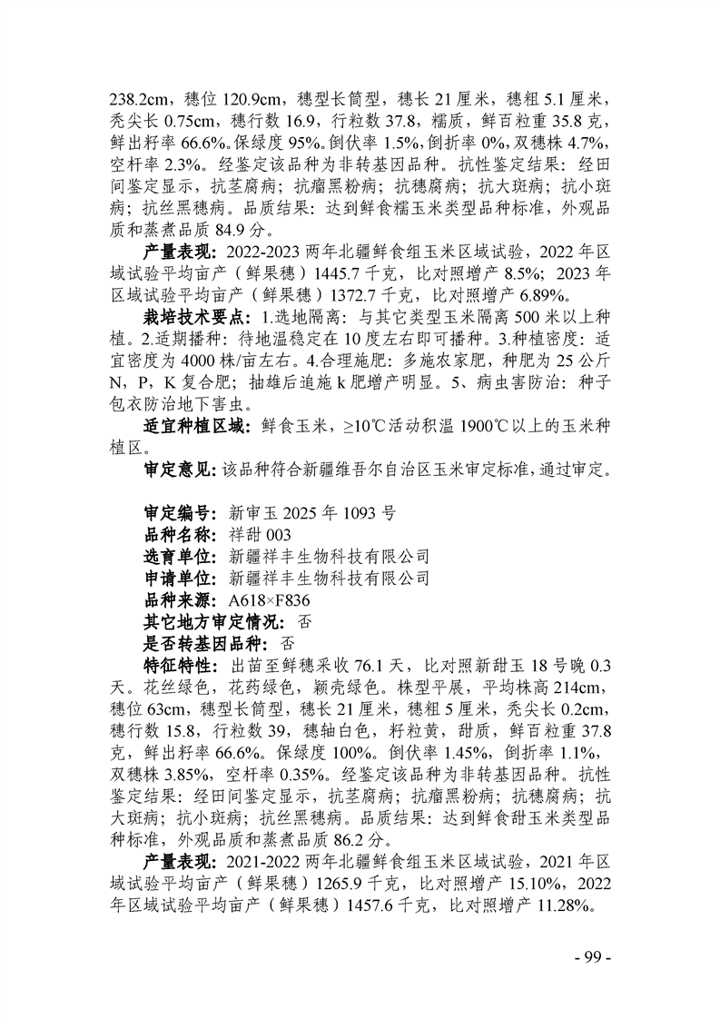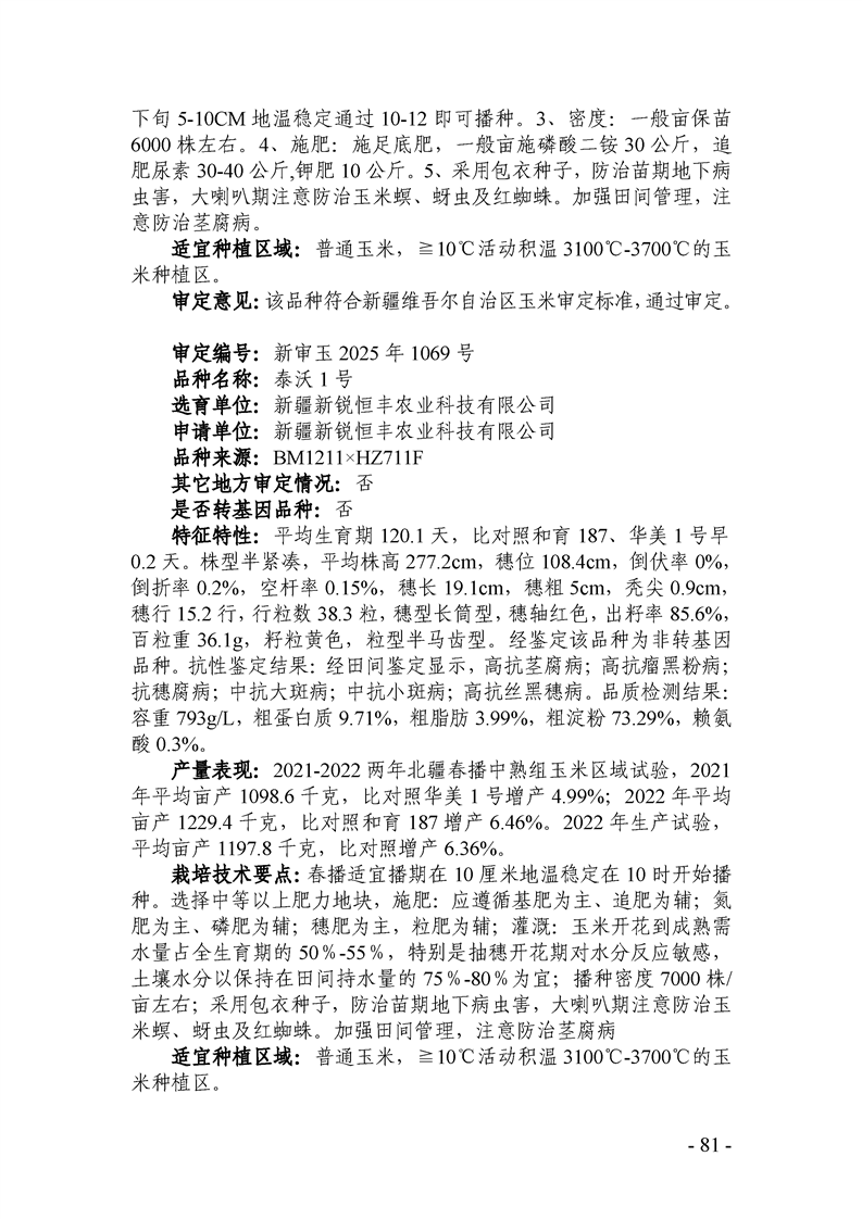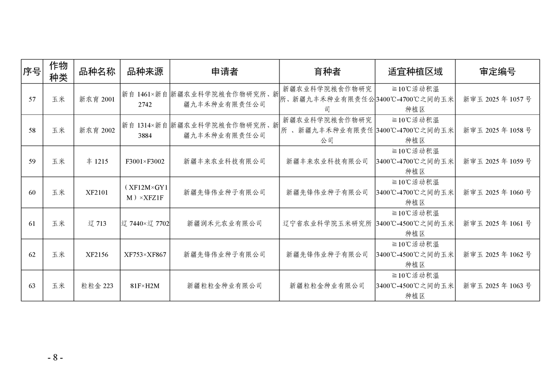 关于2025年新疆维吾尔自治区主要农作物品种审定结果的公告