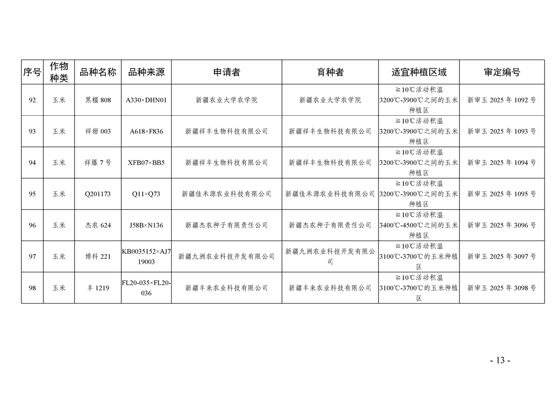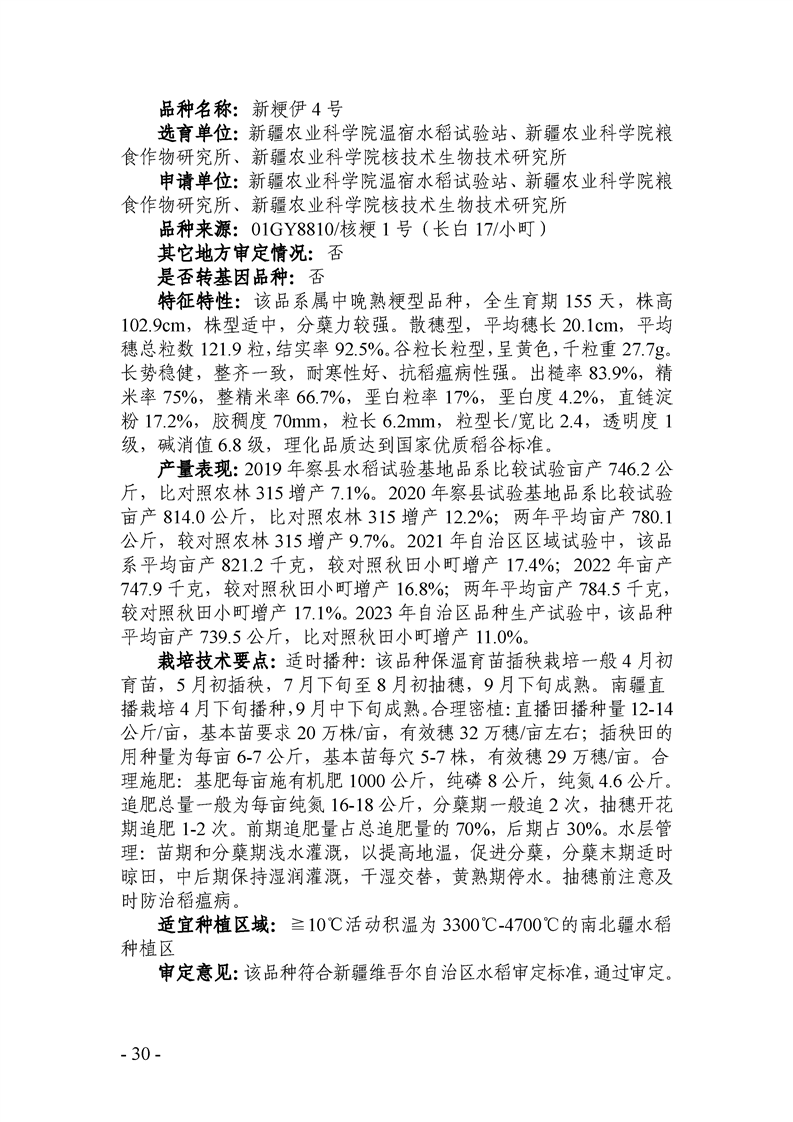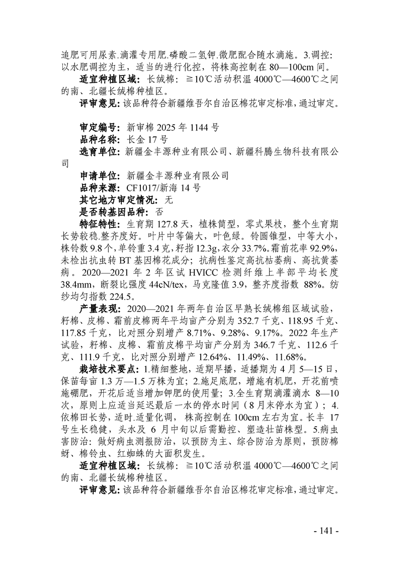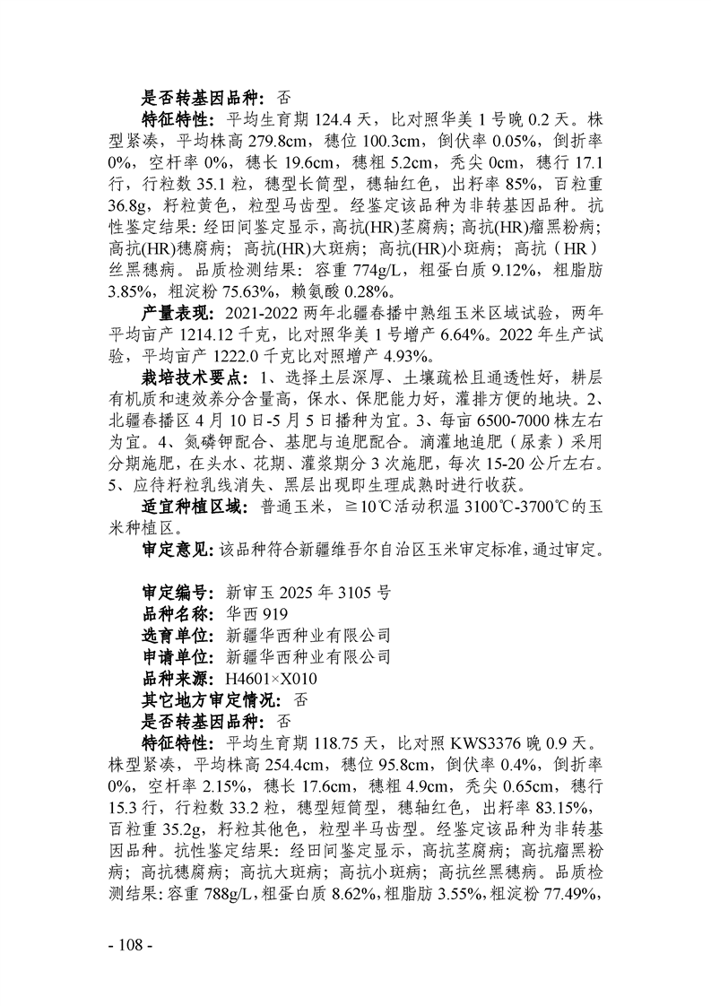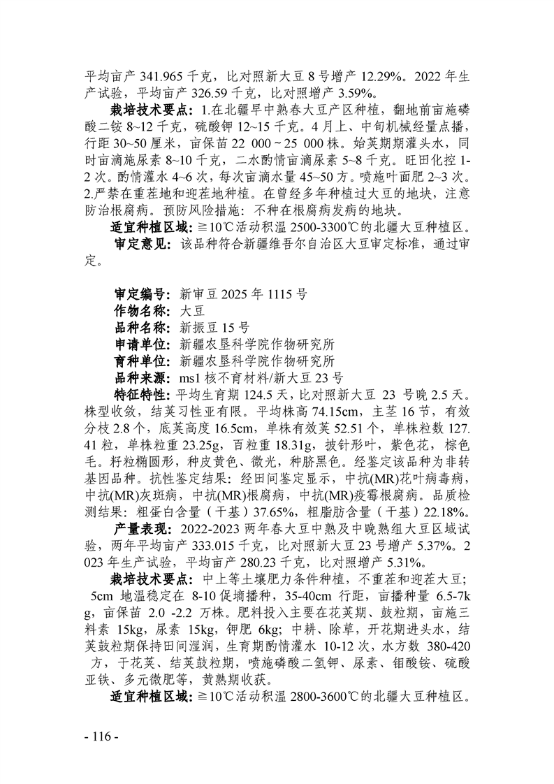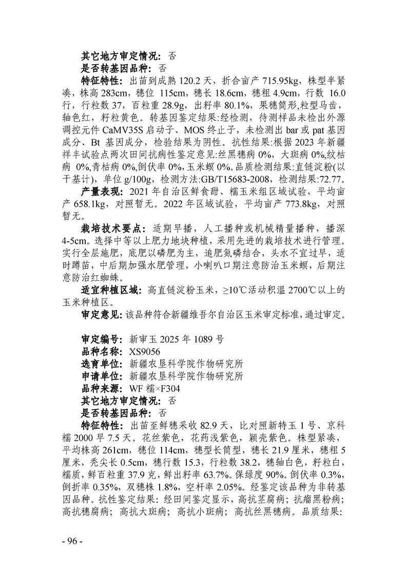 关于2025年新疆维吾尔自治区主要农作物品种审定结果的公告