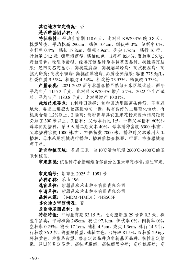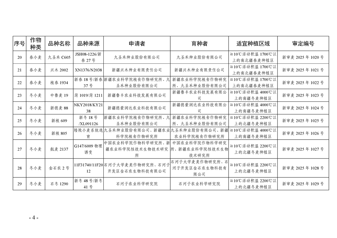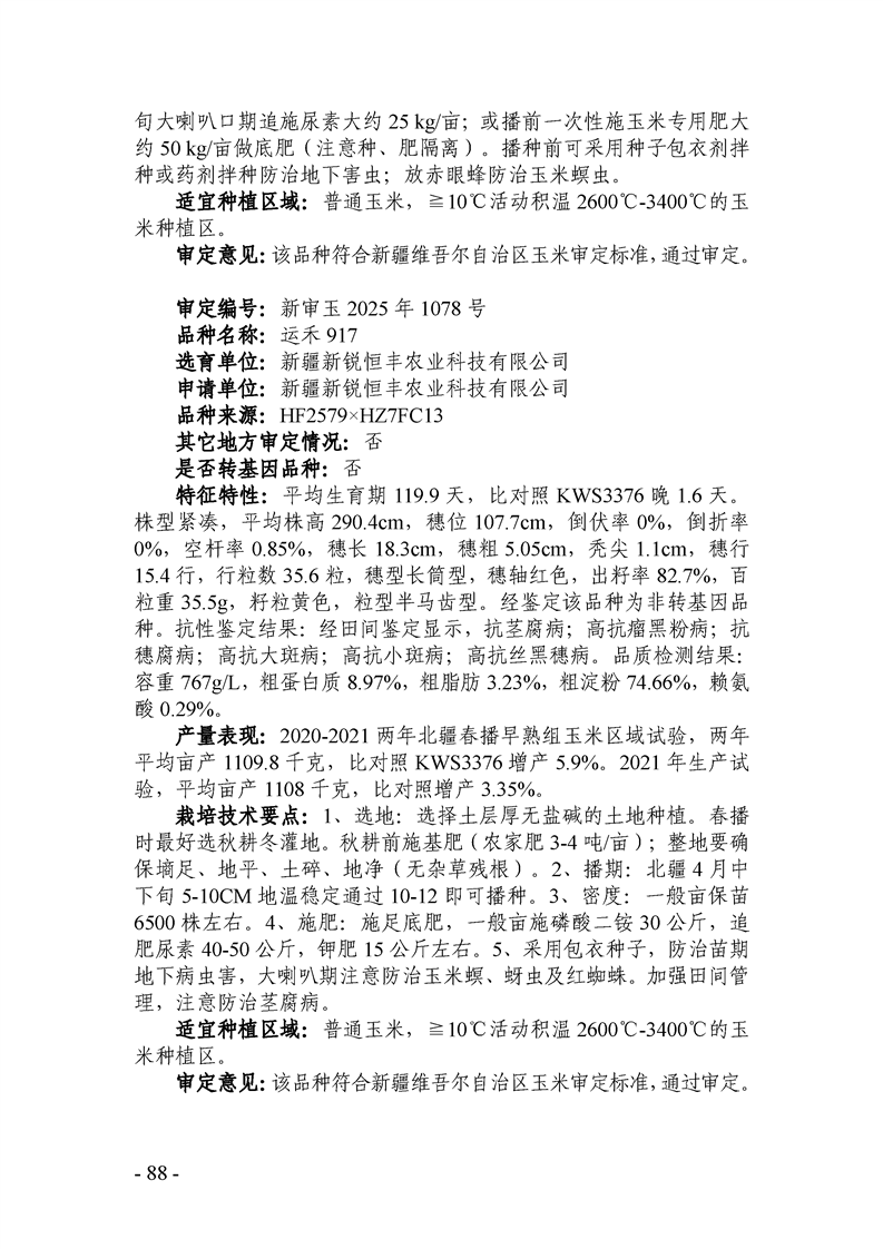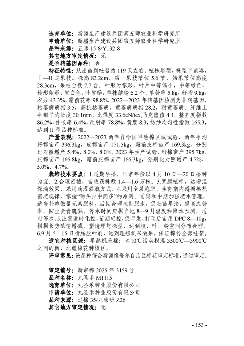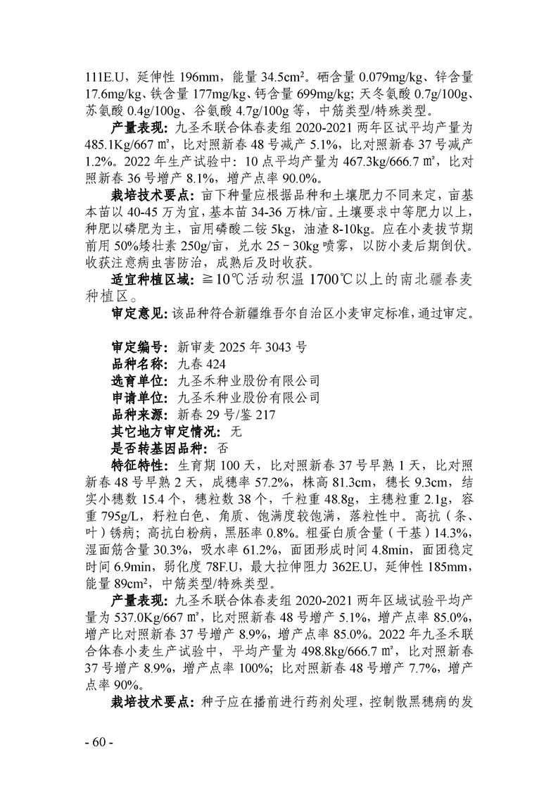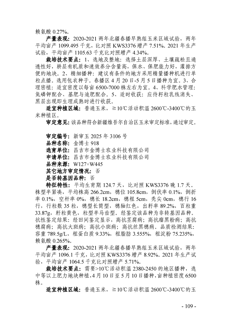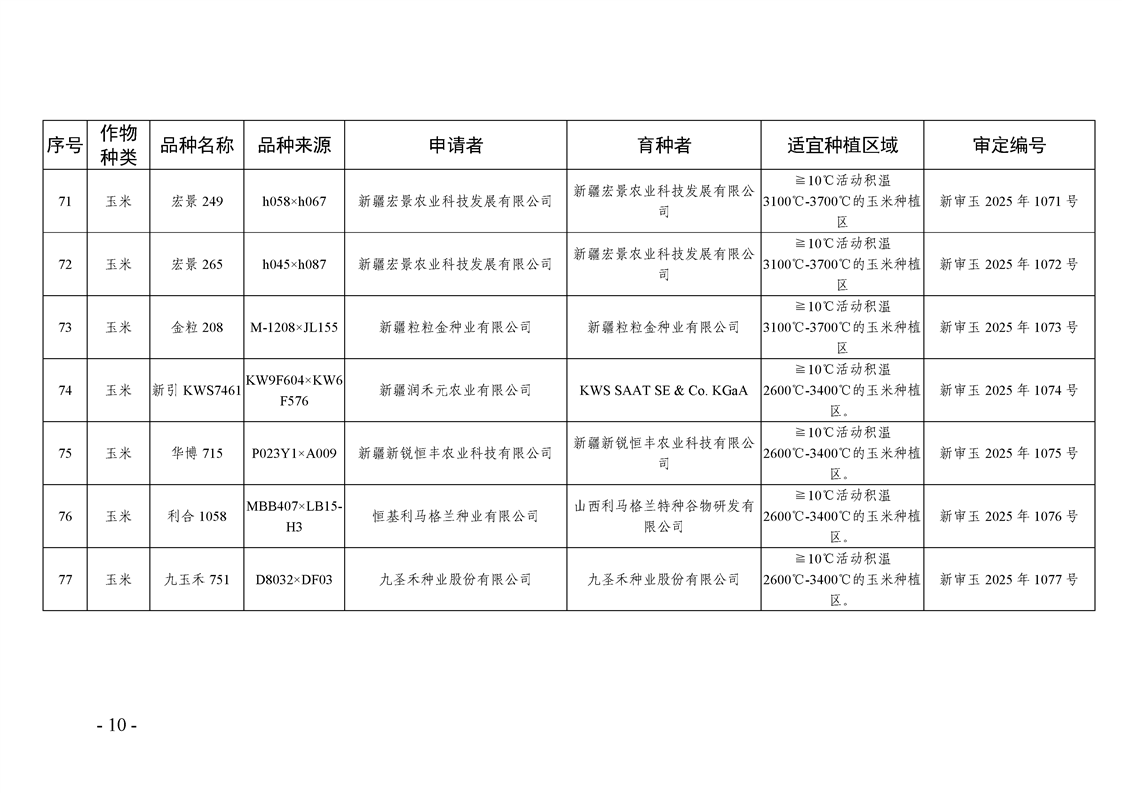 关于2025年新疆维吾尔自治区主要农作物品种审定结果的公告