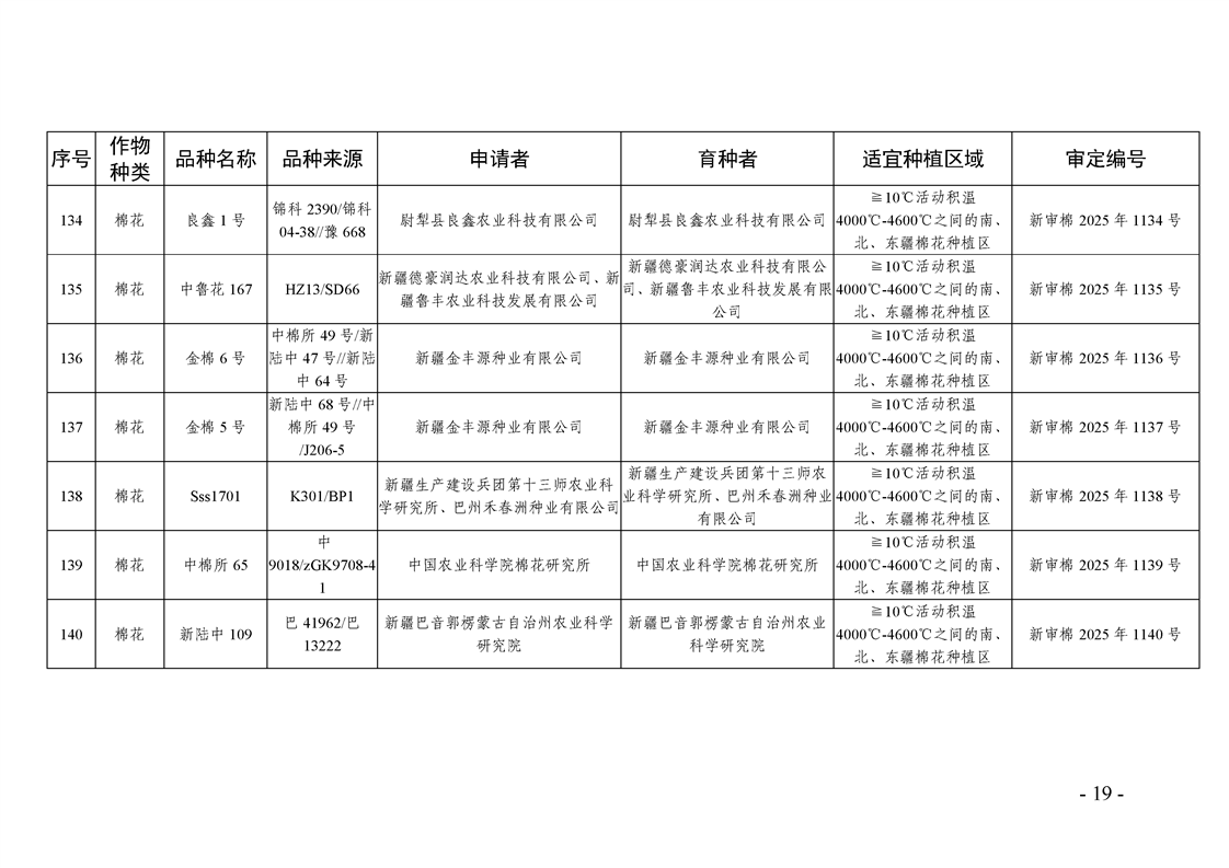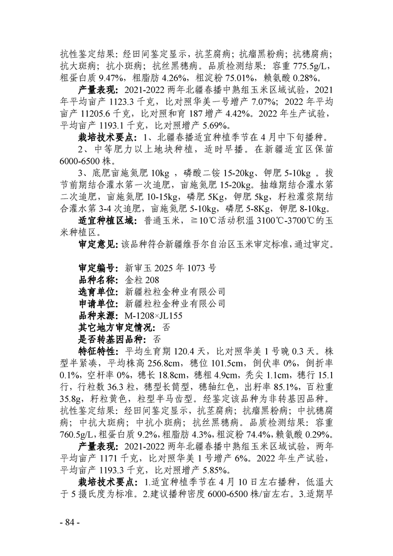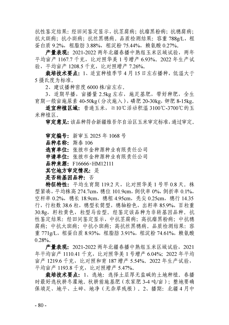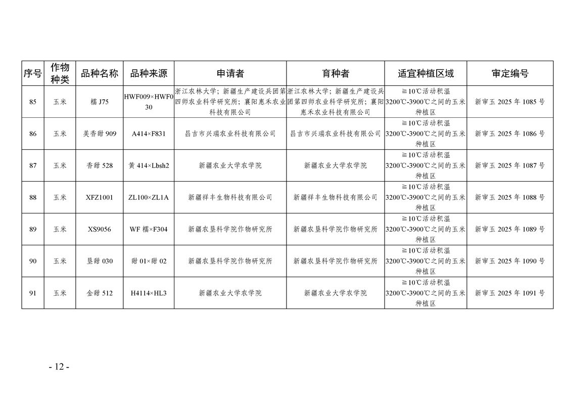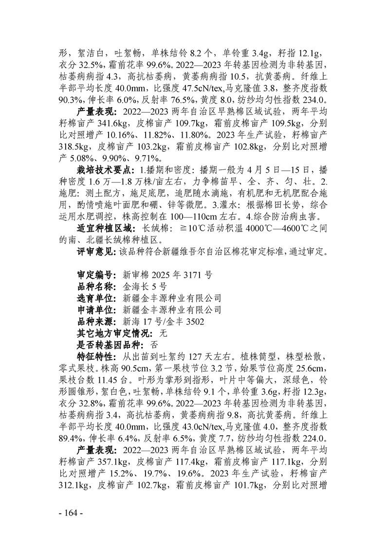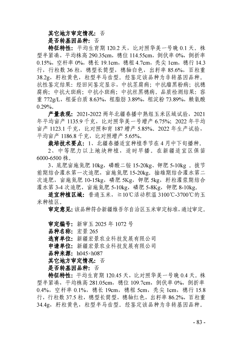 关于2025年新疆维吾尔自治区主要农作物品种审定结果的公告