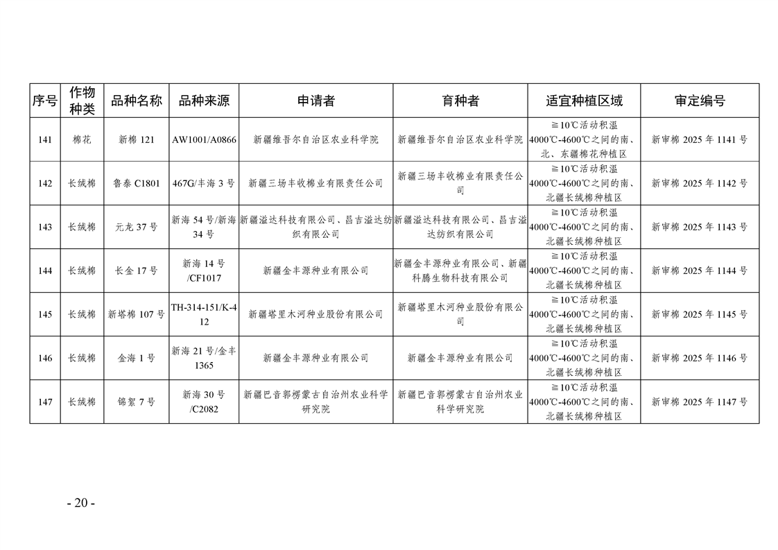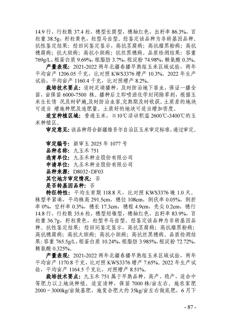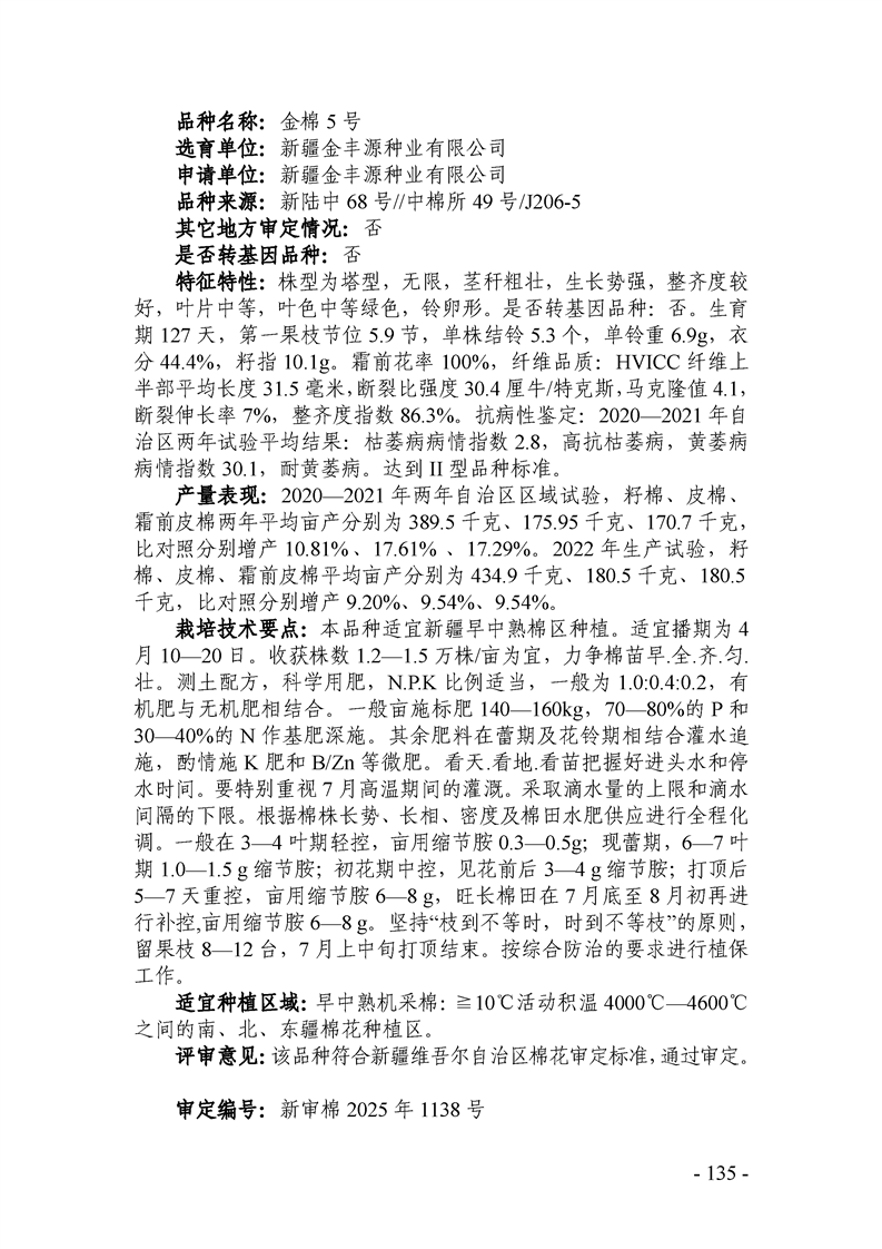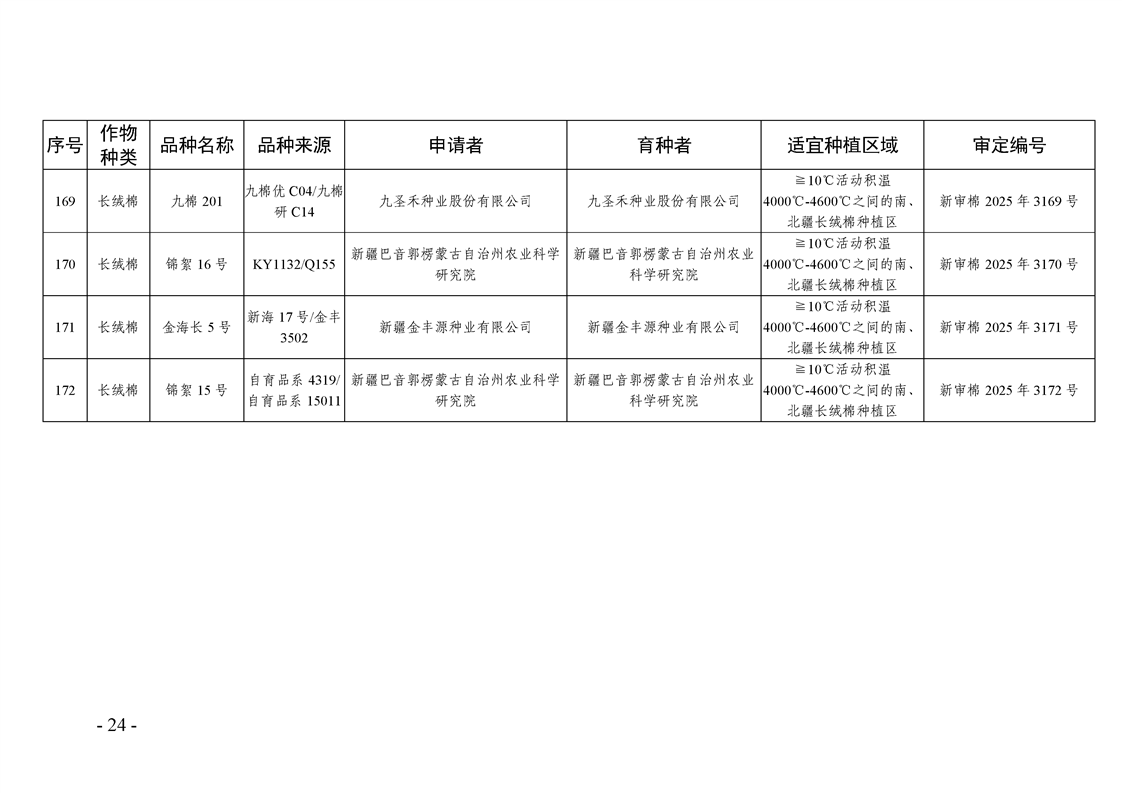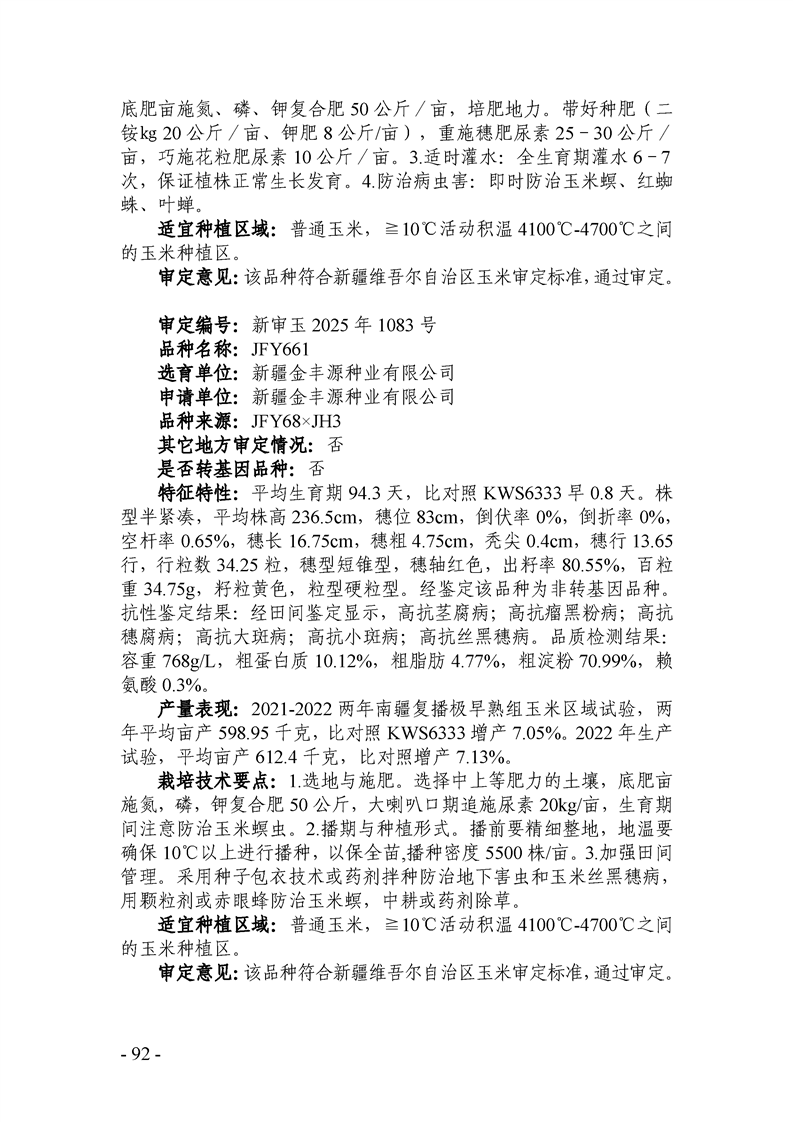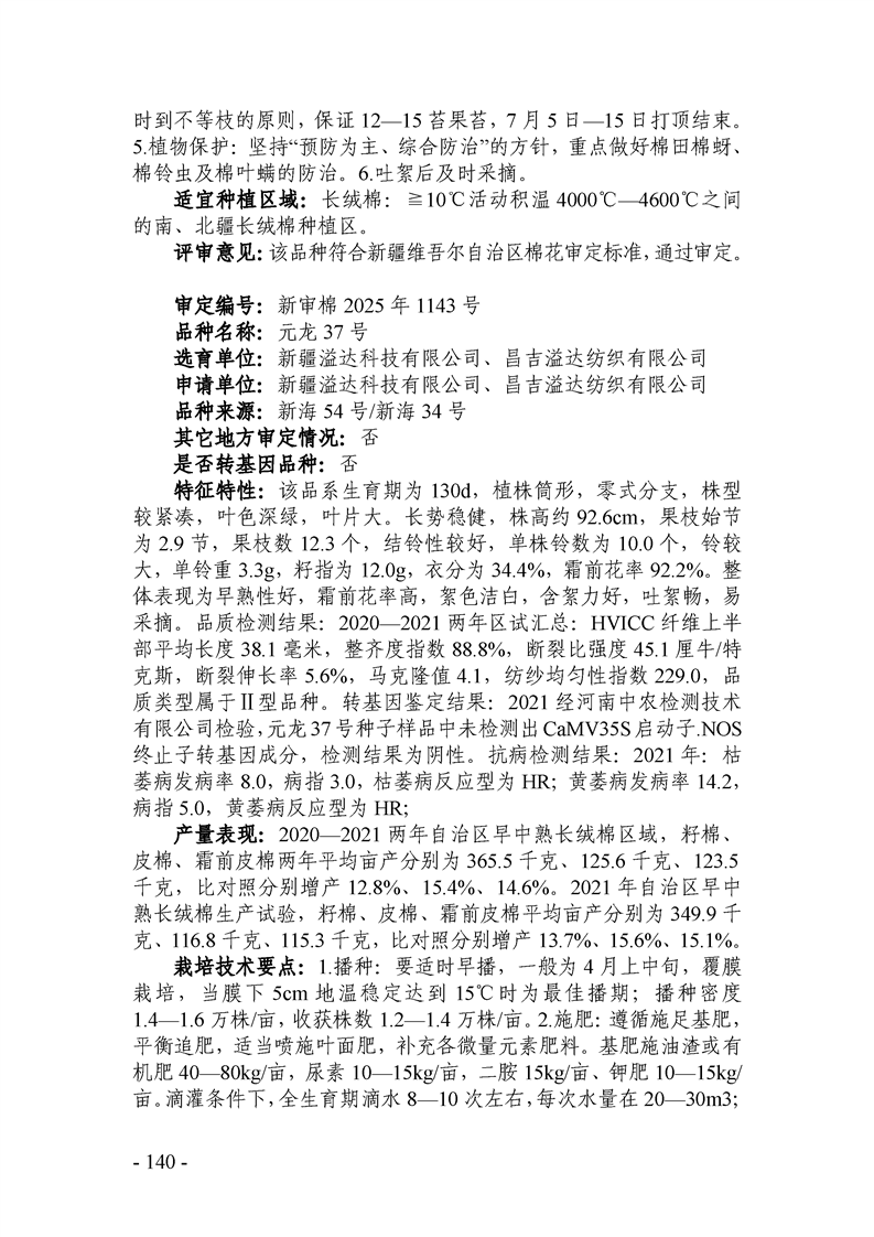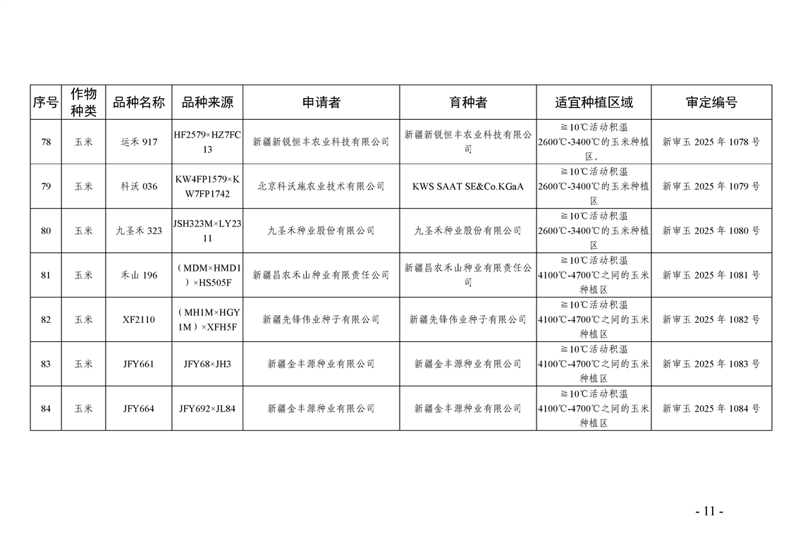 关于2025年新疆维吾尔自治区主要农作物品种审定结果的公告