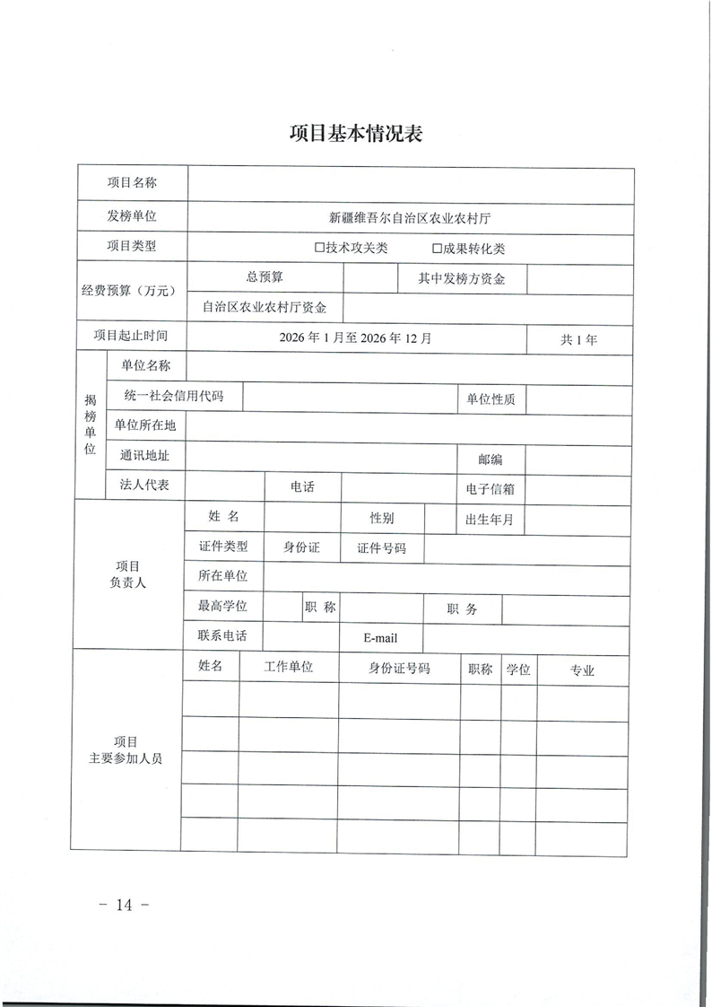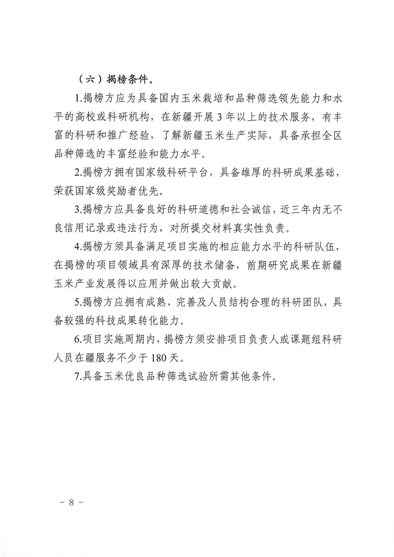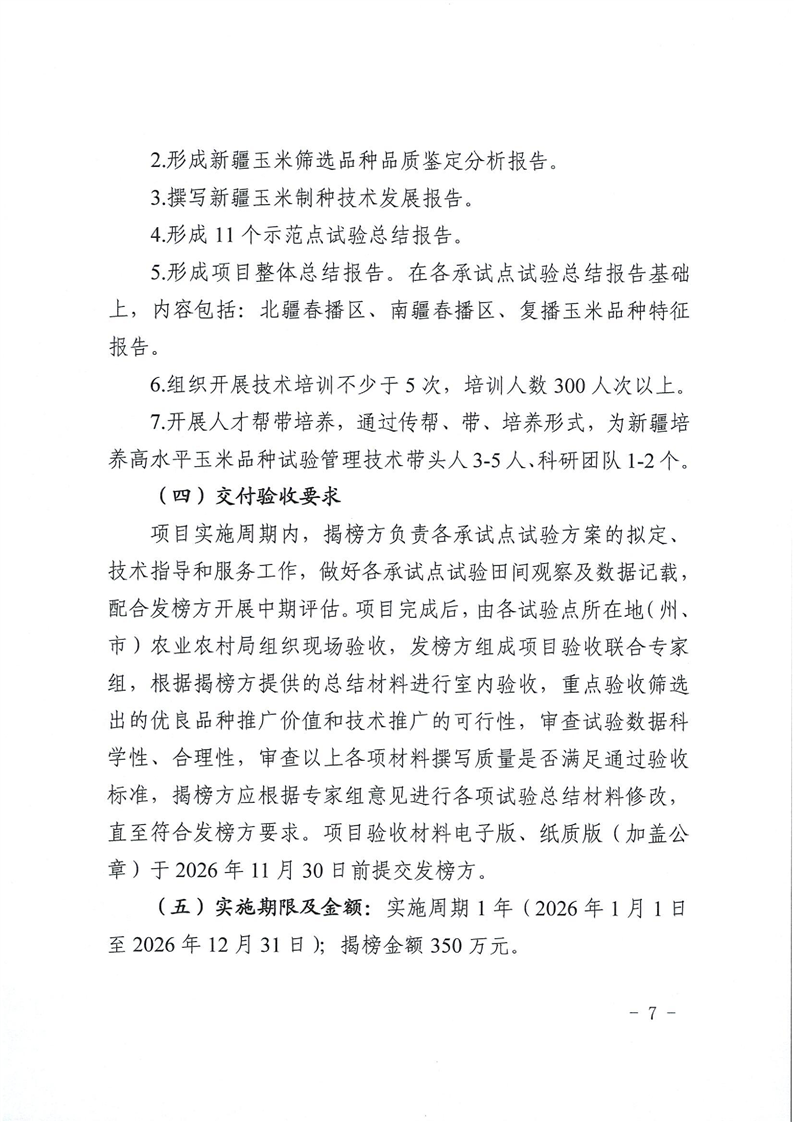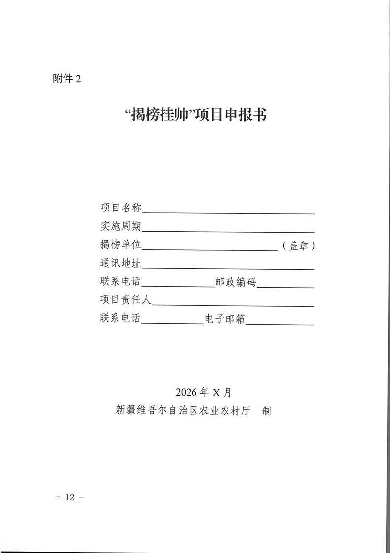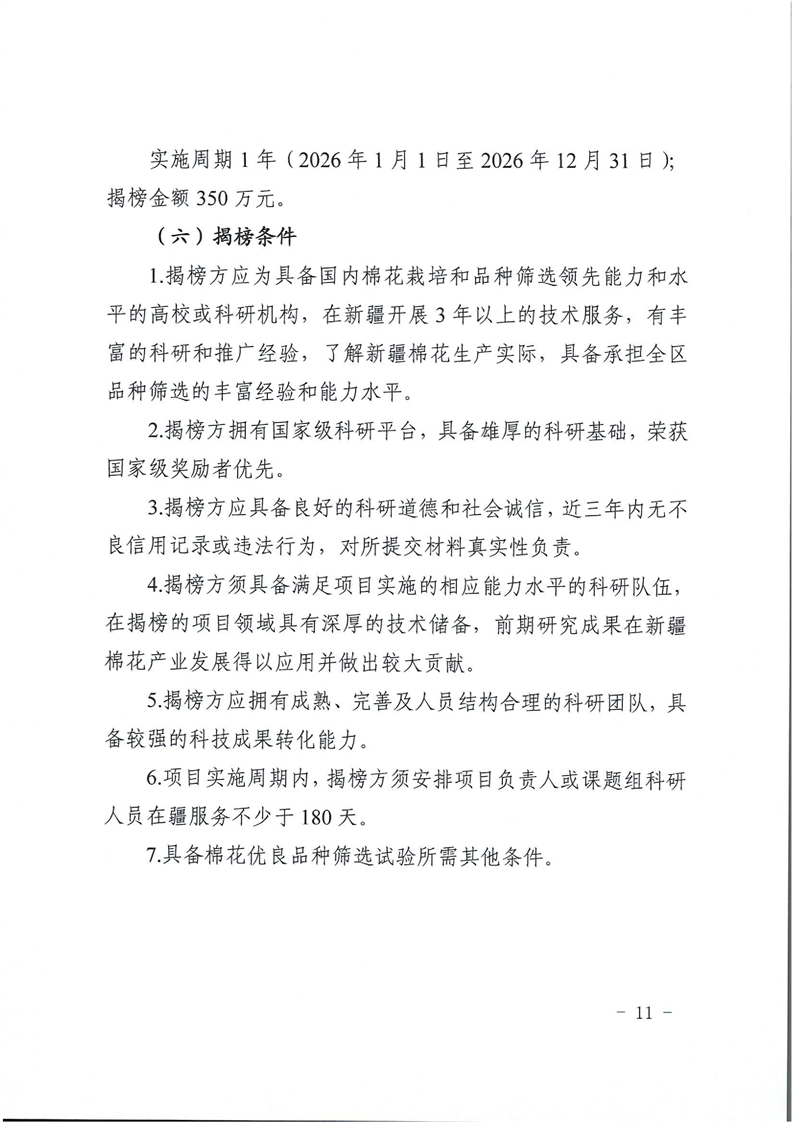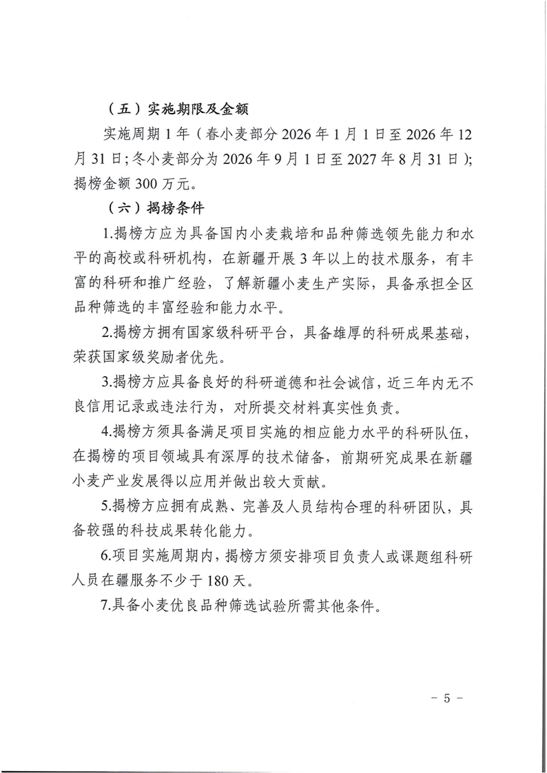 关于发布新疆维吾尔自治区2026年优良品种筛选项目“揭榜挂帅”榜单的公告