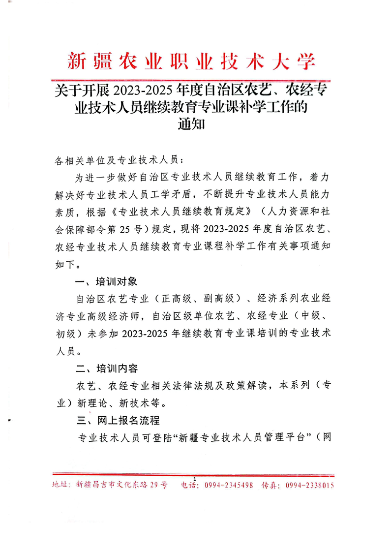 关于开展2023-2025年度自治区农艺、农经专业技术人员继续教育专业课补学工作通知
